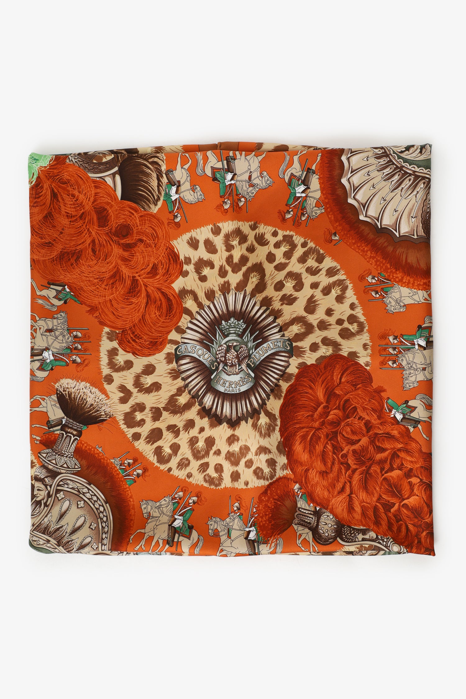 Refresh availabilityHermes Orange/Multicolour Silk Casques Et Plumets Scarf.