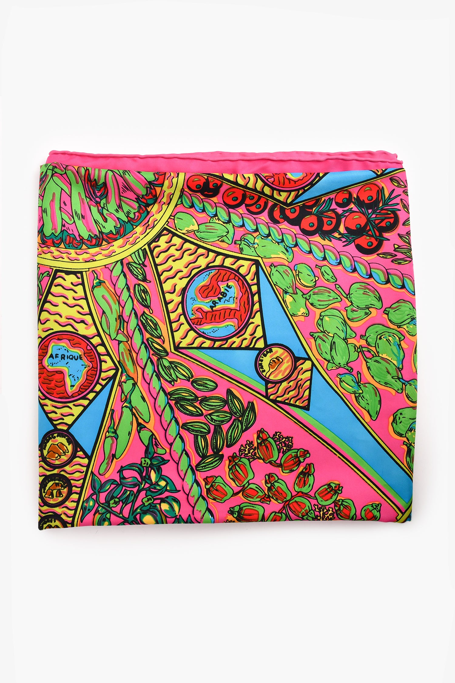Hermès Pink/Blue/Green Silk 'Aux Pays Des Epices' Carre 140 (As Is)