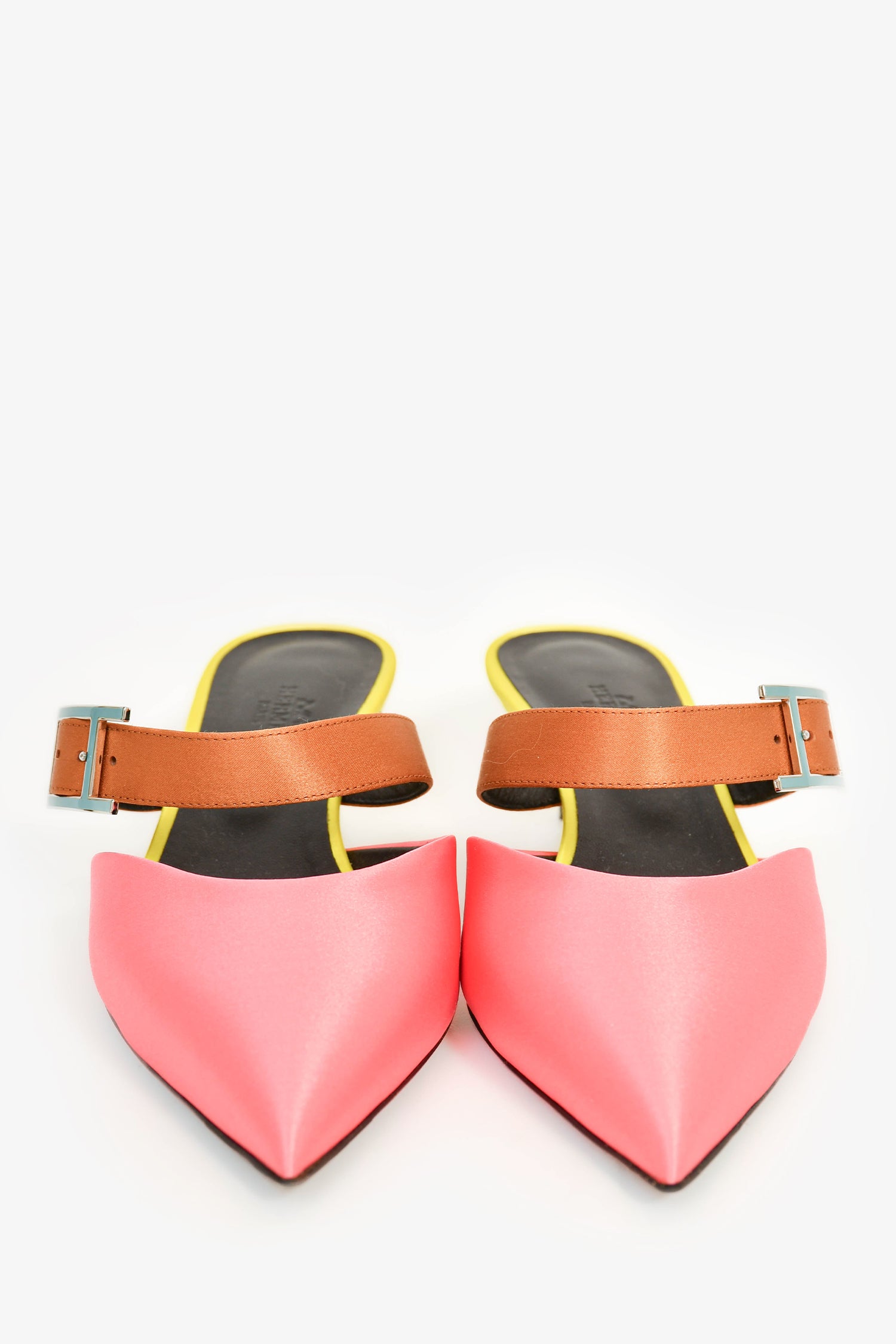 Hermès Pink/Yellow/Brown Satin Pointed Kitten Heels Size 37