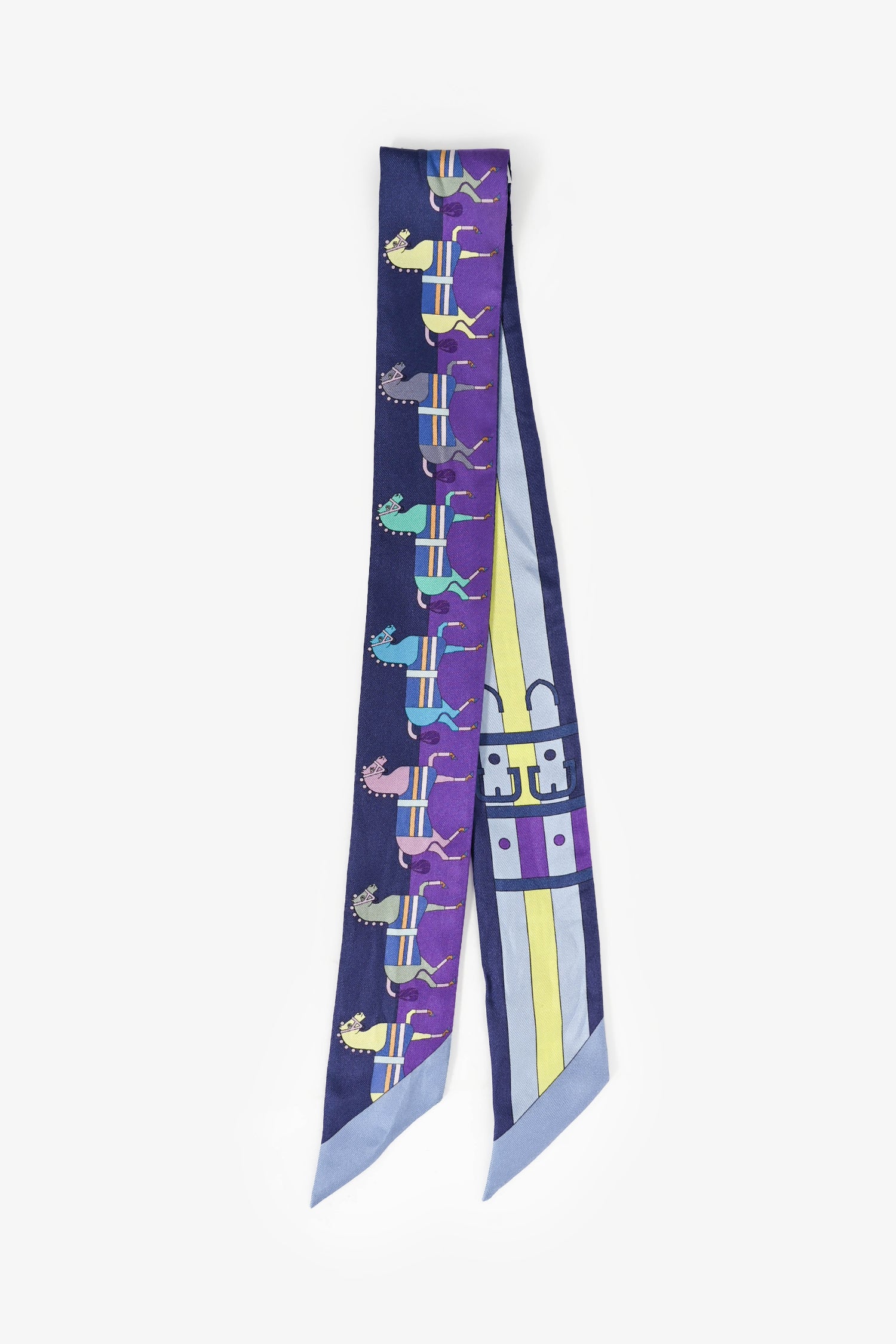Refresh availabilityHermès Purple/Blue Horses Silk Twilly. Tonal stitching.