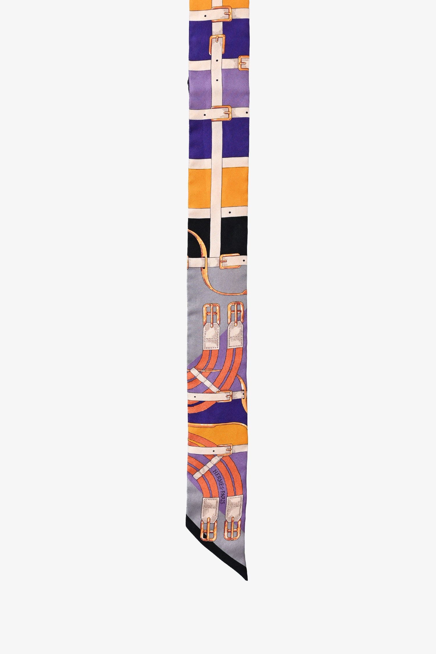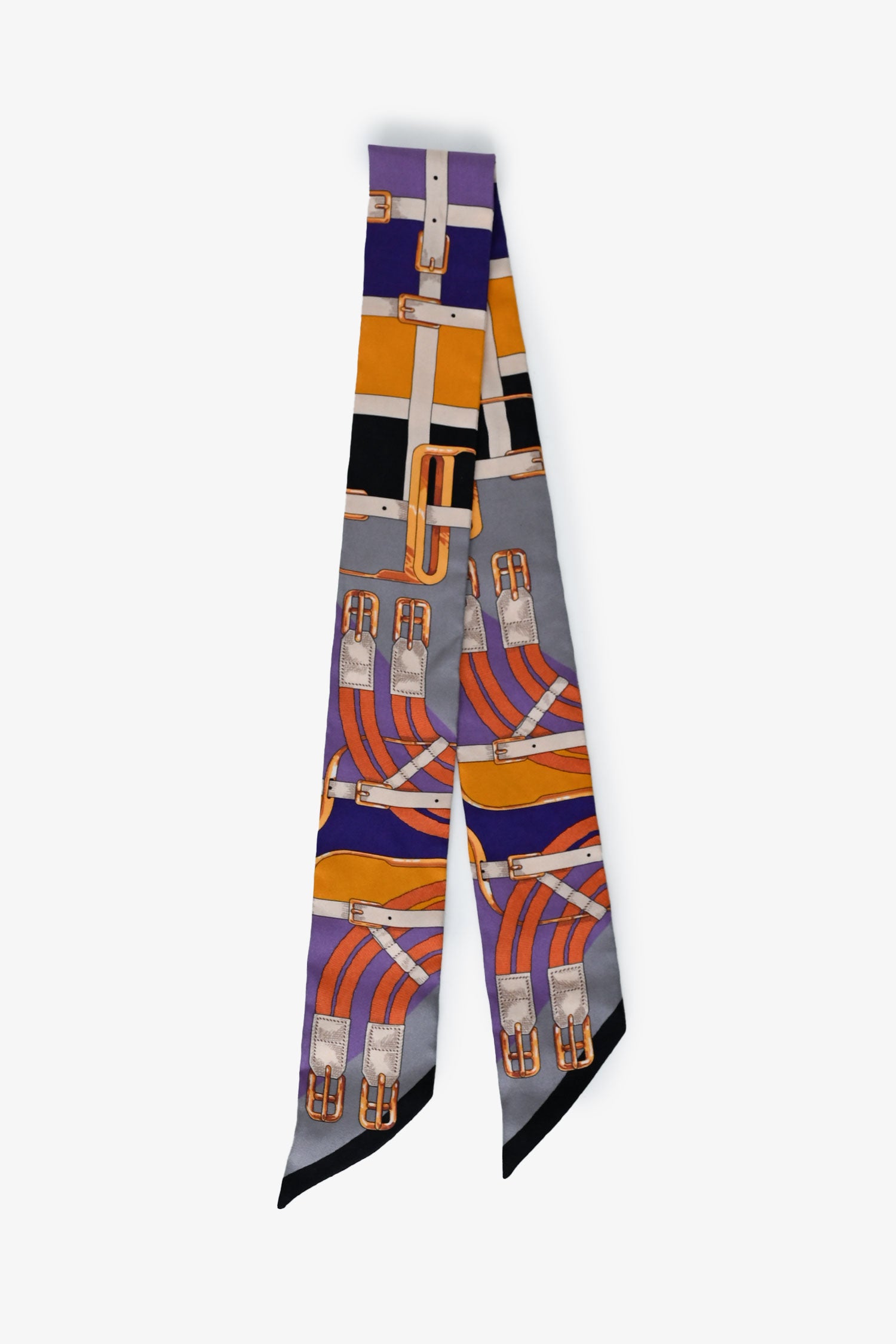 Refresh availabilityHermès Purple/Grey Silk Belt Buckle Print Twilly. Tonal stitching.