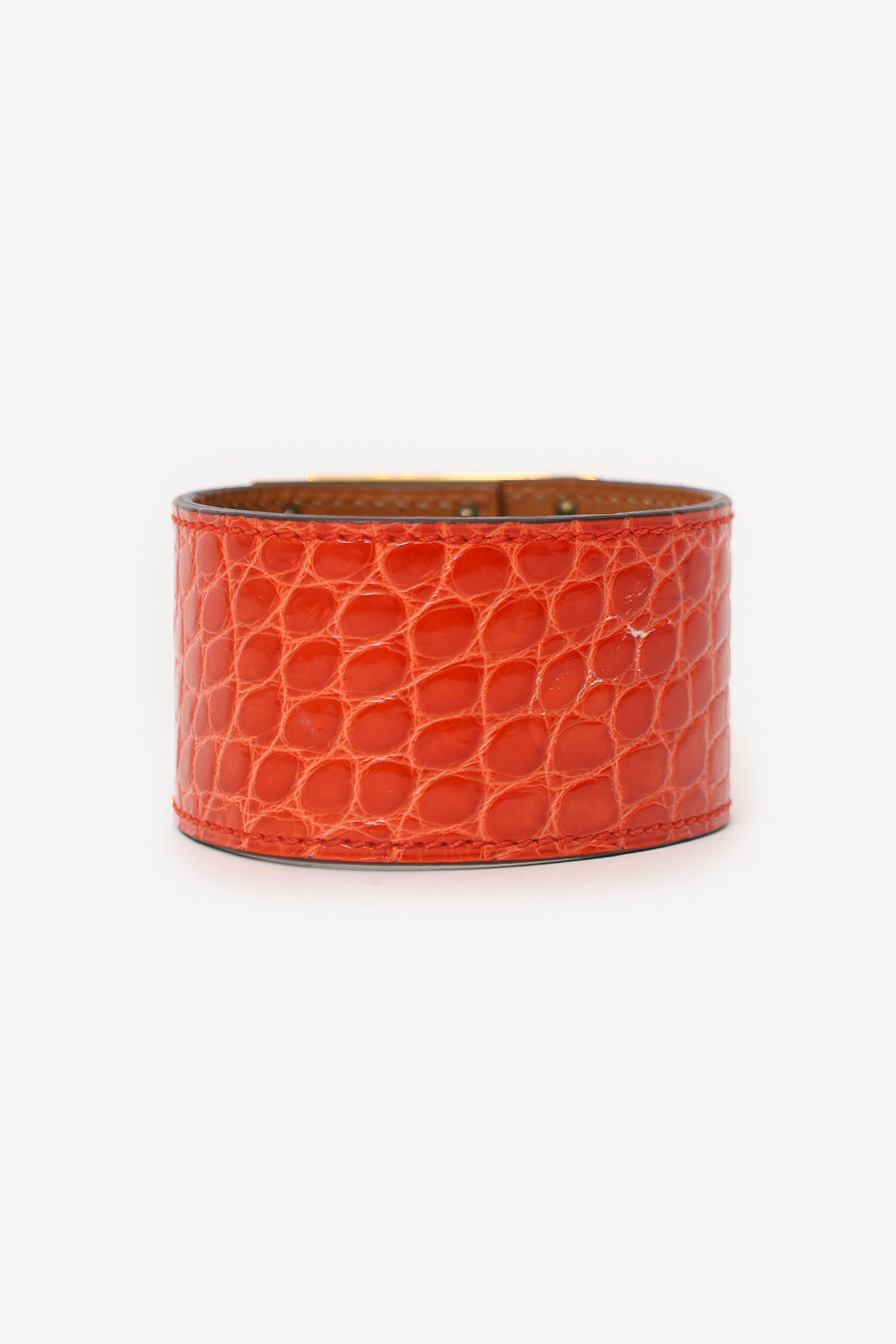 Hermes Red Crocodile Leather Gold Plated Kelly Dog Bracelet