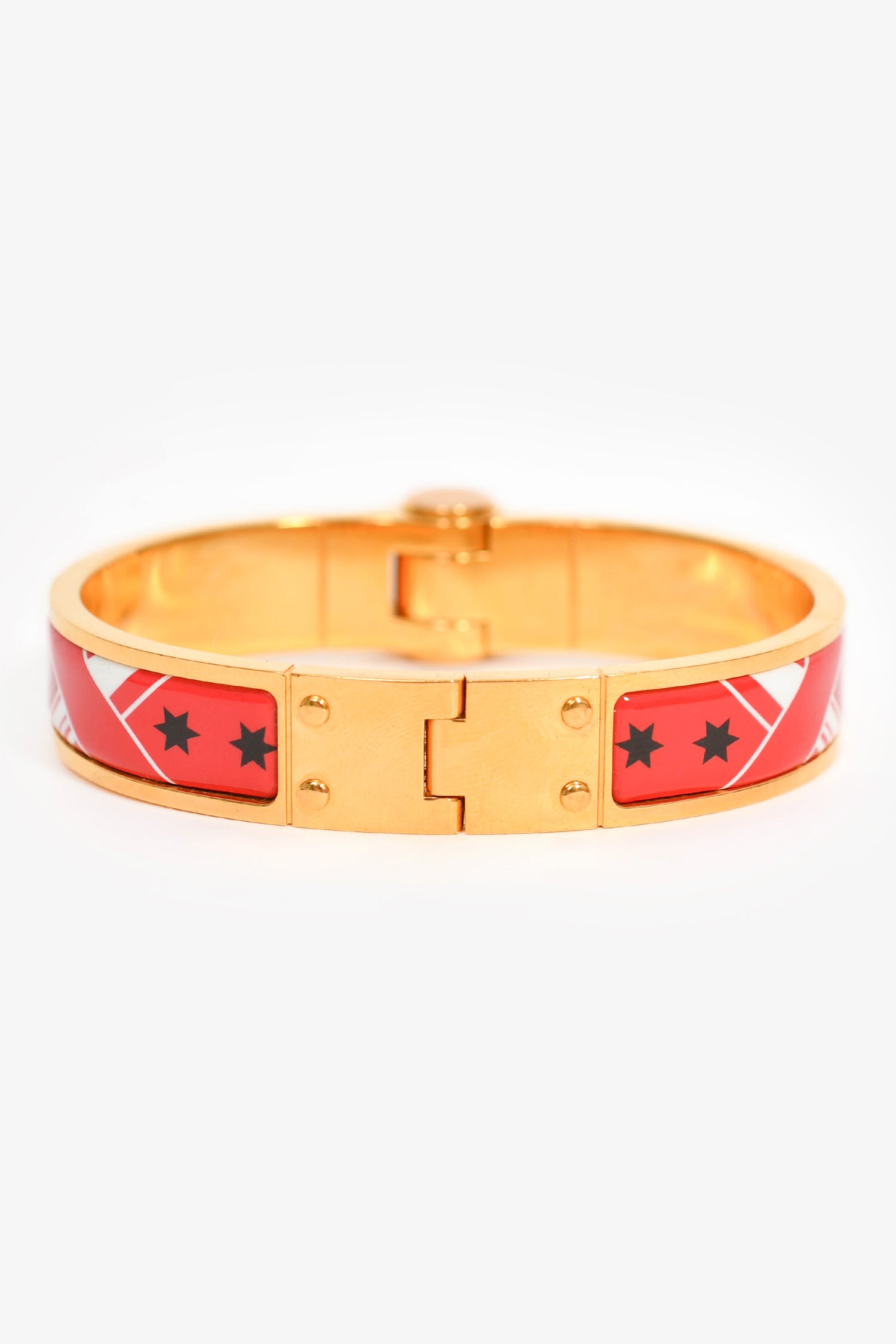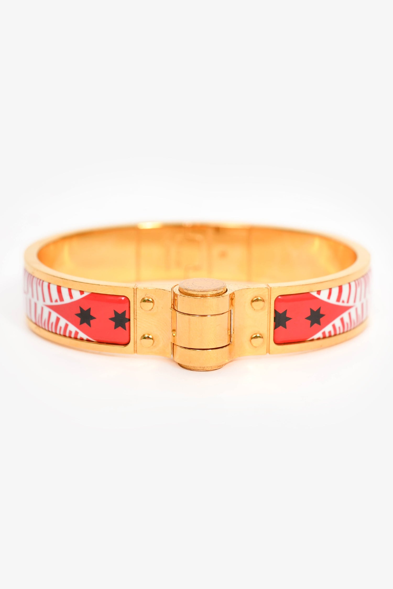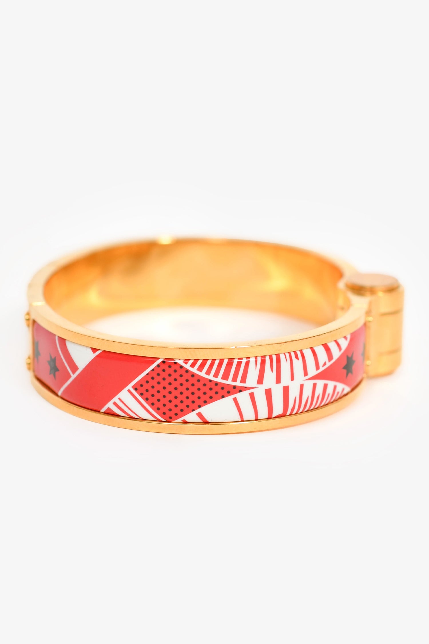 Hermès Red Eperon D'or Bandana Rouge Enamel Gold Plated Hinged Bracelet Size S