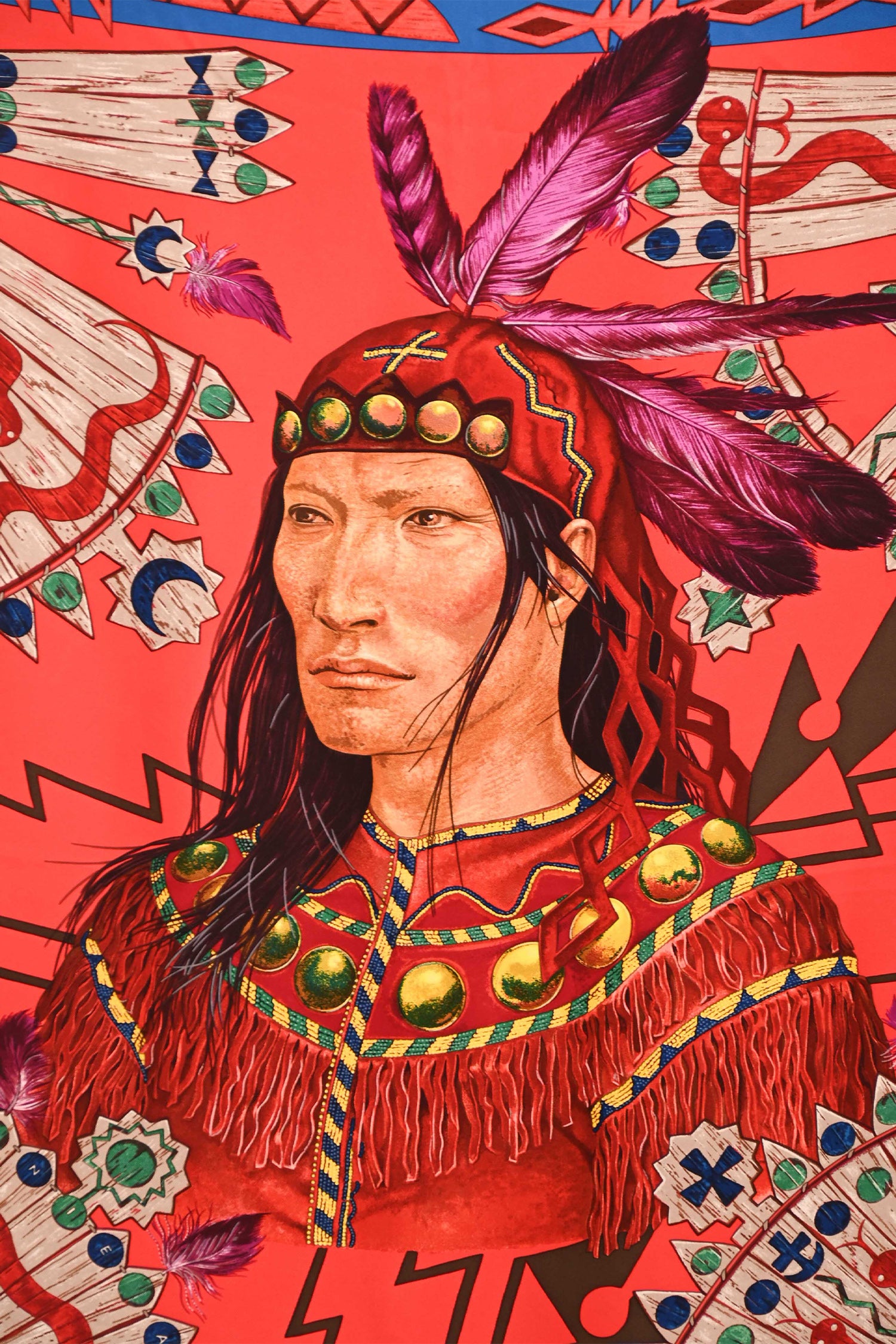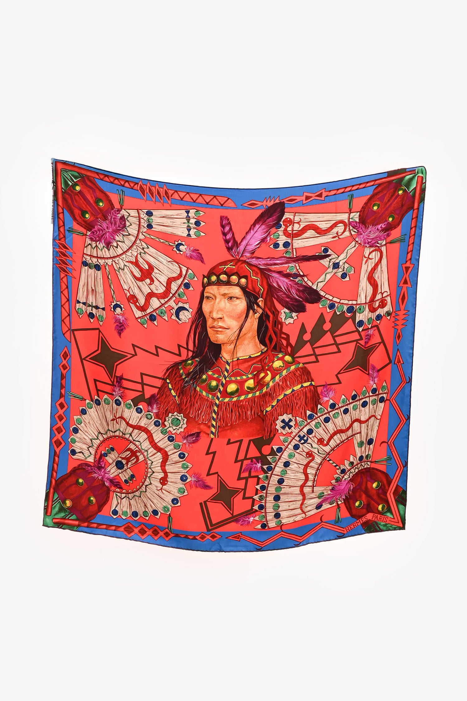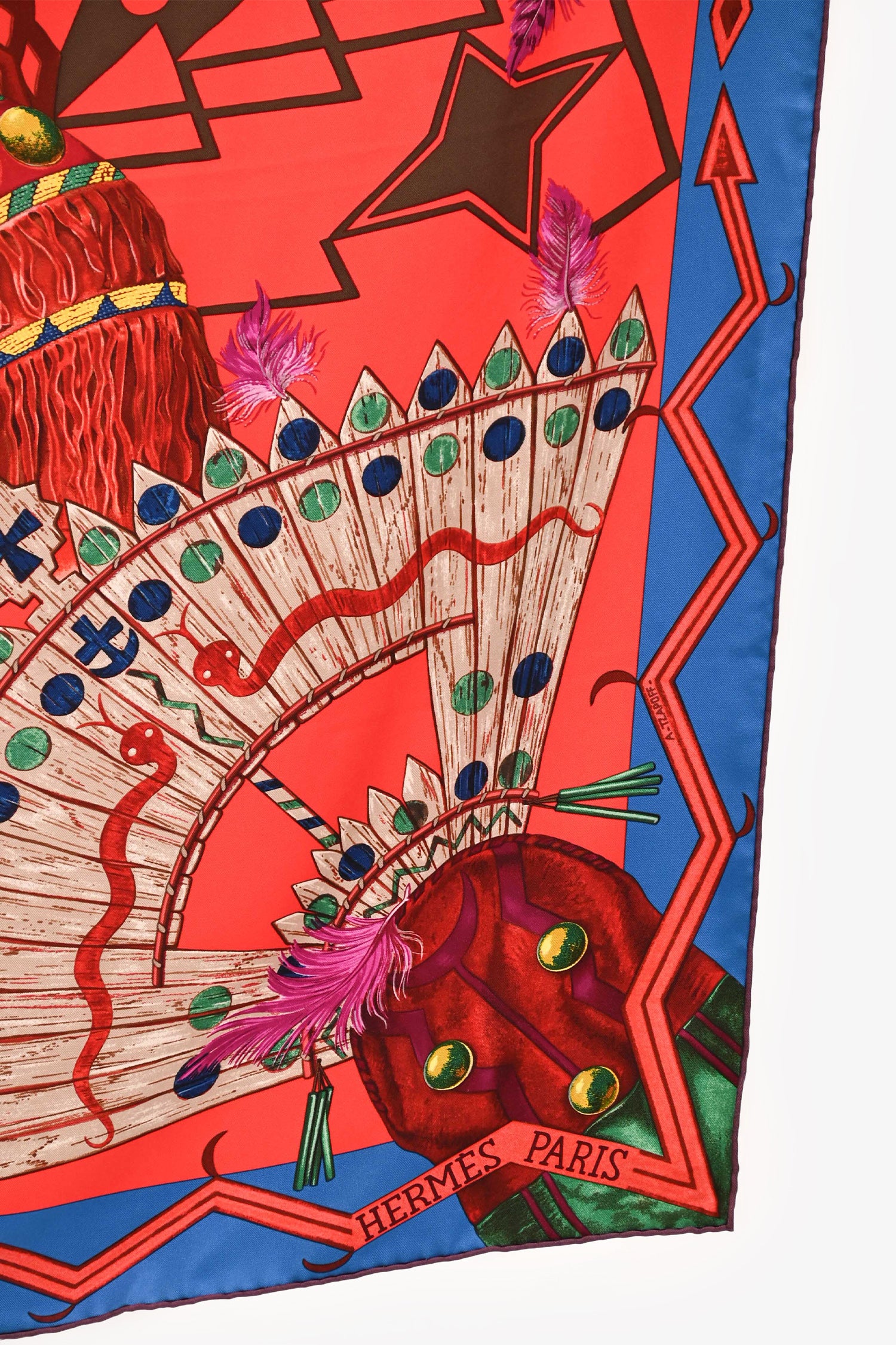 Refresh availabilityHermès Red/Blue Silk Graphic Printed Scarf 90. Tonal stitching.