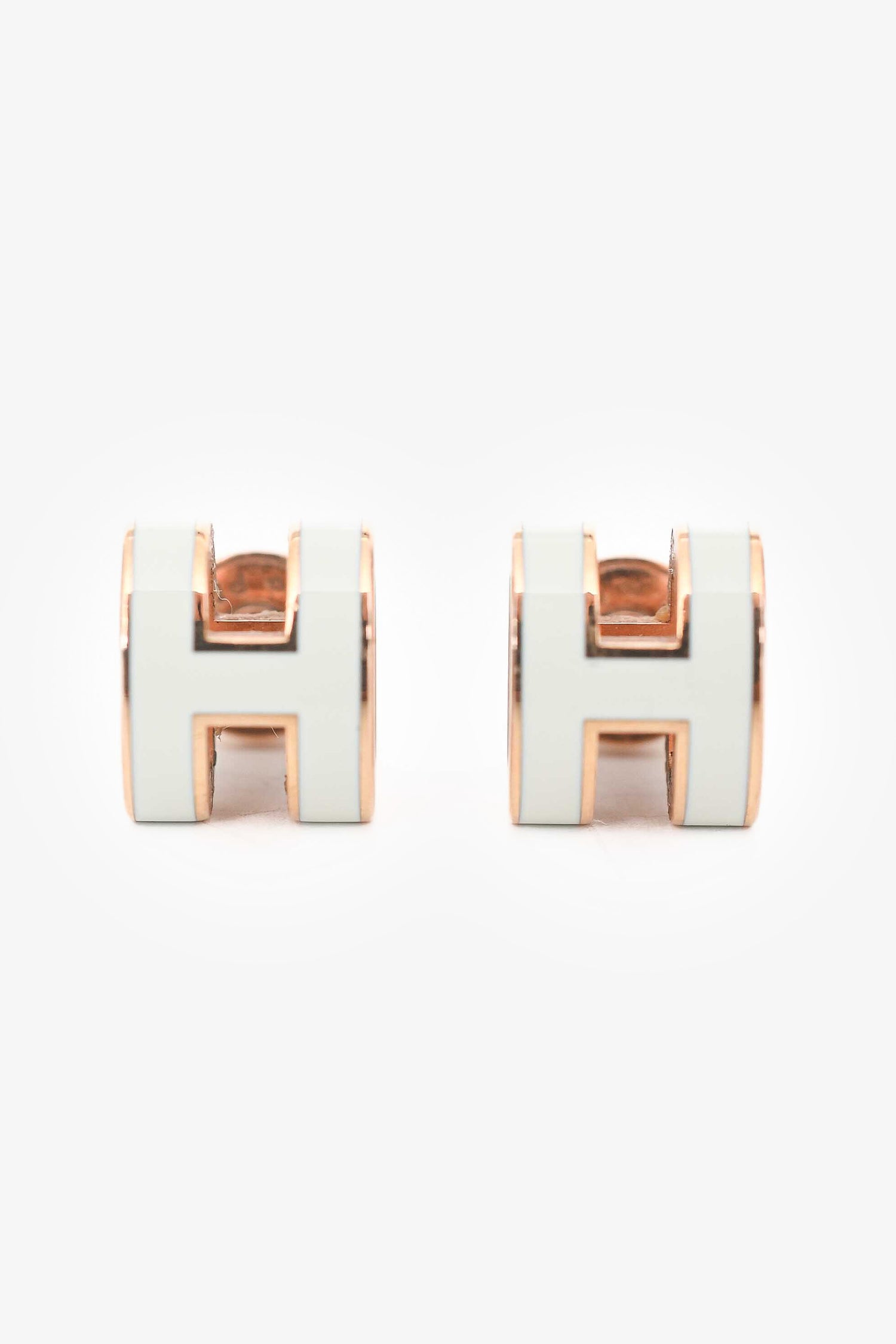 Refresh availabilityHermès Rose Gold Tone/White Metal/Enamel Pop H Mini Earrings. Post-stud closures.