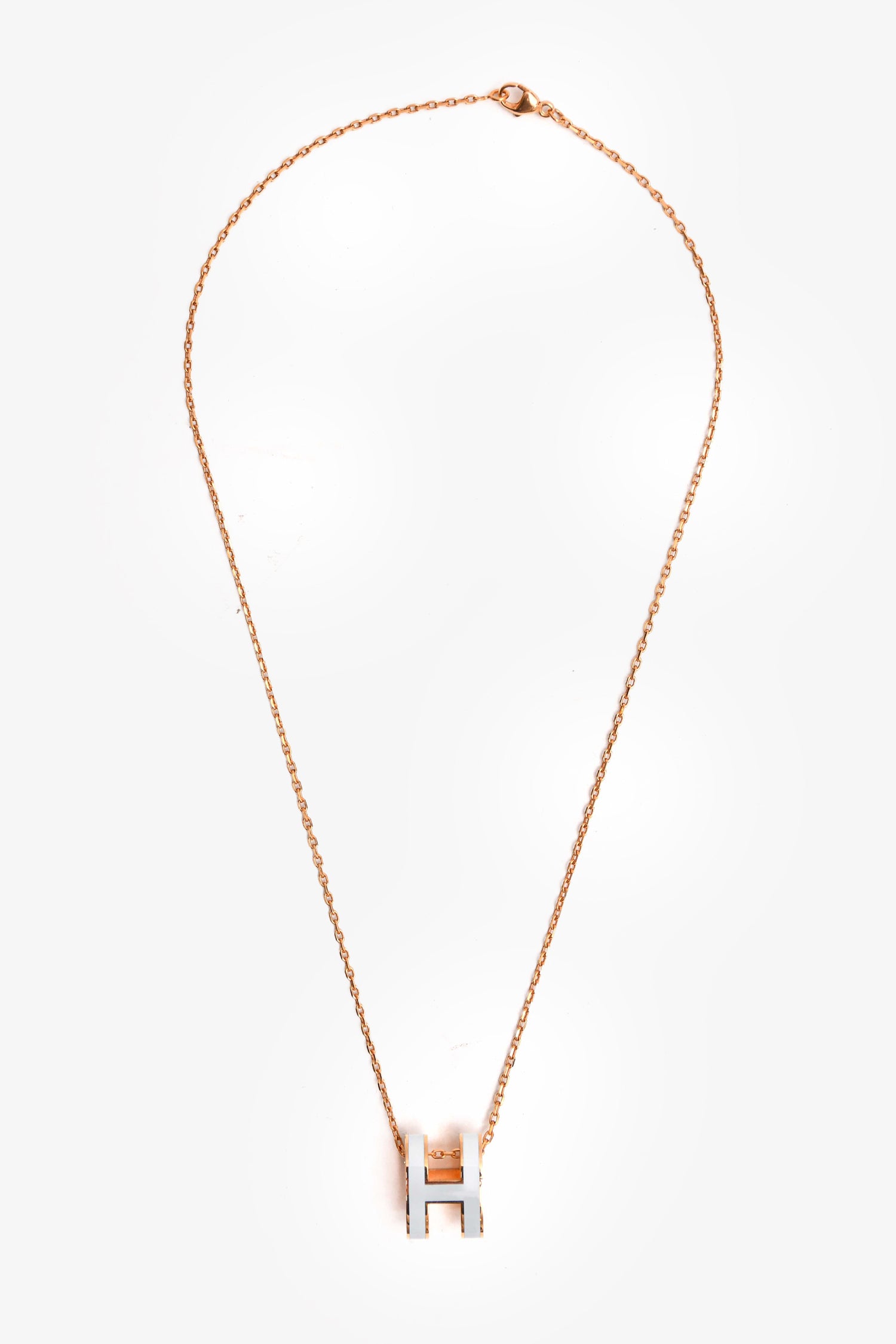 Refresh availabilityHermès Rose Gold Toned/Baby Blue Enamel H Pop Necklace. Rose gold-tone hardware. Back clasp. Tonal hardware.