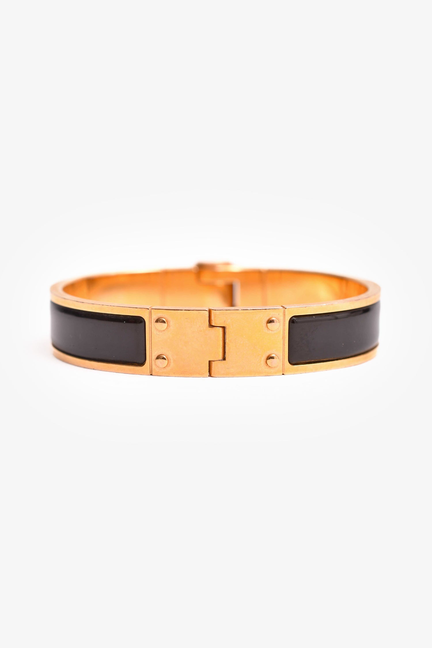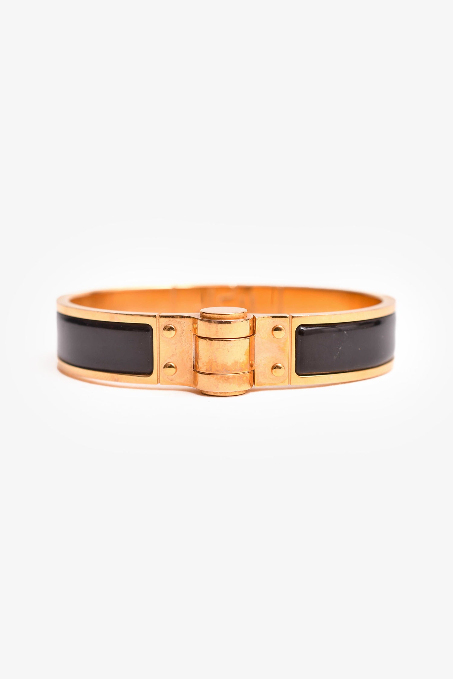 Refresh availabilityHermès Rose Gold Toned/Black Enamel Charnière Hinged Bracelet.