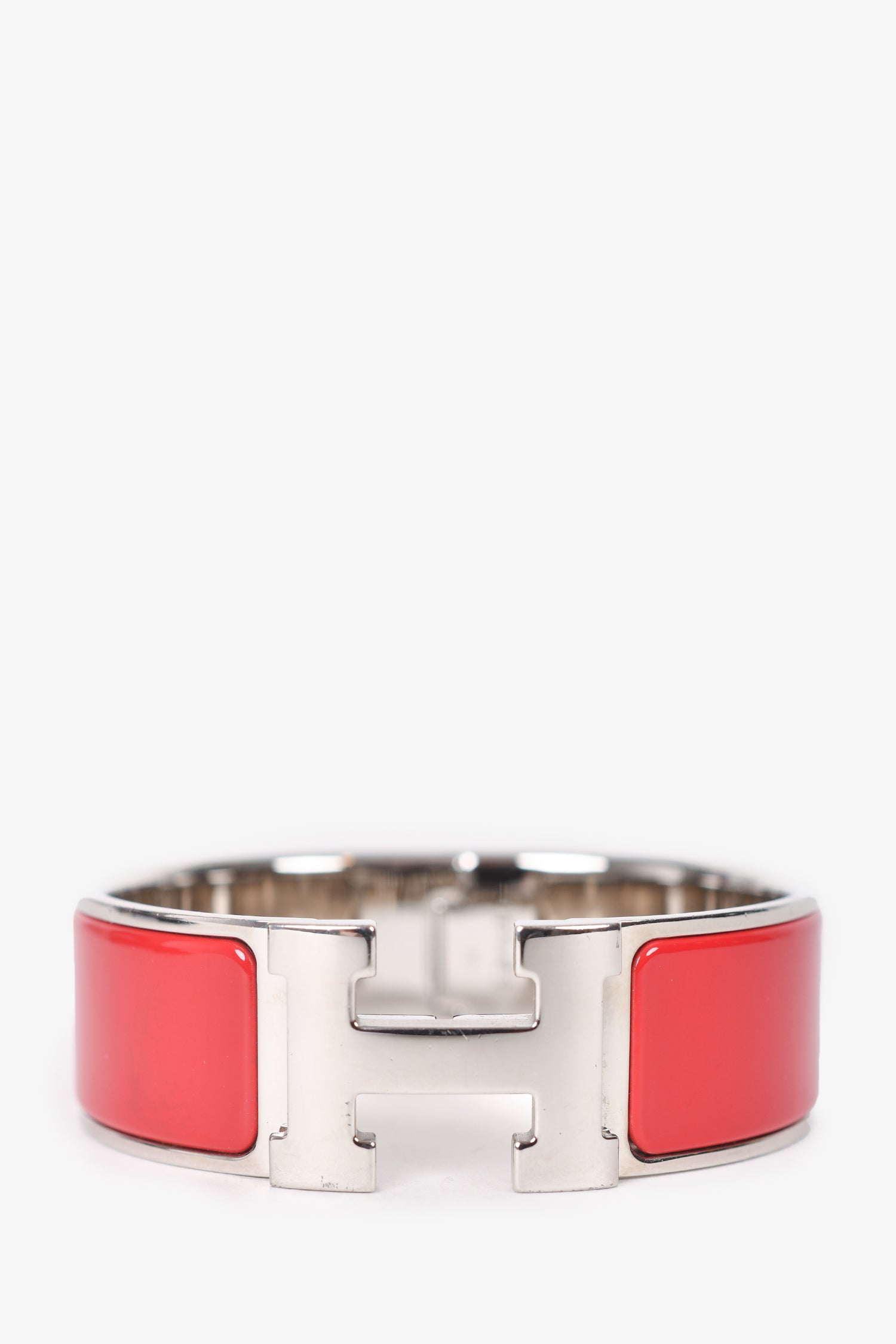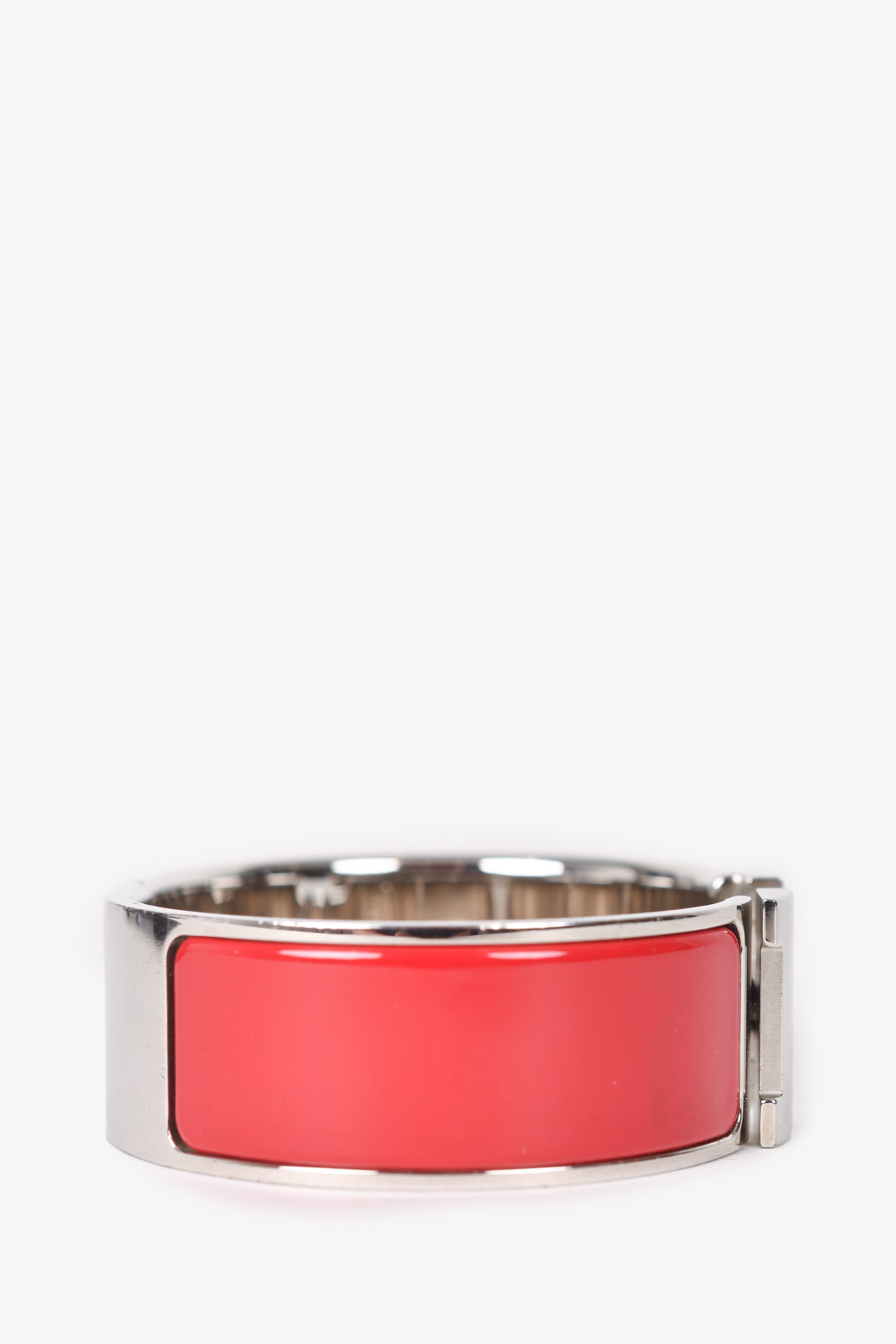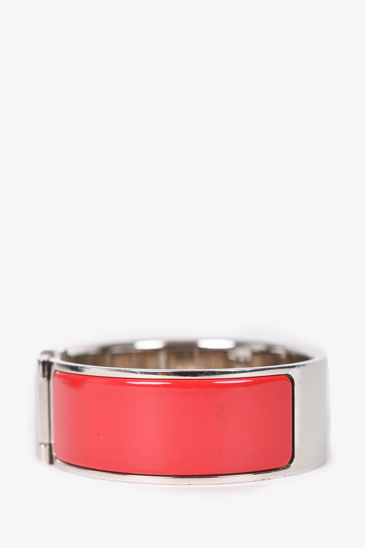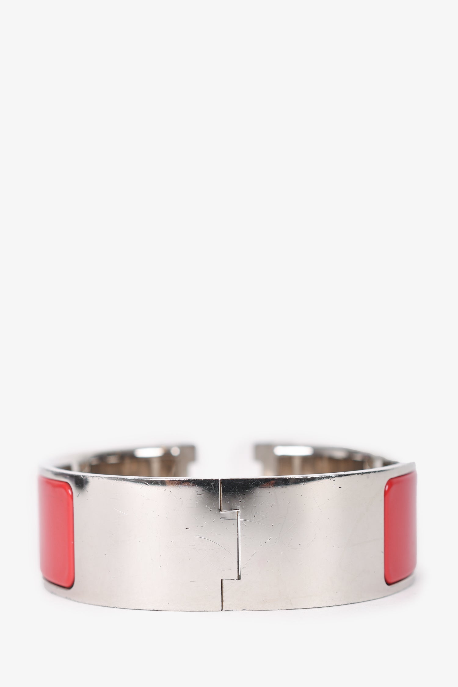 Refresh availabilityHermes Silver/Red Enamel Clic Clac Bracelet. Turn-lock closure.