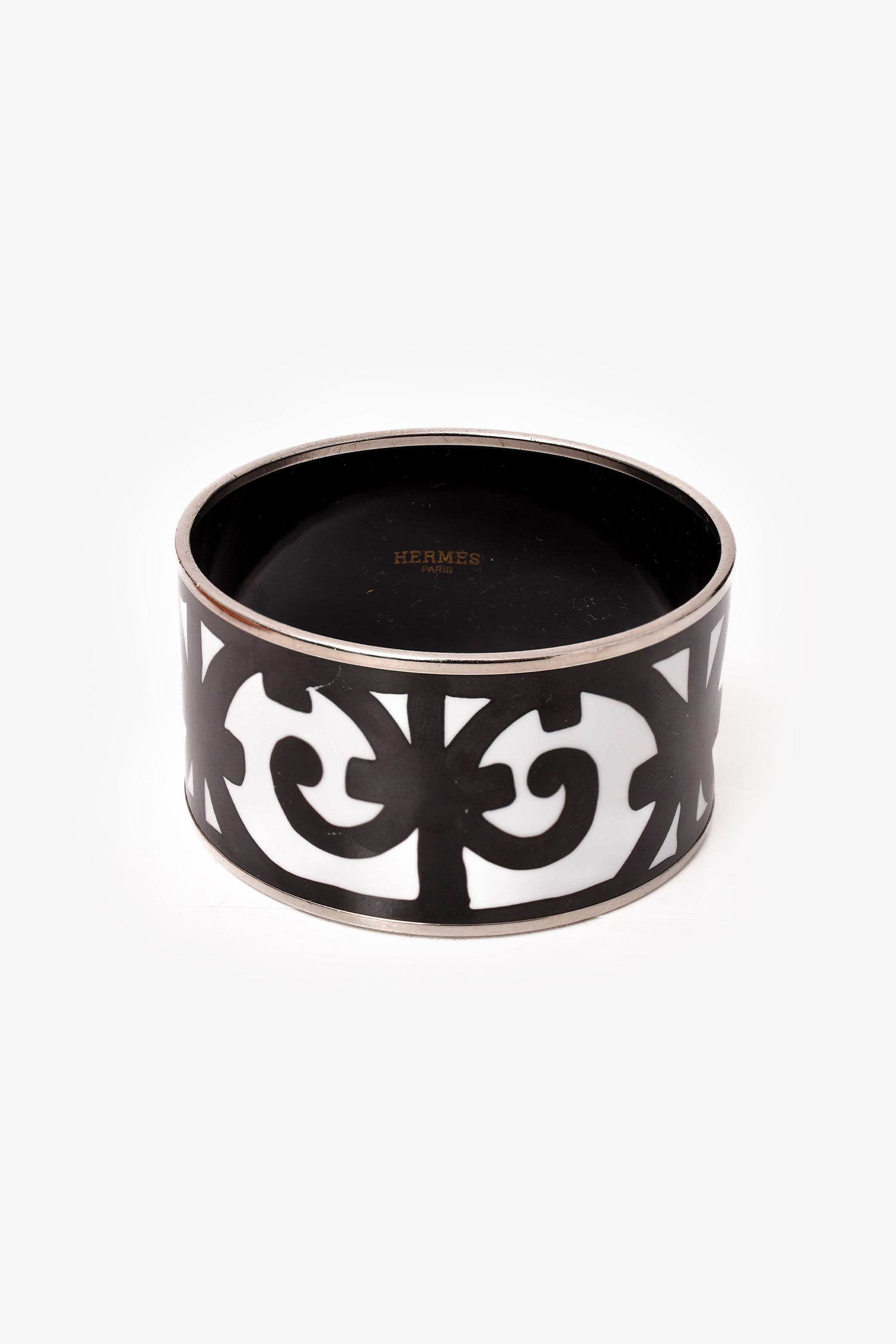 Refresh availabilityHermès Silver Tone Black/White Metal/Enamel Geometric Pattern Wide Bangle. Silver-tone hardware.