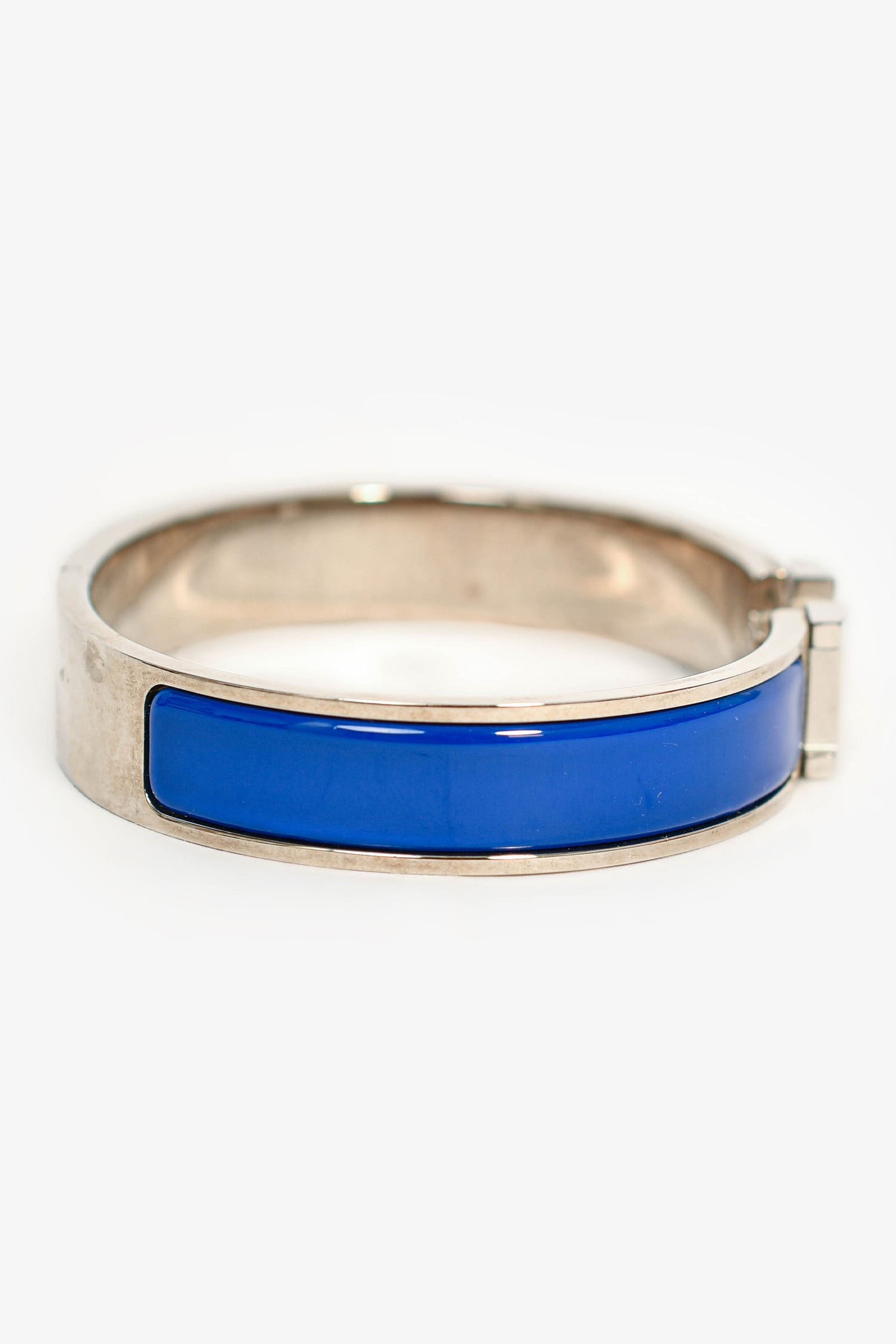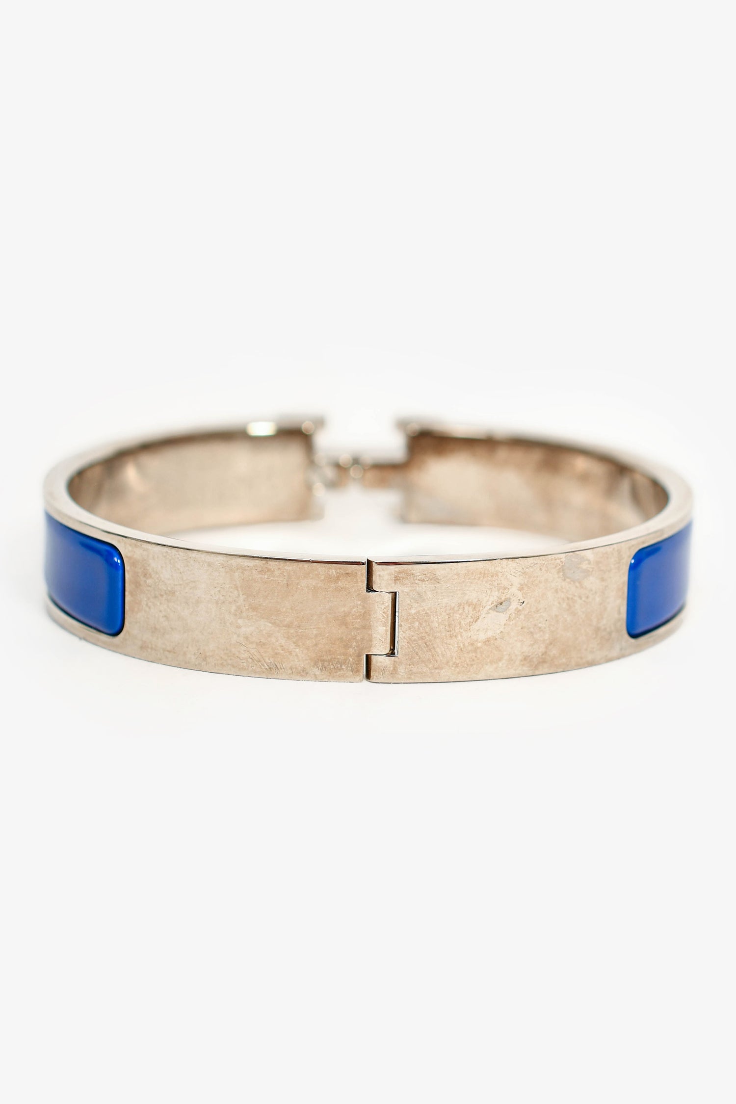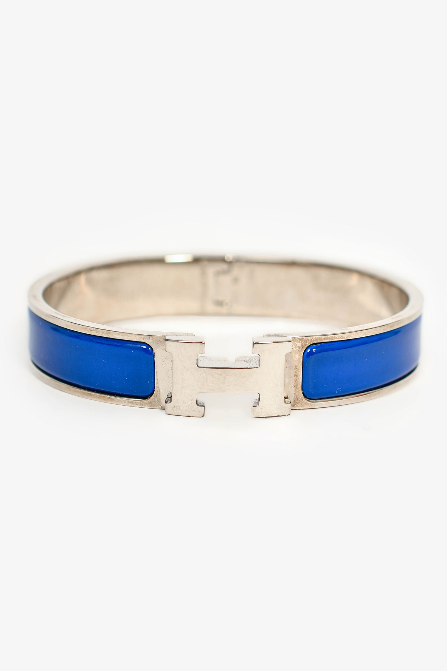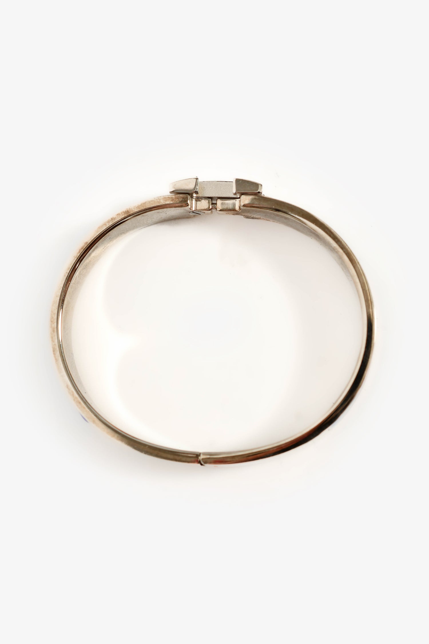 Refresh availabilityHermès Silver Tone/Silver Metal/Enamel Clic Clac H Bracelet. Signature “H” clasp with hinged opening.