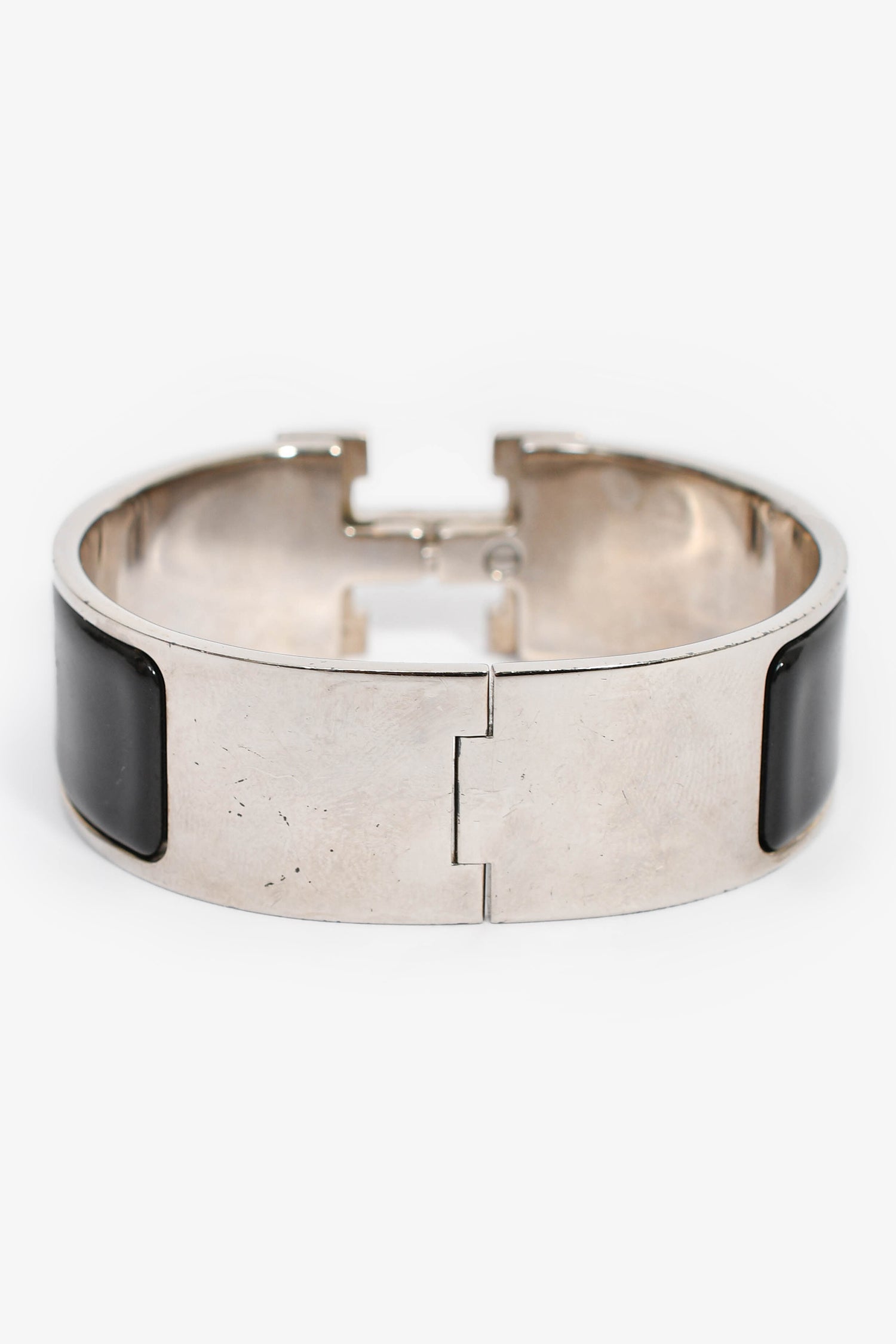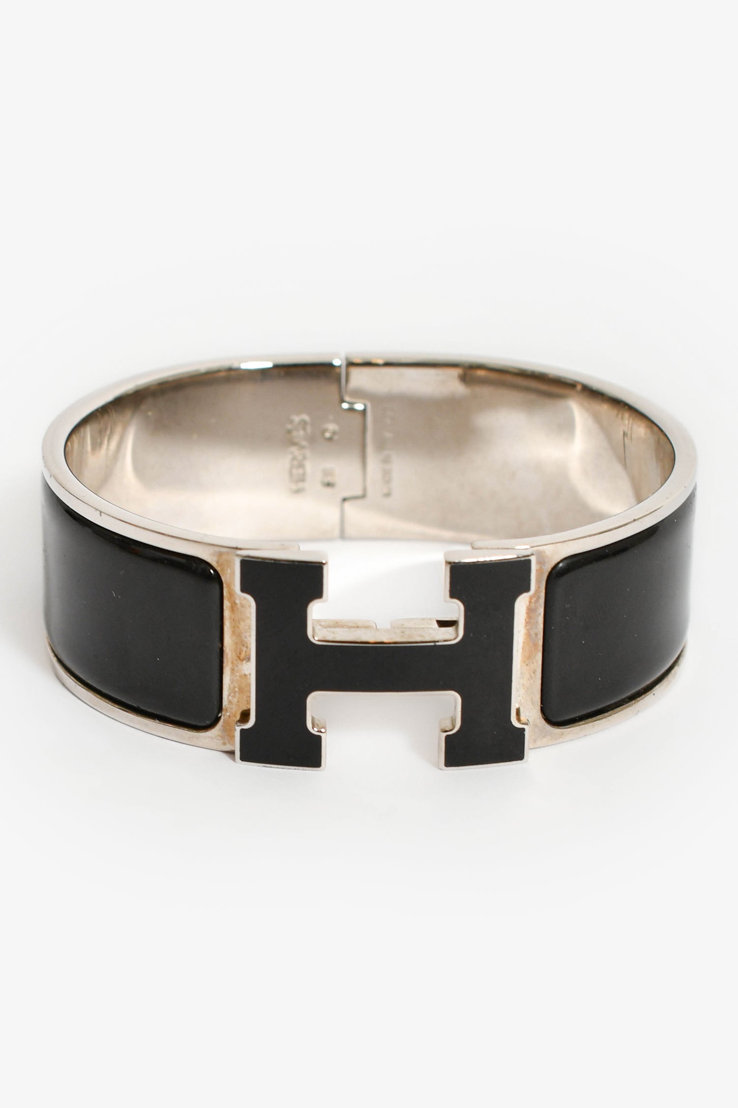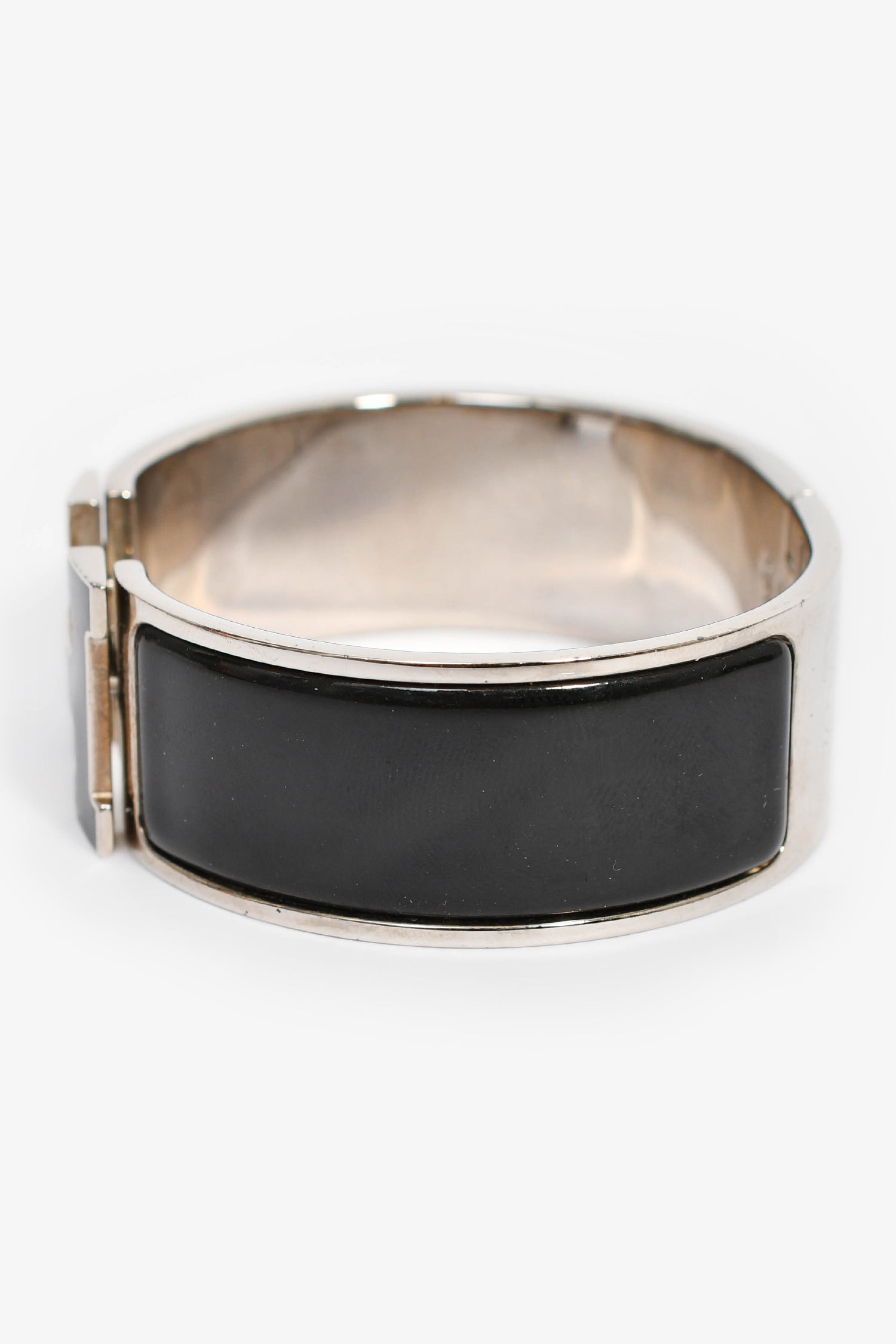 Refresh availabilityHermes Silver Toned/Black Ceramic Clic Clac Bracelet. Hinged closure with signature H clasp.