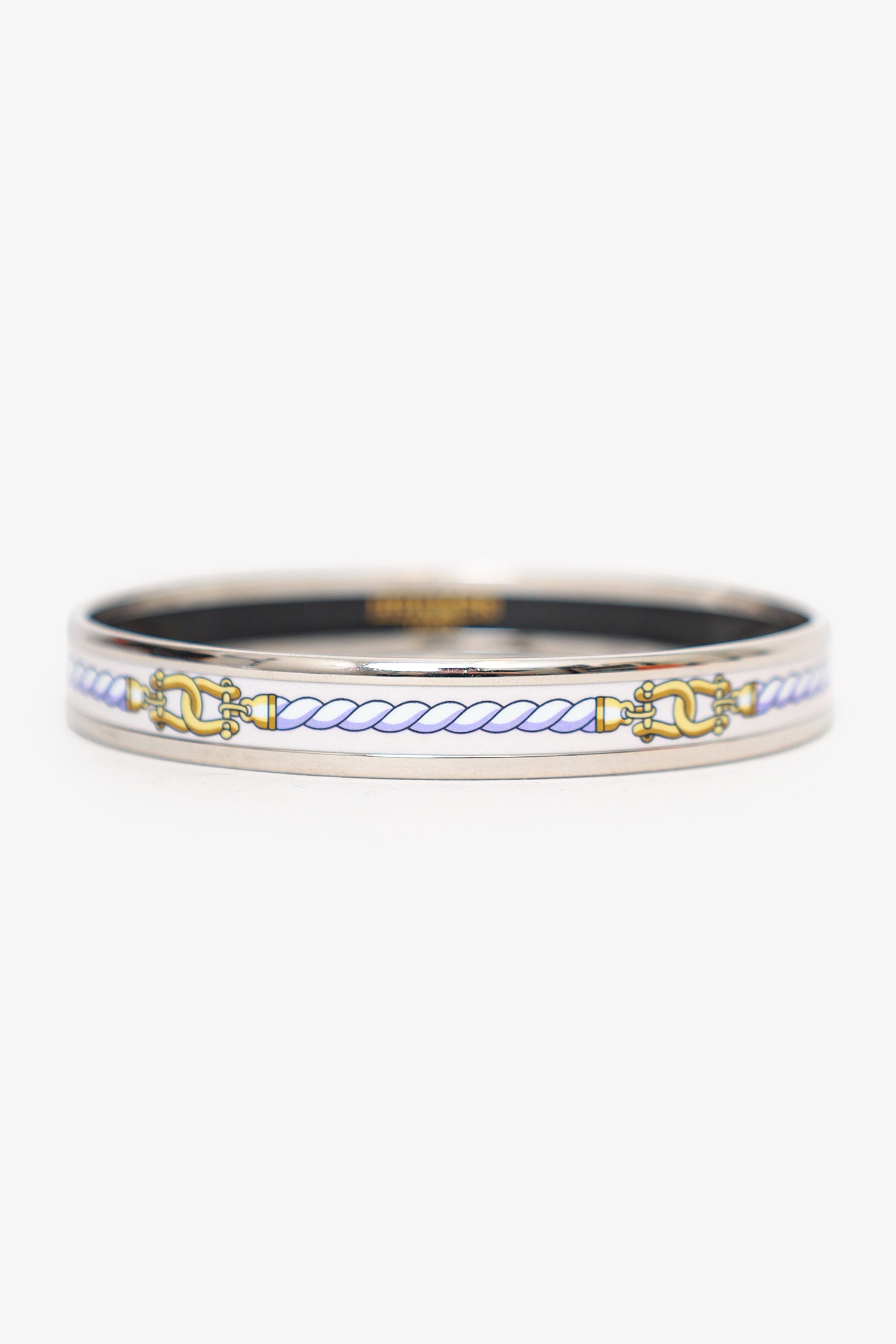 Refresh availabilityHermès Silver Tone/White Rope Print Bangle. Slip-on.