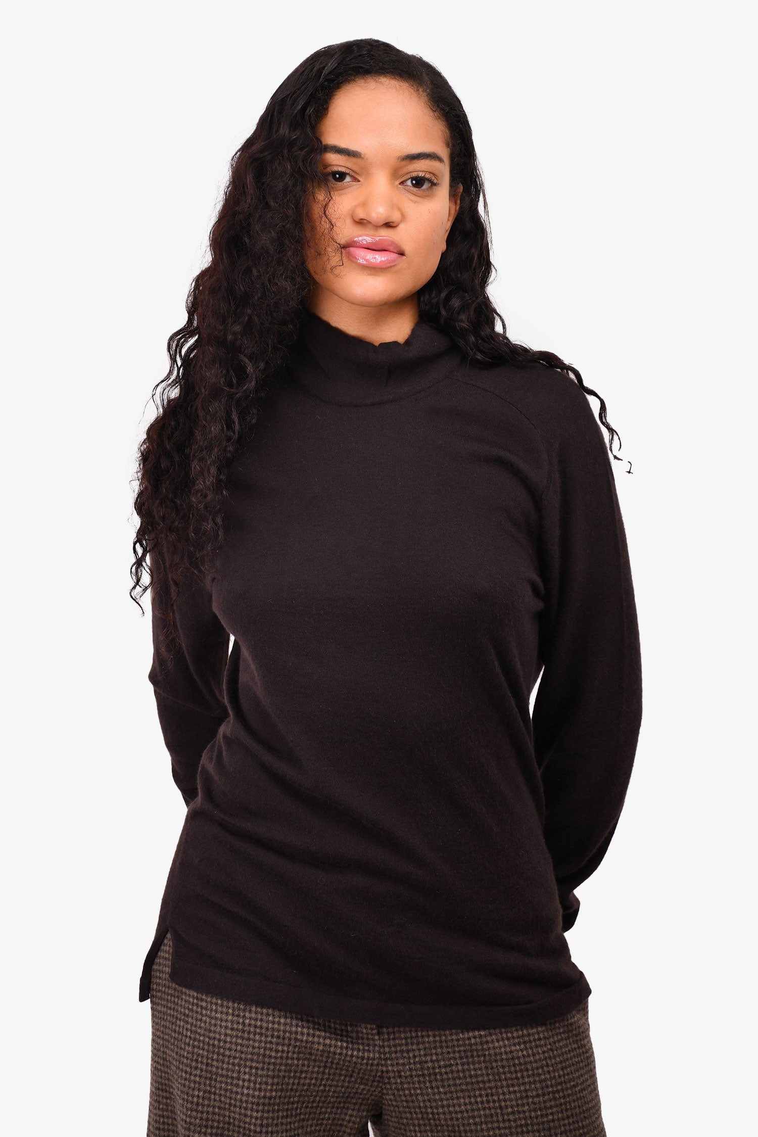 Refresh availabilityHermès Vintage Brown Cashmere Turtleneck Sweater. Tonal stitching. Turtleneck. Long-sleeves. Side vent on waistband.