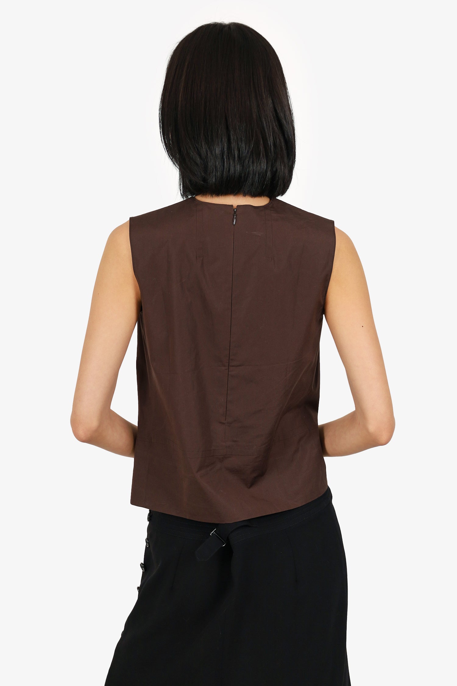 Hermès Vintage Brown Cotton Sleeveless Top Size 34