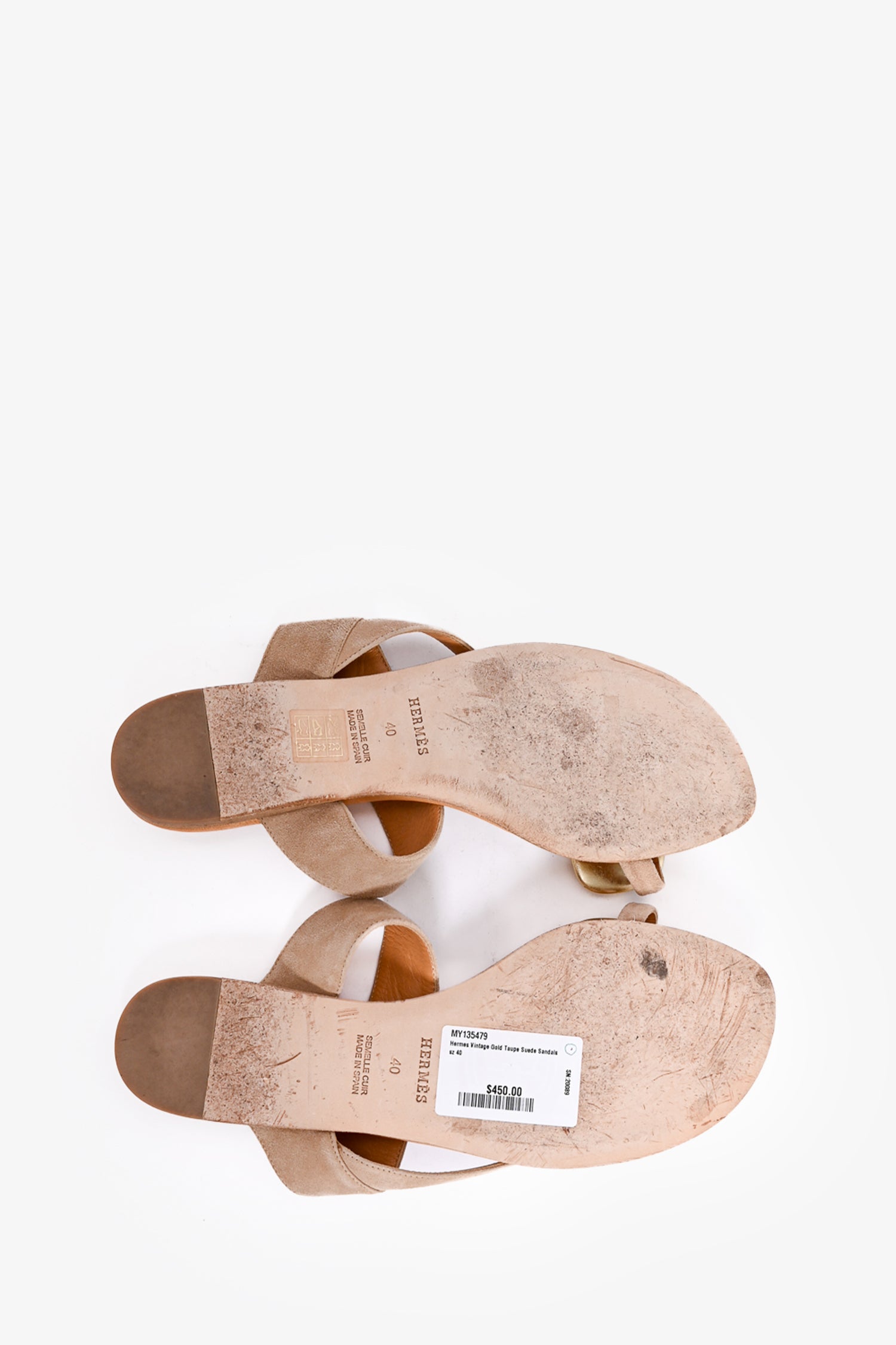 Hermès Vintage Gold Taupe Suede Sandals Size 40