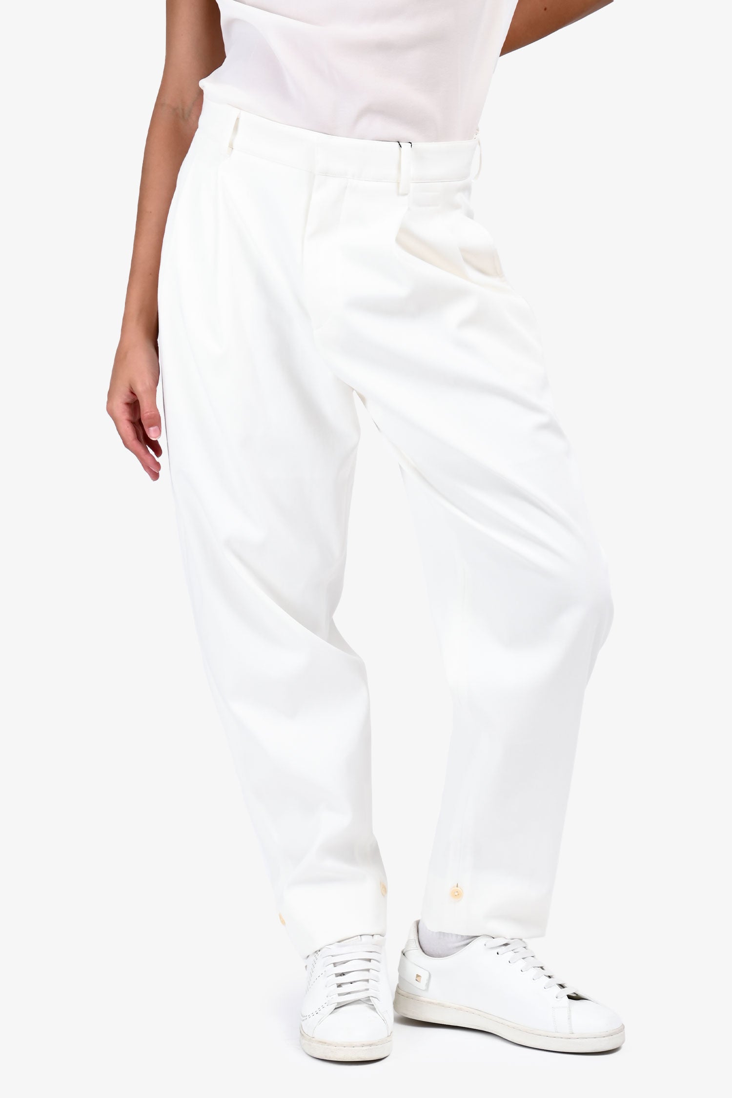 Hermès White Cotton Dart Front Cropped Trousers Size 38