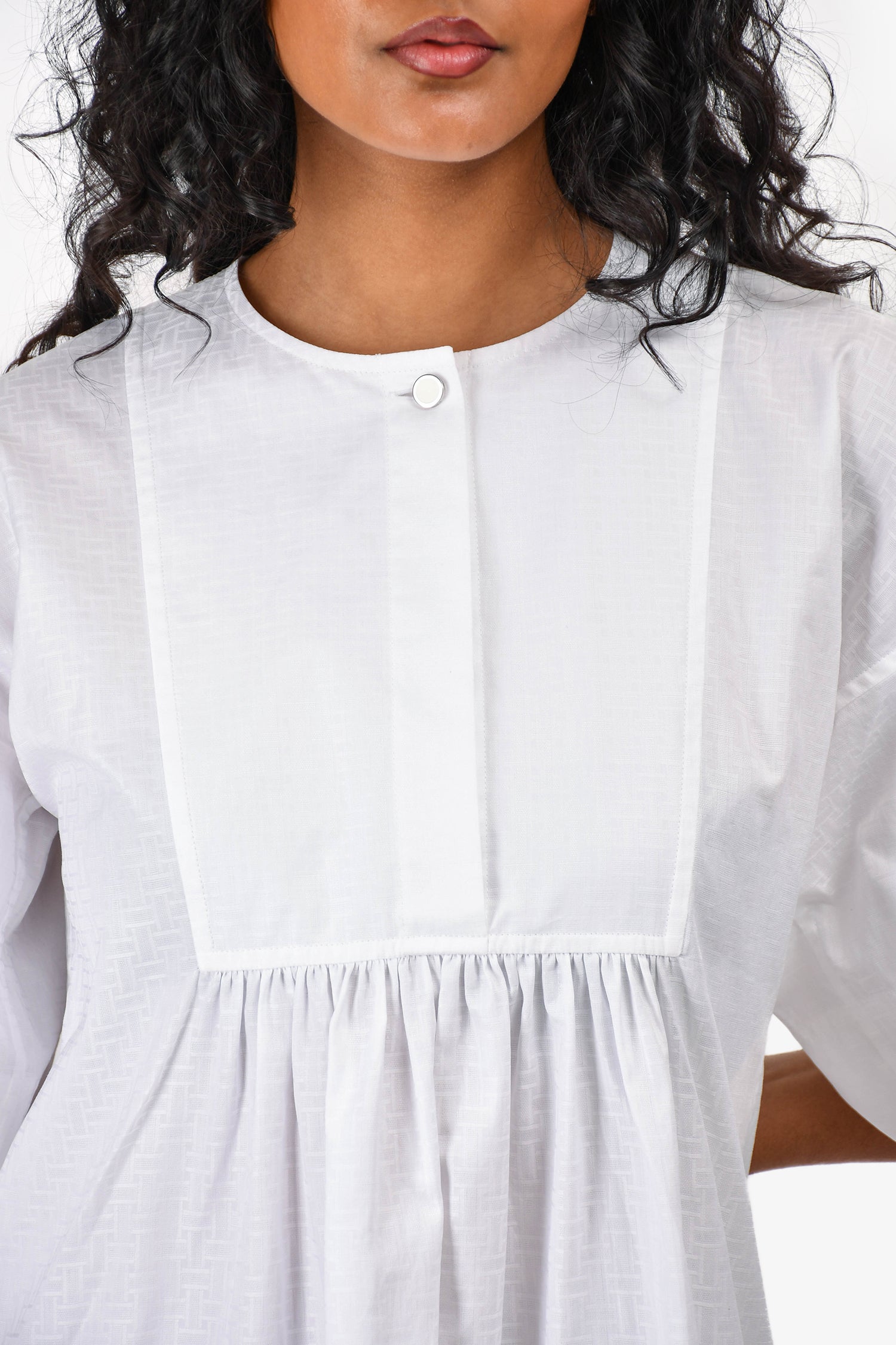 Refresh availabilityHermès White Cotton 'Mosaique Boho' Dress. Pull-over with front button closure at neckline. Unlined. Silver-toned hardware. Tonal stitching.