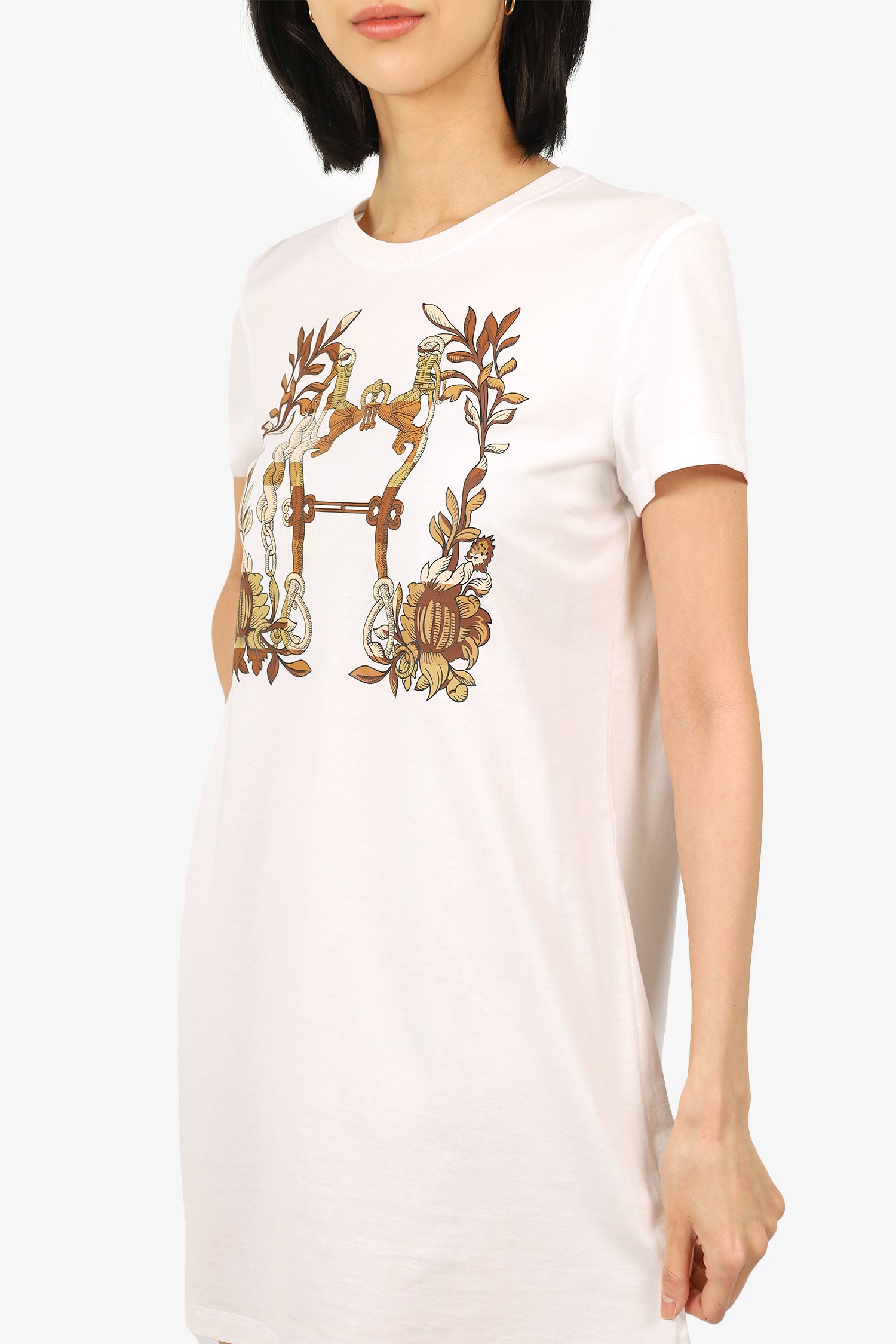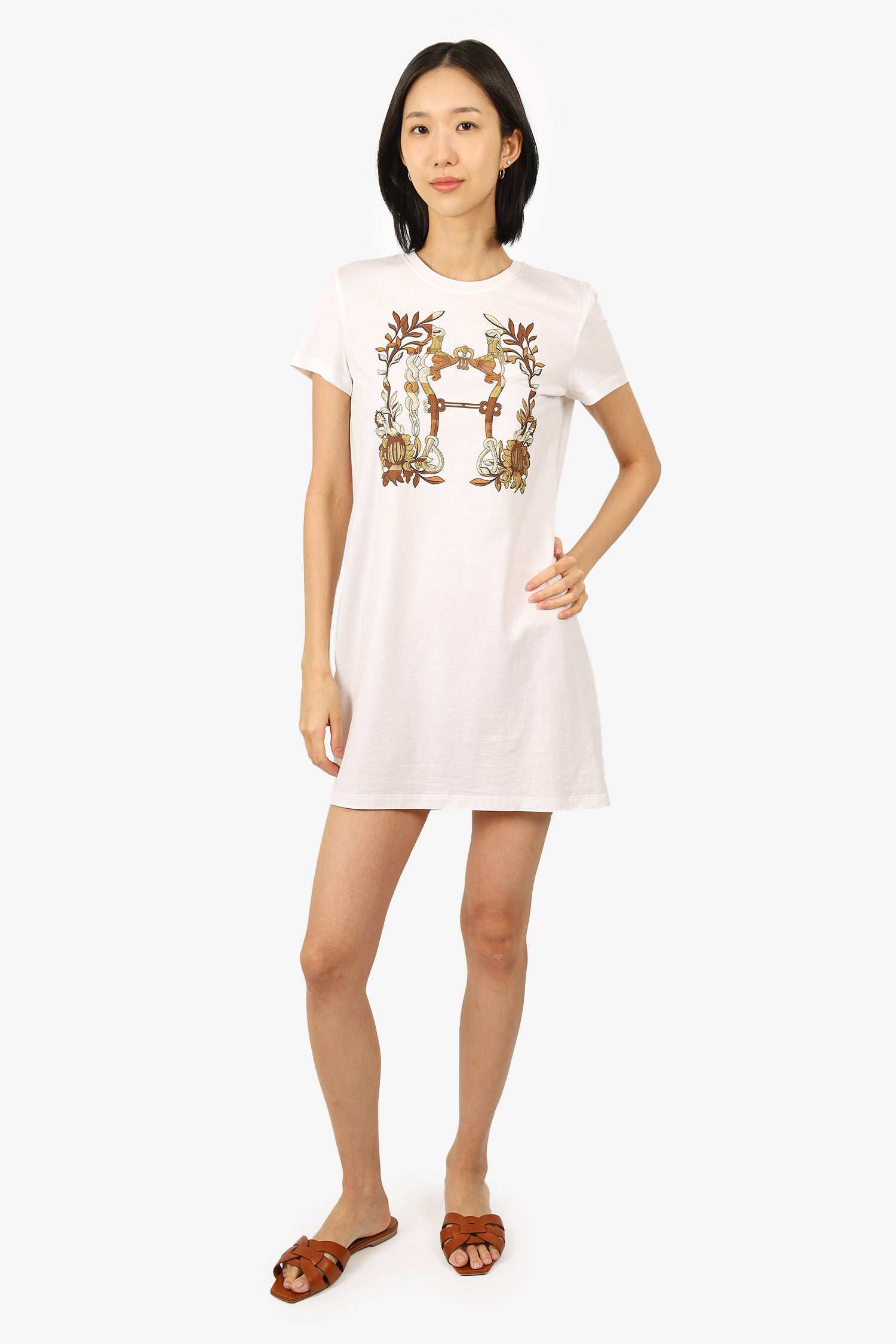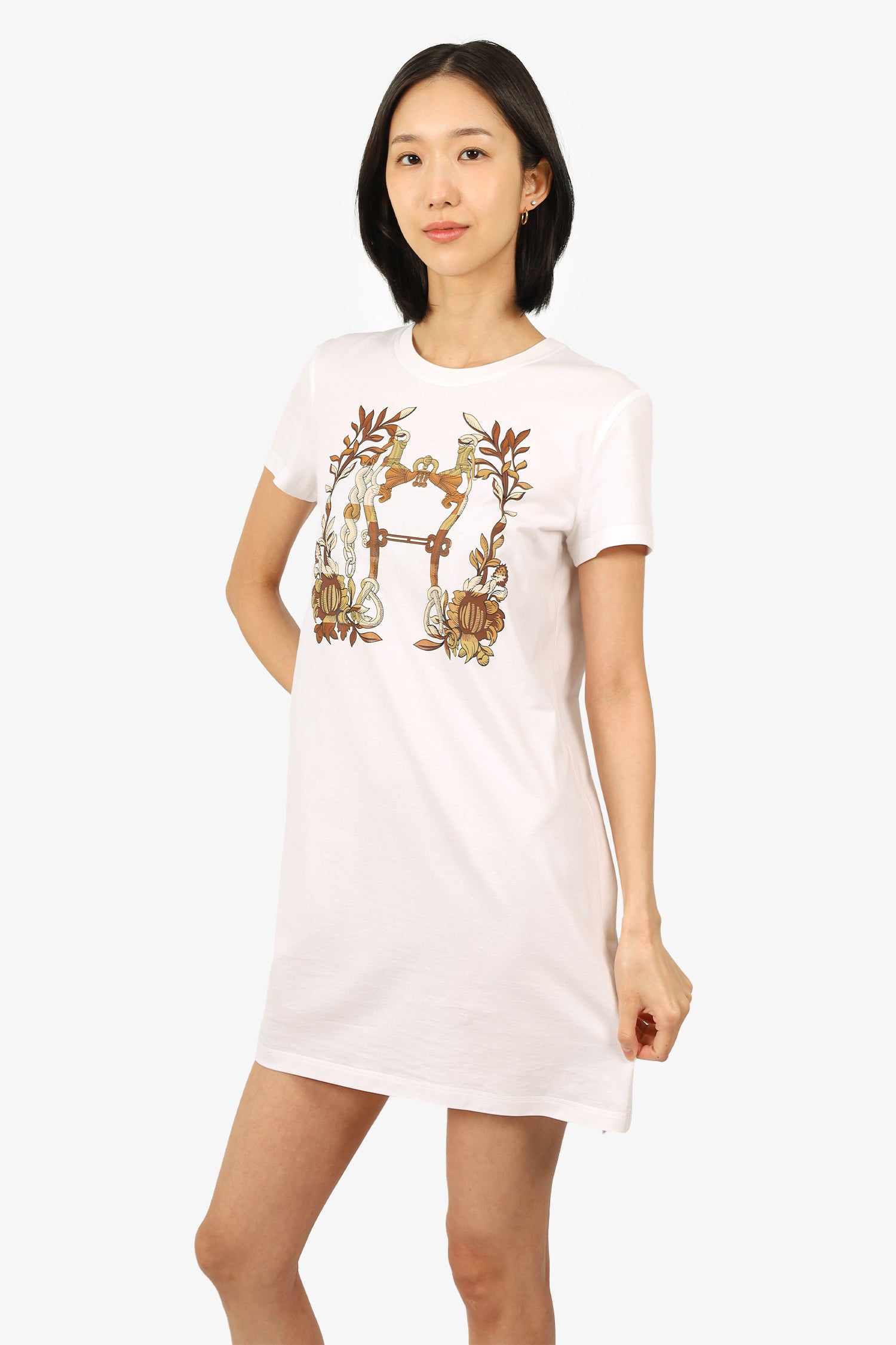 Refresh availabilityHermès White 'Della Cavalleria' T-Shirt Dress. Pull-on. Round neckline. Centre graphic. Tonal stitching.