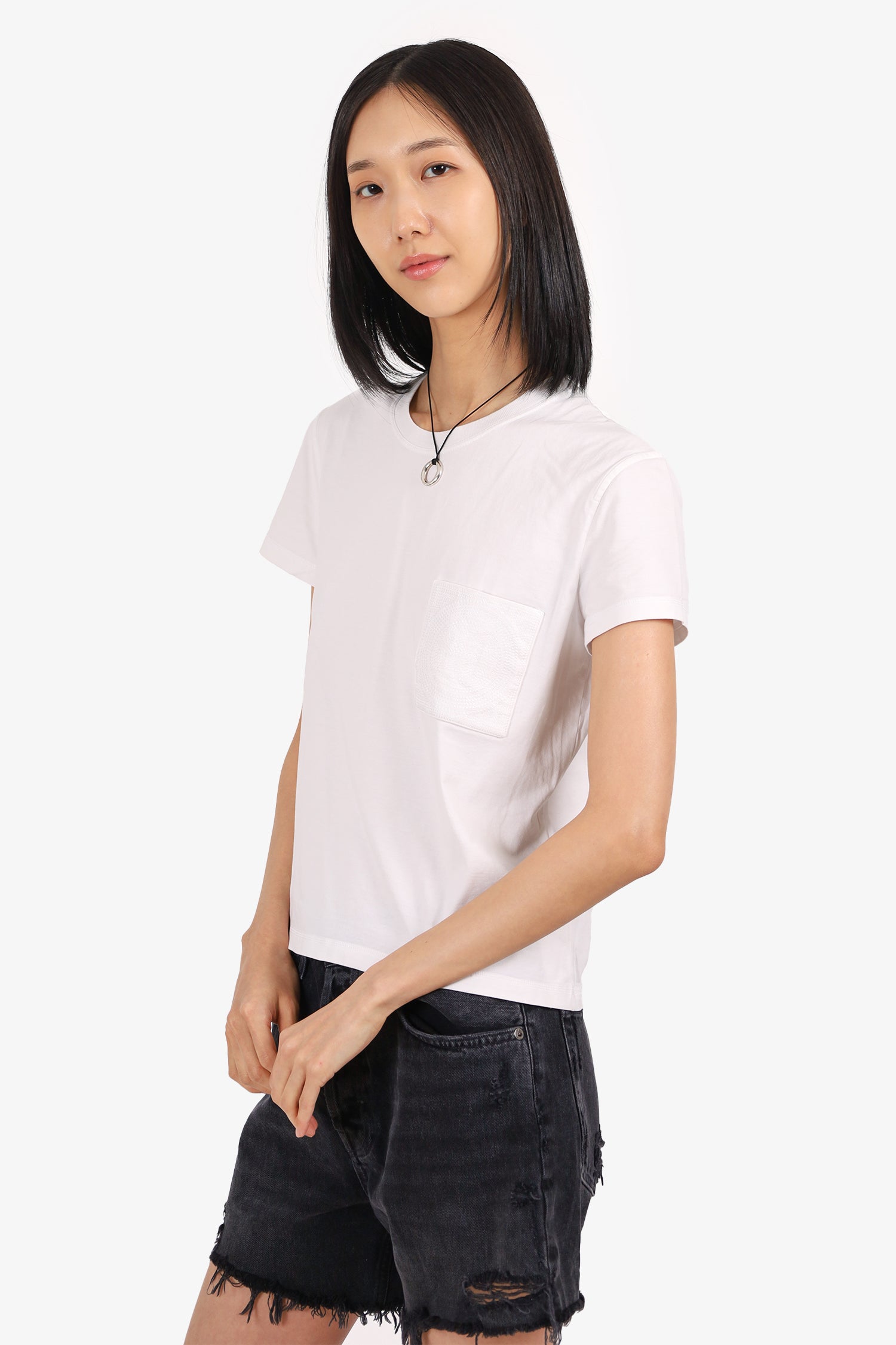 Refresh availabilityHermes White Embroidered Pocket T-Shirt. Pull-on. Round-neckline. Single front exteiror slip pocket. Tonal stitching.