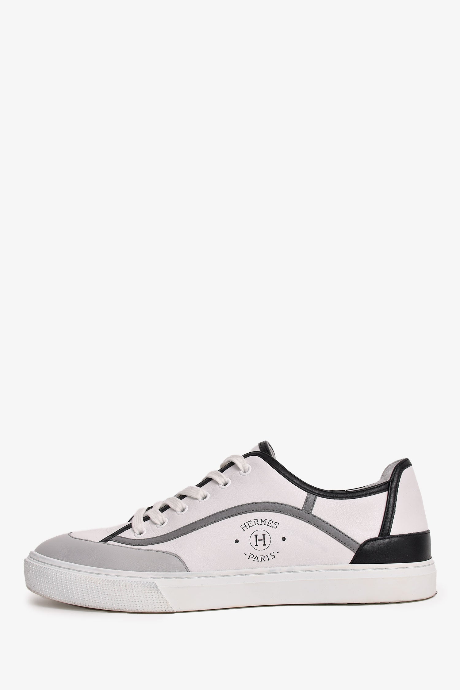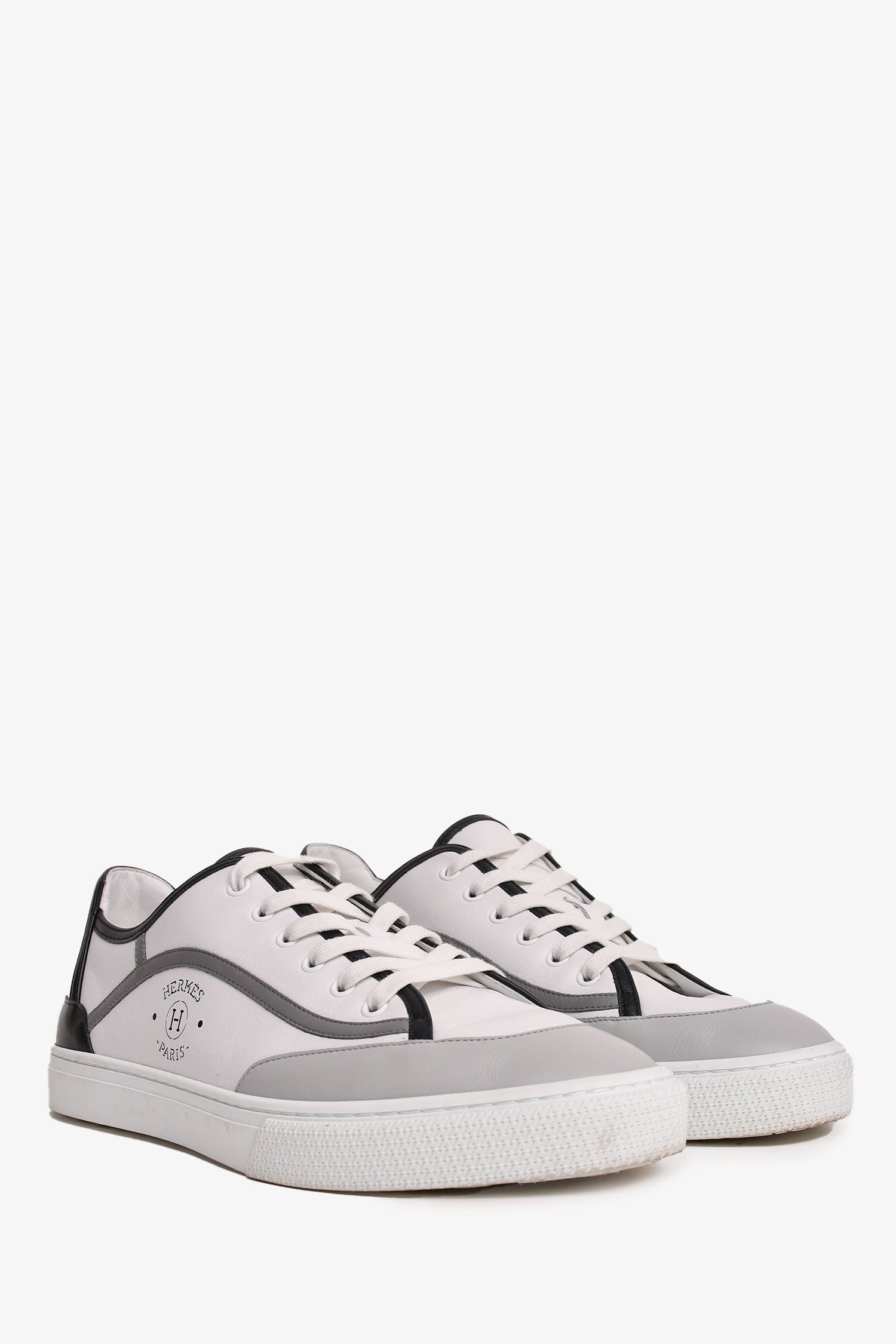 Hermès White/Grey Leather 'Get' Sneakers Size 44.5 Mens