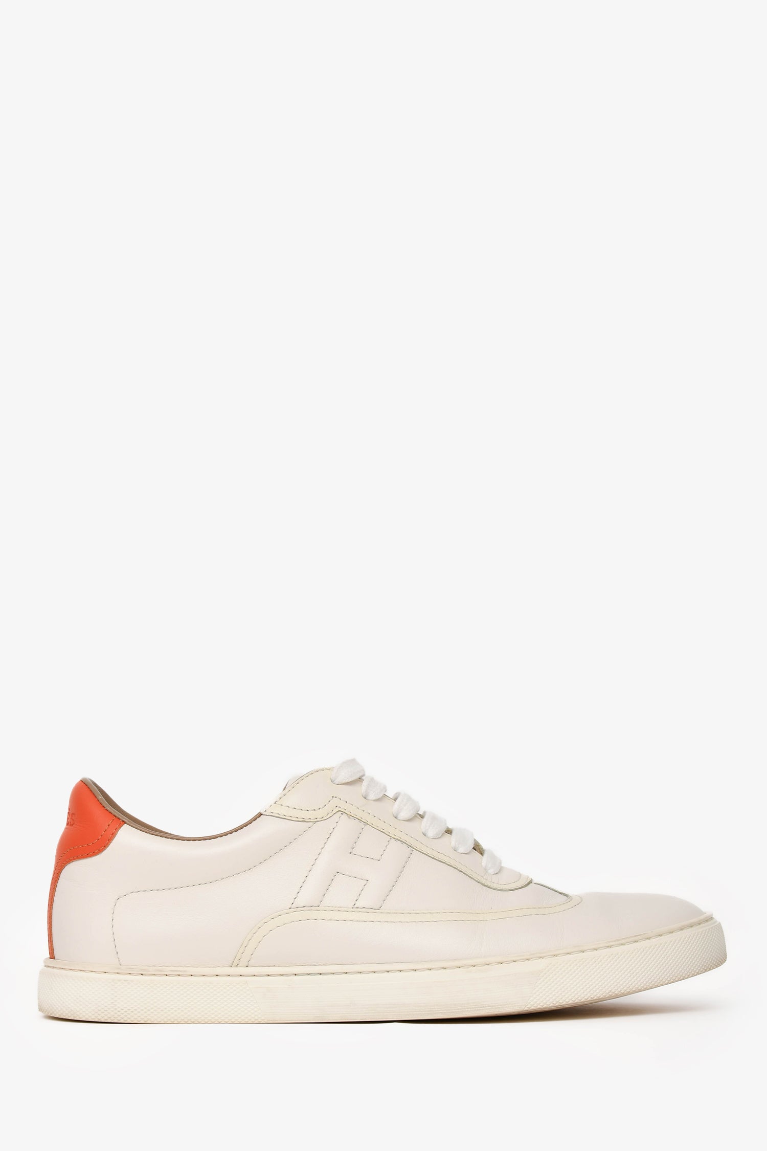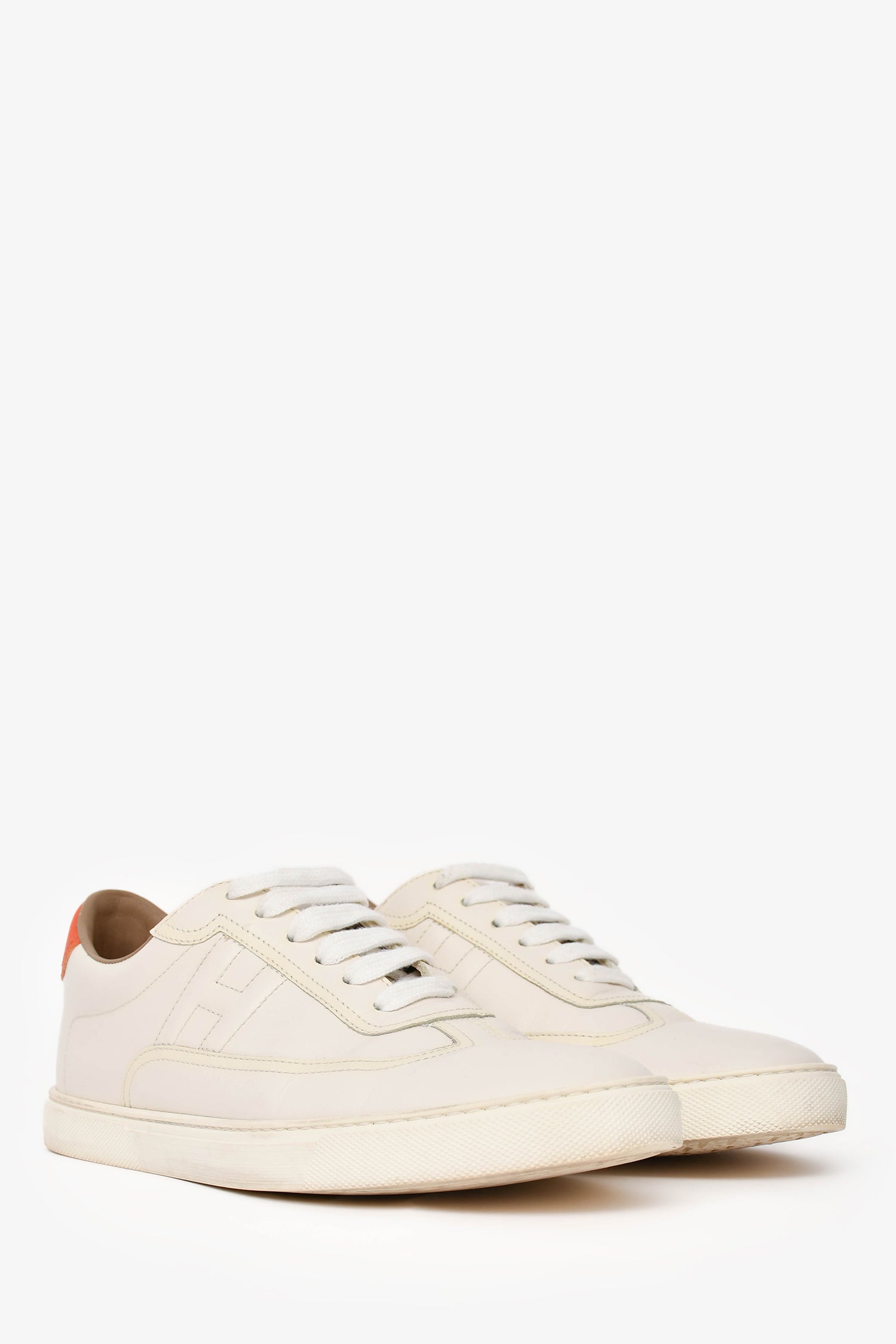 Hermès White Leather Low 'Quicker' Sneakers Size 39.5