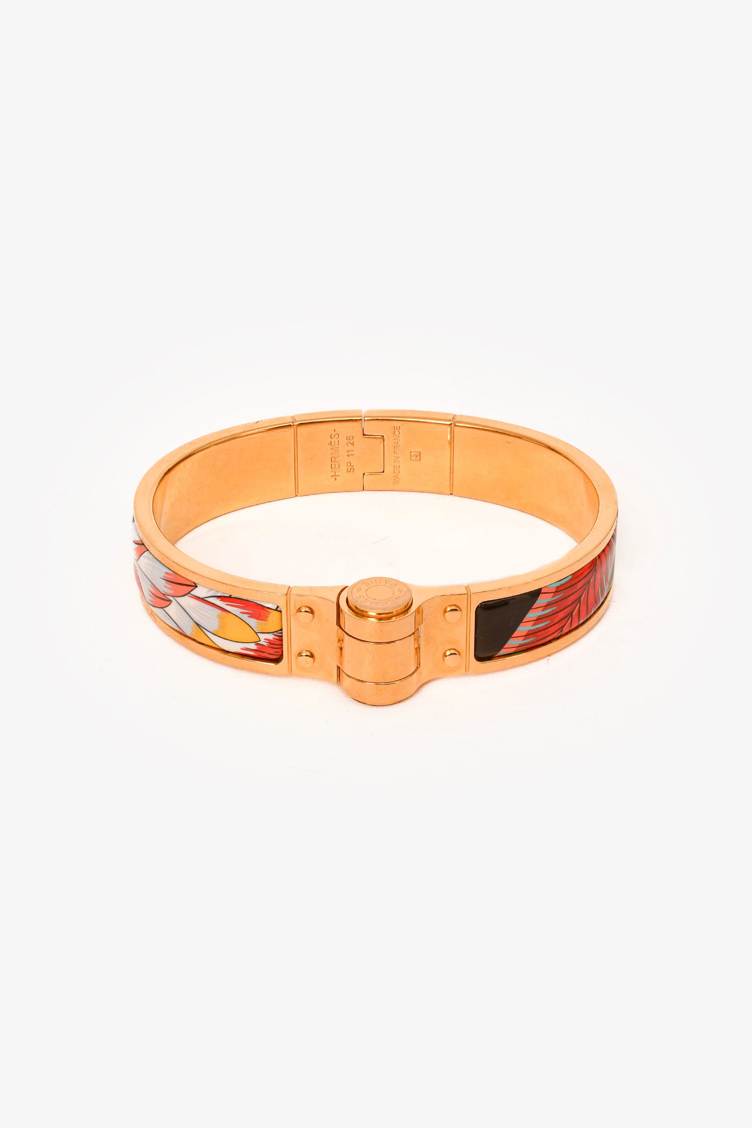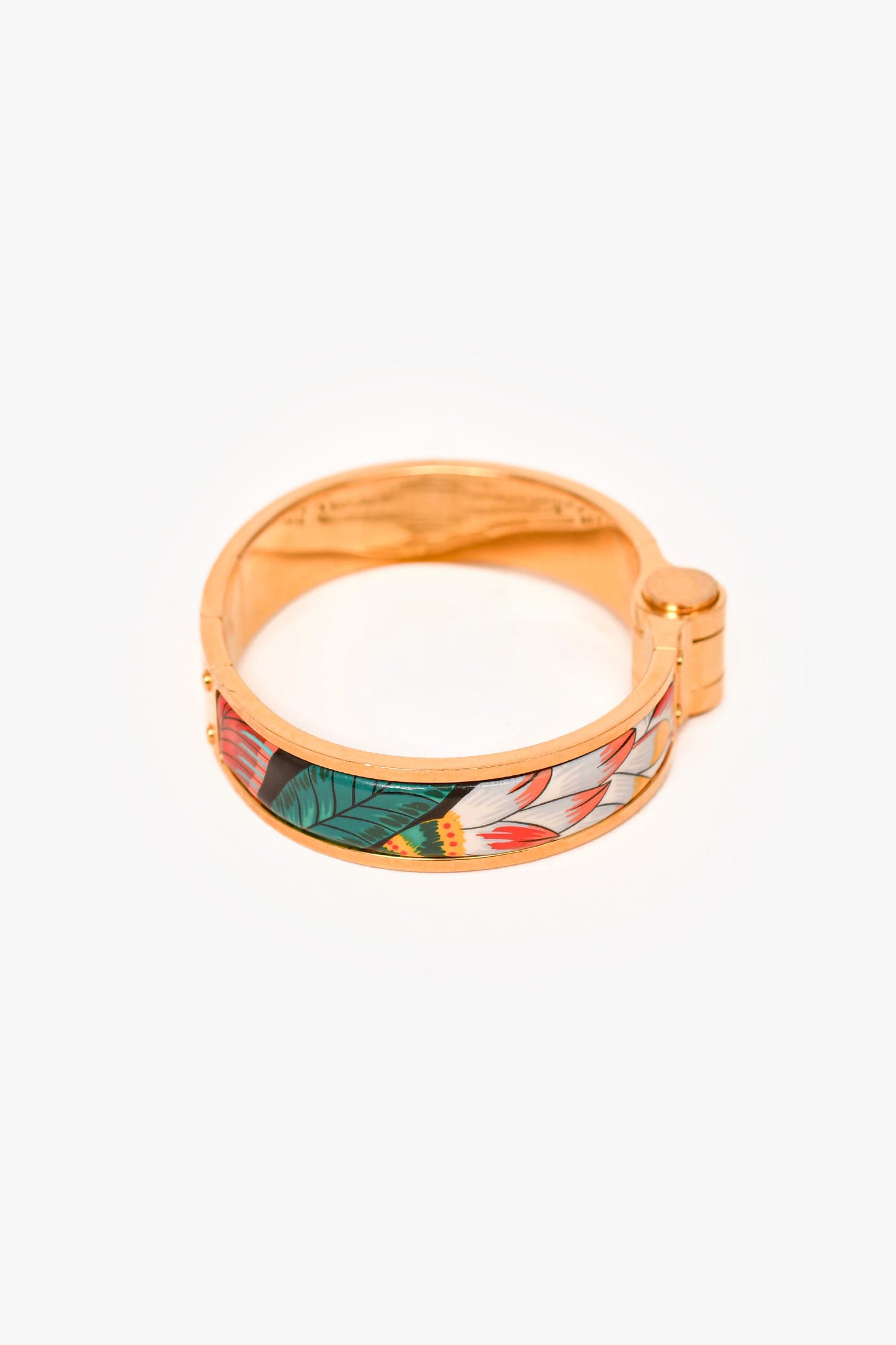 Hermès Yellow Gold Toned Printed Enamel Hinge Bracelet