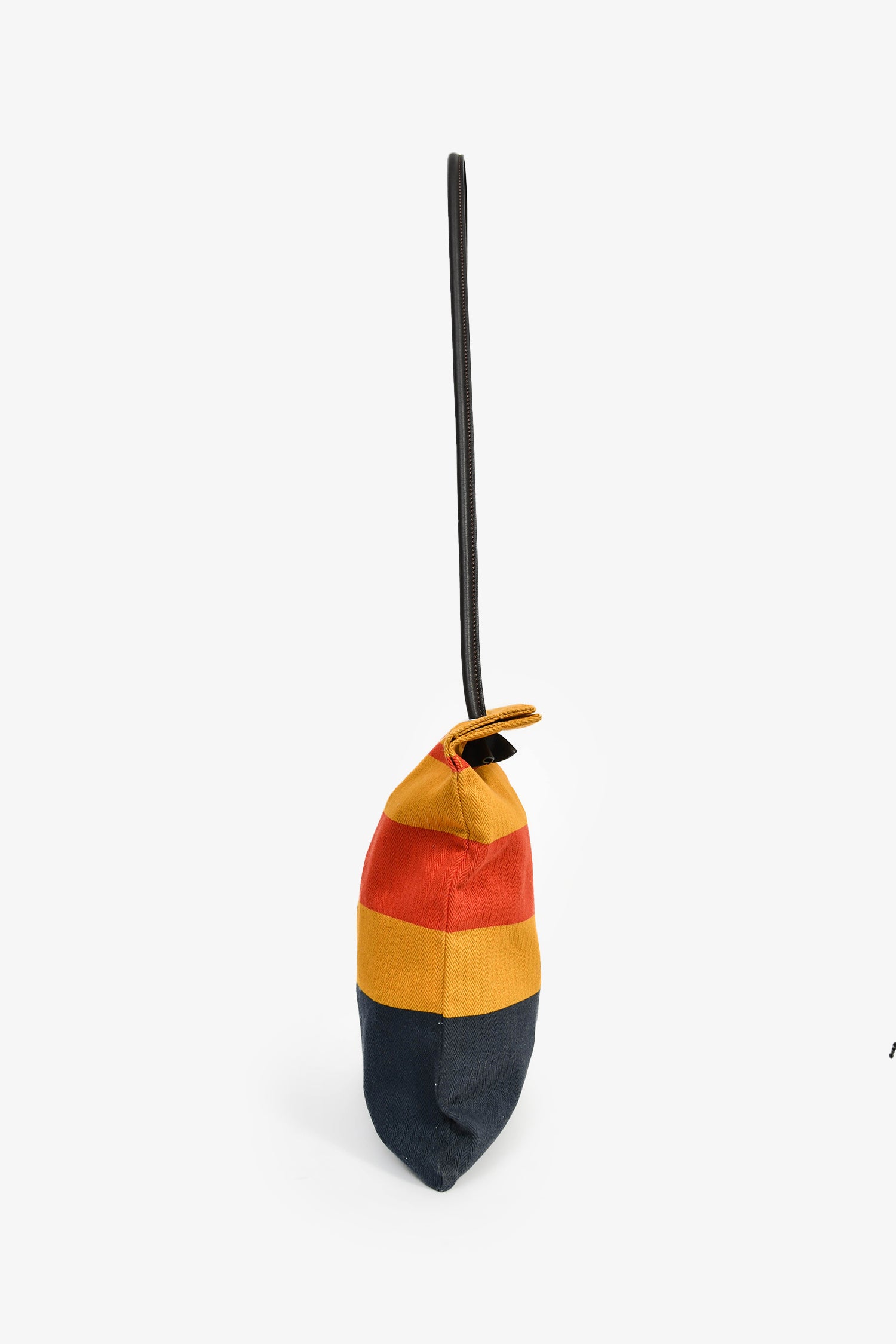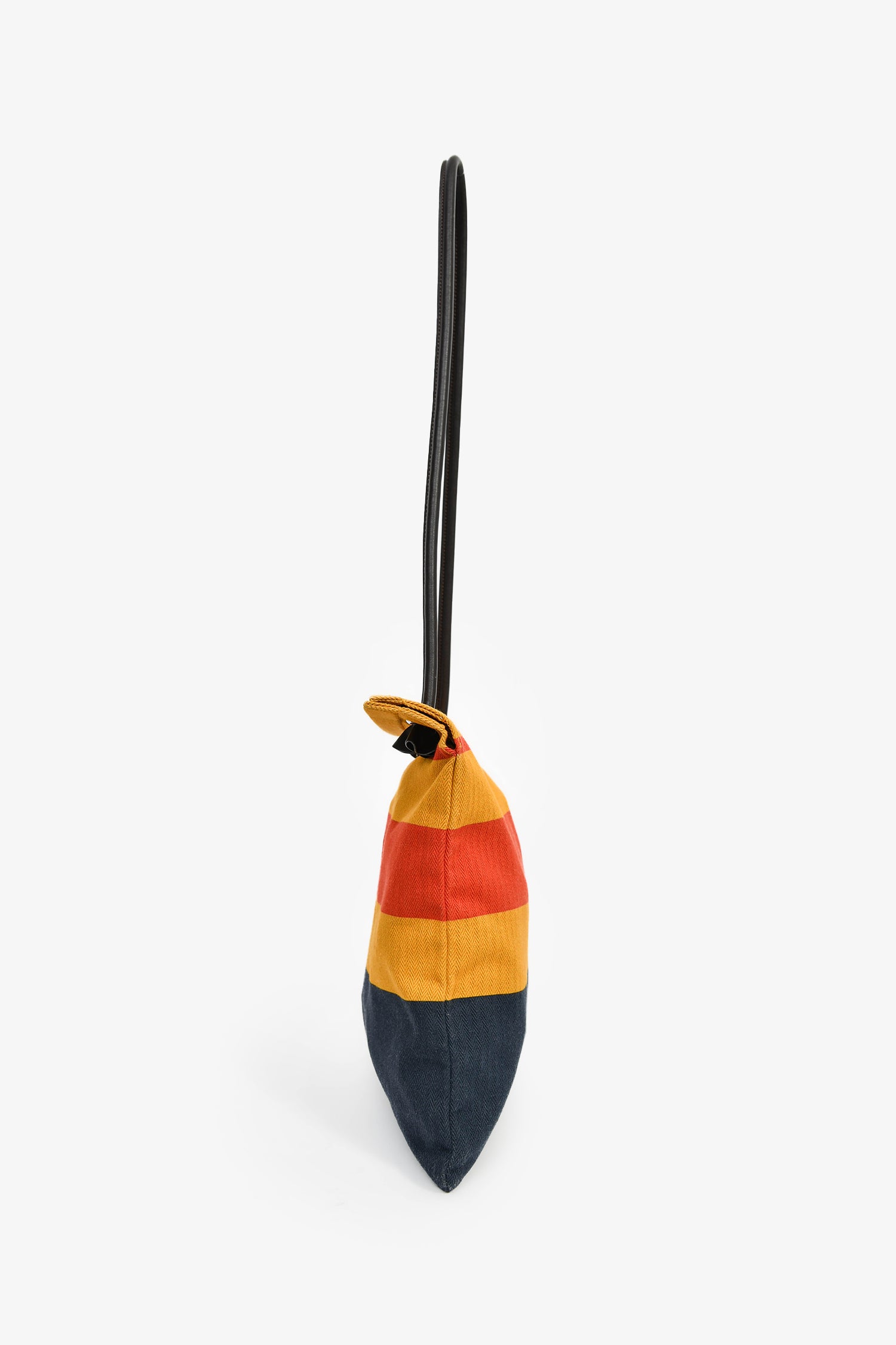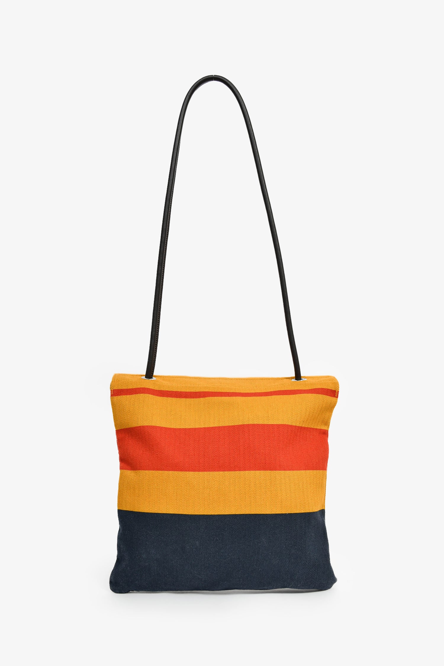 Refresh availabilityHermes Yellow Striped Canva 'Aline' Small Tote Bag. Silver-tone hardware. Single rolled leather strap. Canvas lined interior. Tonal stitching.