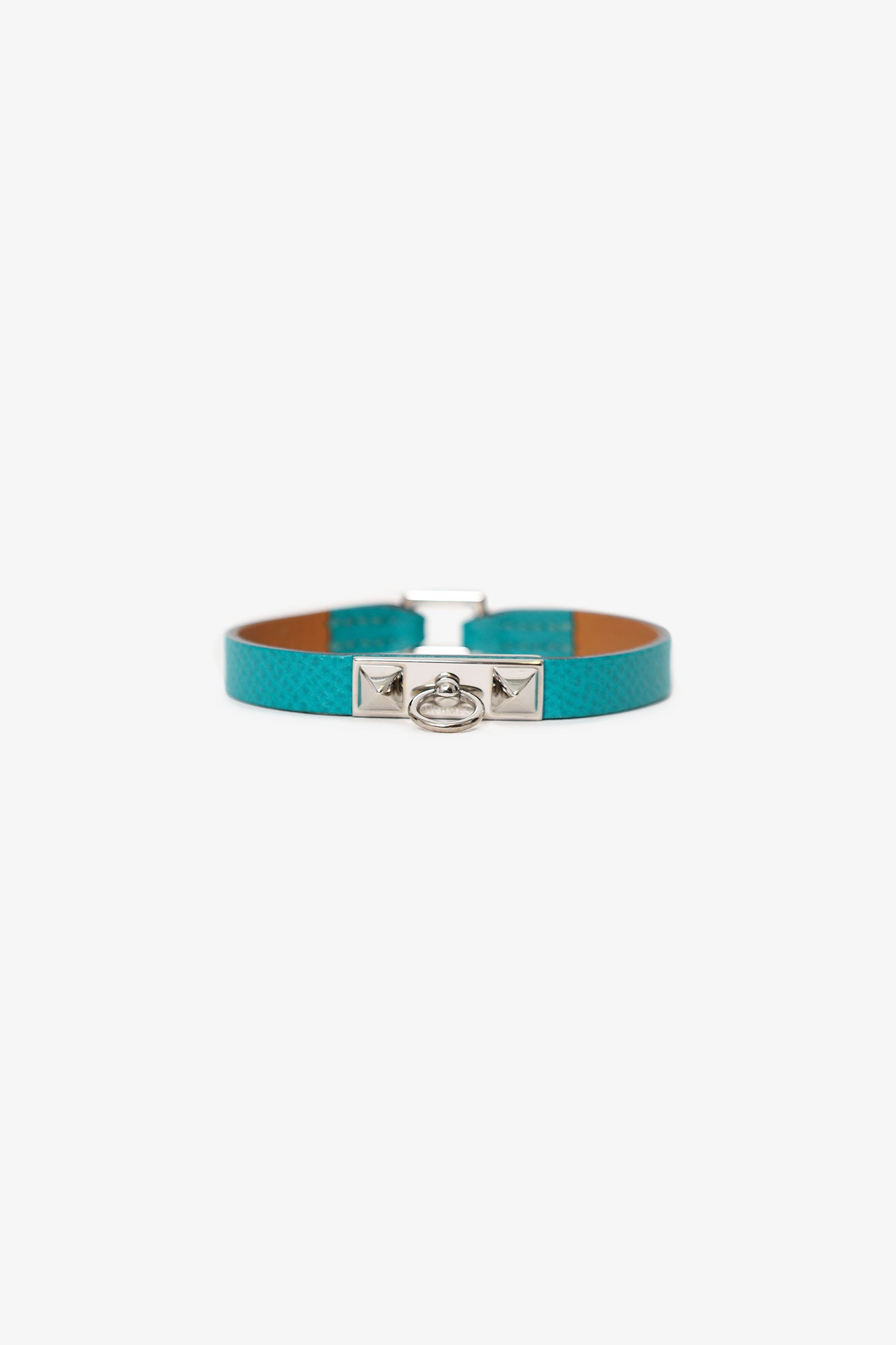 Refresh availabilityHermès Blue Leather Rivale Mini Bracelet. Push-lock closure. Silver-tone hardware.
