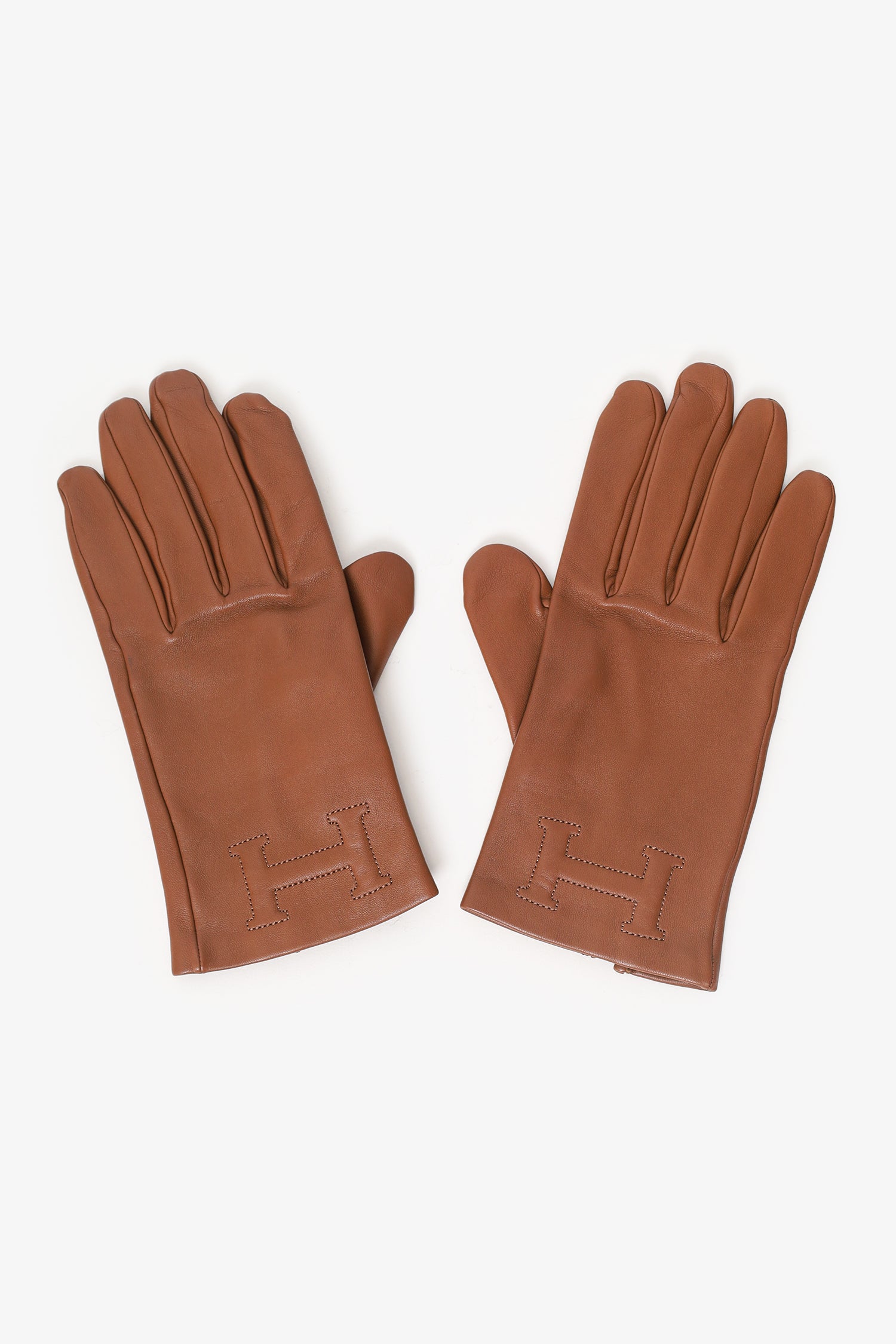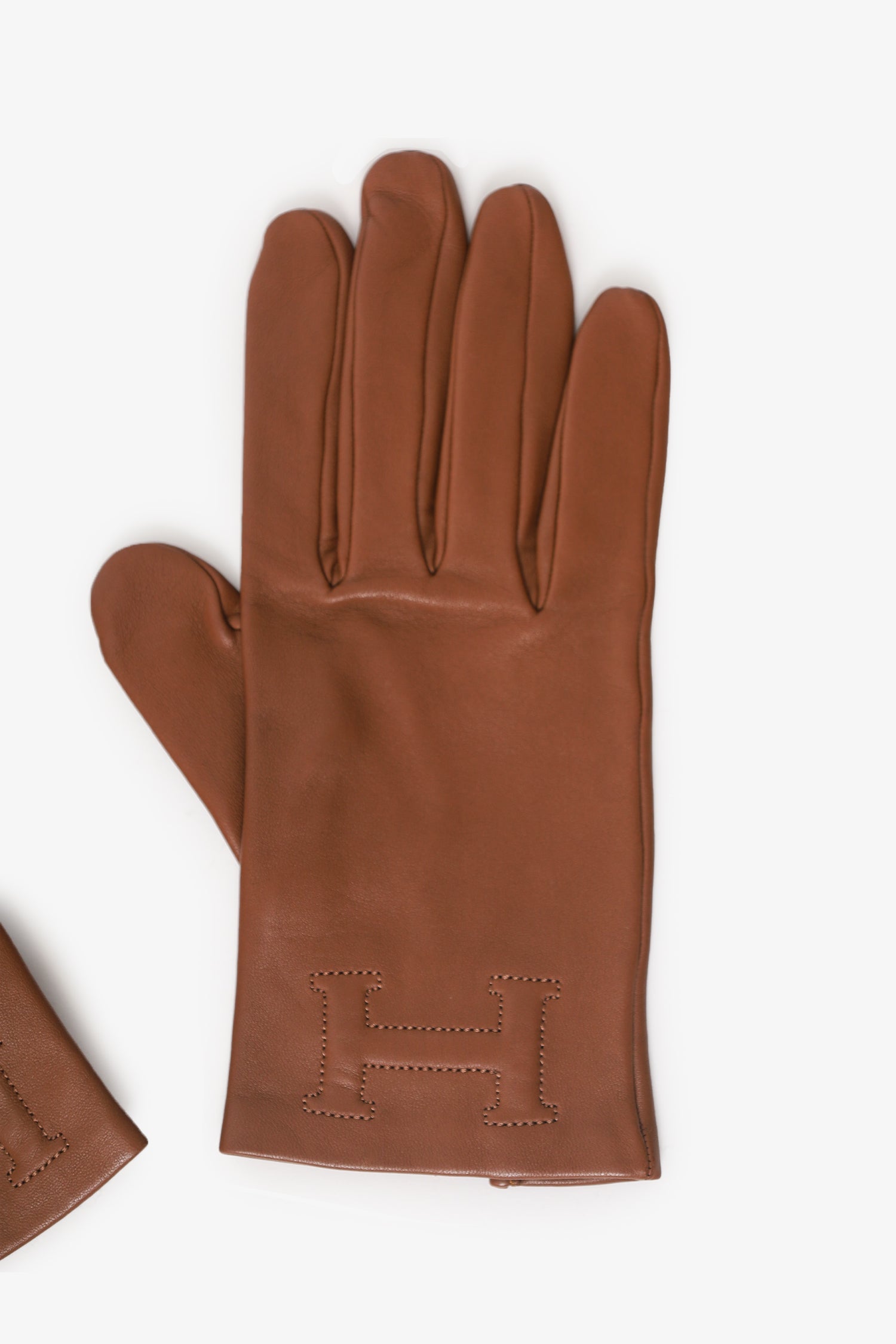 Hermès Brown Lambskin Bastille Gloves Size 7