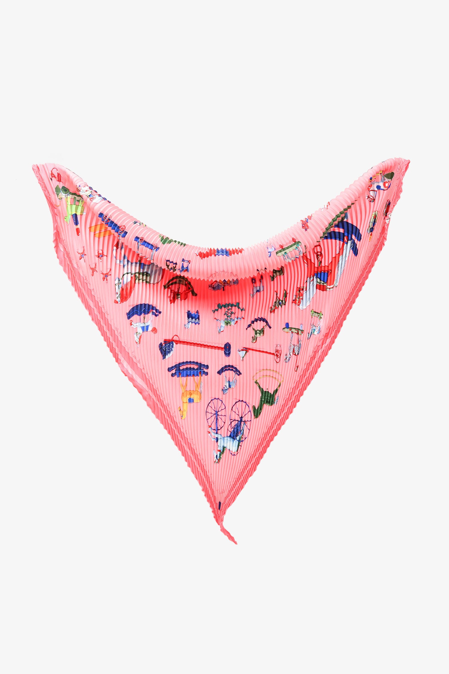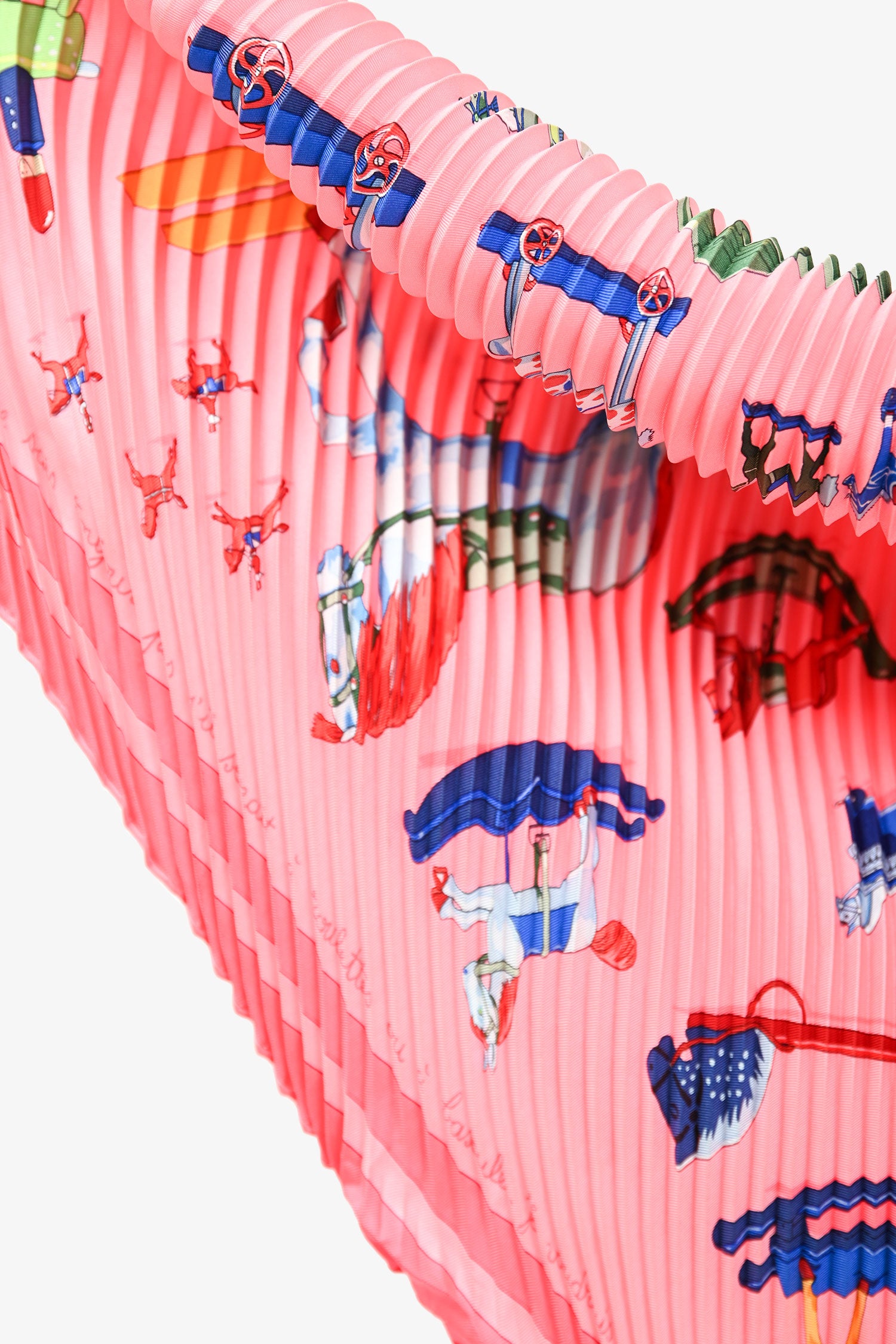 Hermès Pink Silk Twilly Au Bloc Pleated Scarf 90