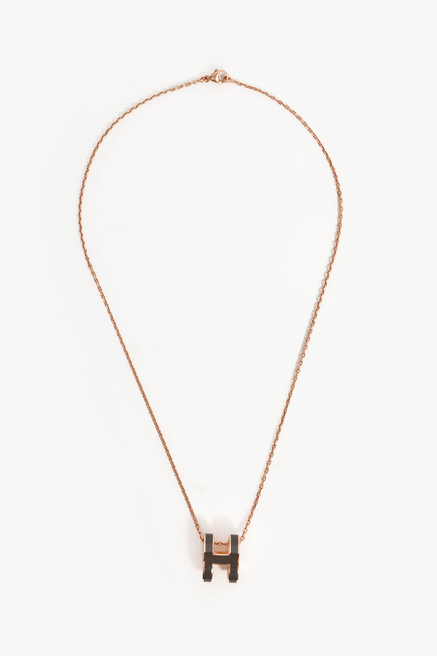 Refresh availabilityHermès Rose Gold Toned/Grey Enamel Pop H Necklace. Lobster clasp closure.