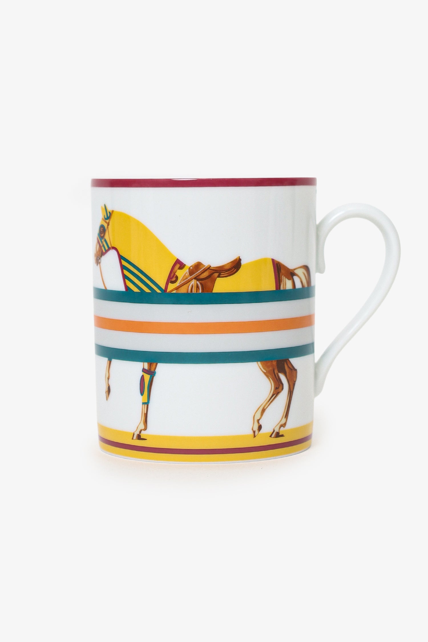 Refresh availabilityHermès Yellow "Cheval à la Couverture" Horse Print Mug. Contrast detailing.