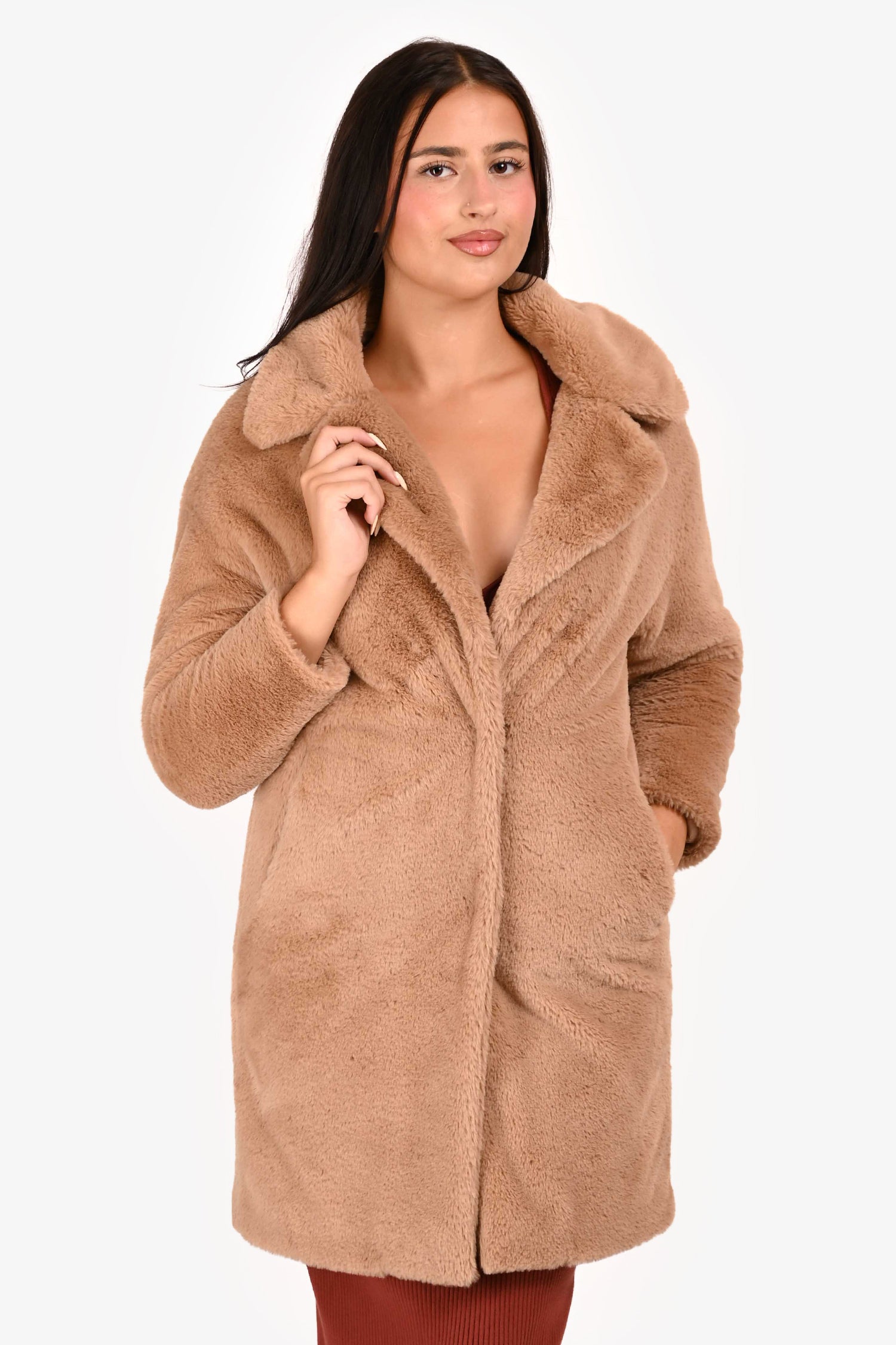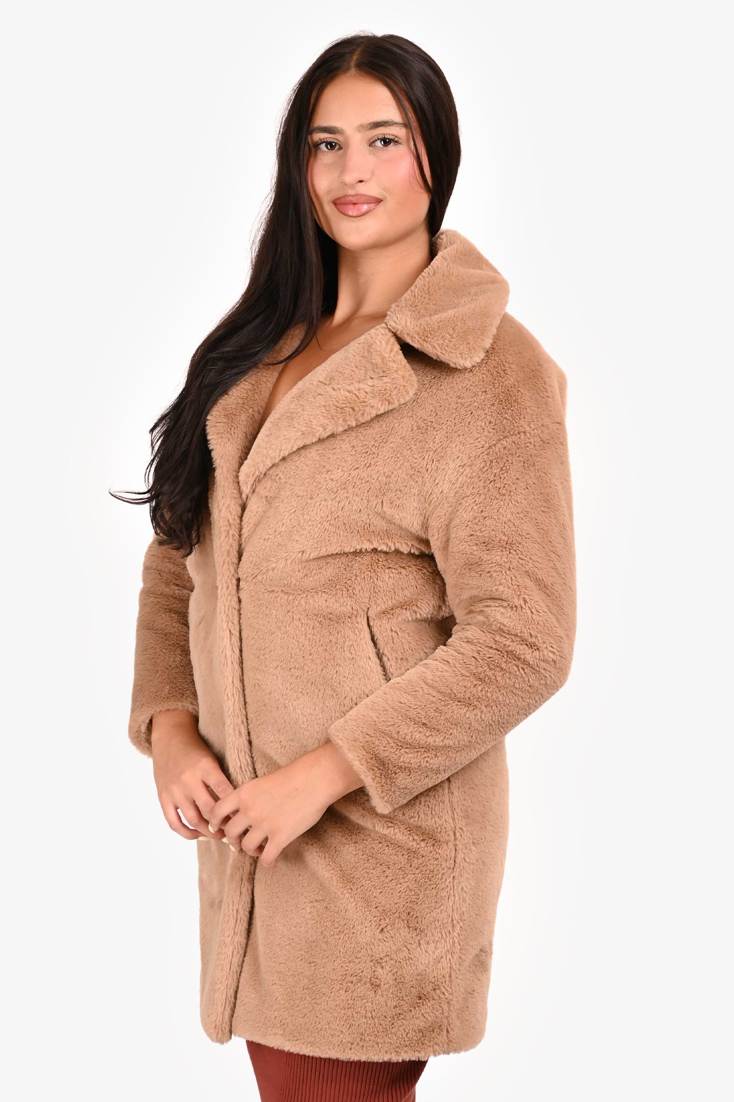 Refresh availabilityHerno Brown Faux Fur Button Down Long Jacket. Front pockets. Lined.