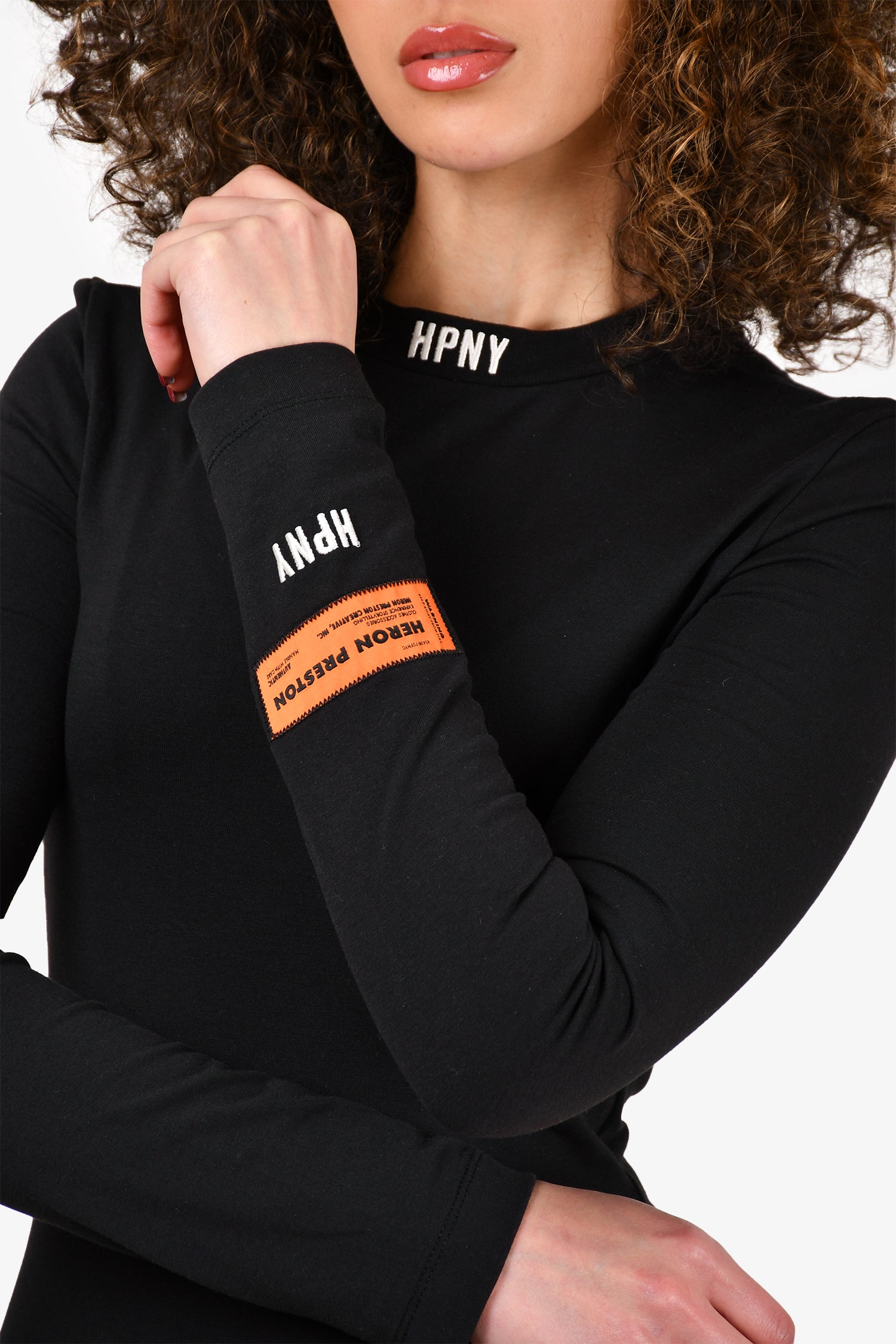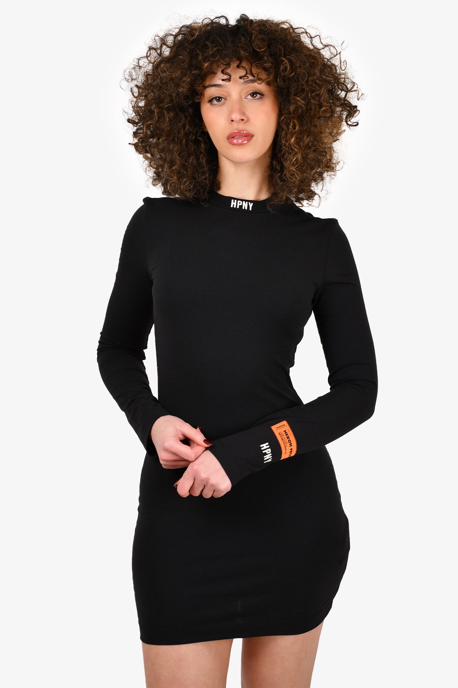 Refresh availabilityHeron Preston Black Cotton Blend 'HPNY' Mini Dress. Pull-on. Tonal stitching.
