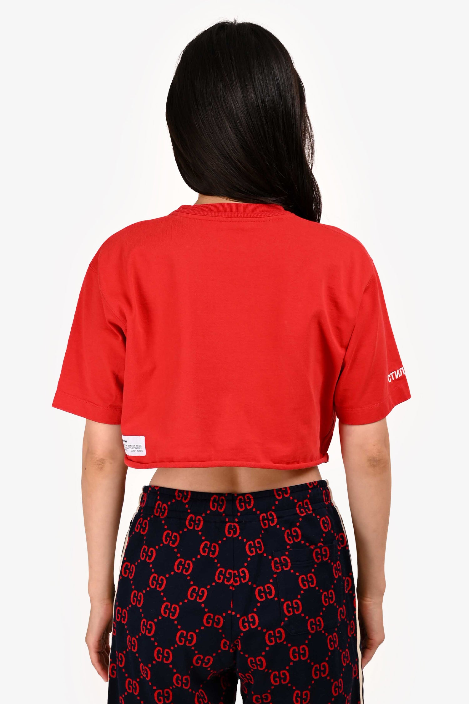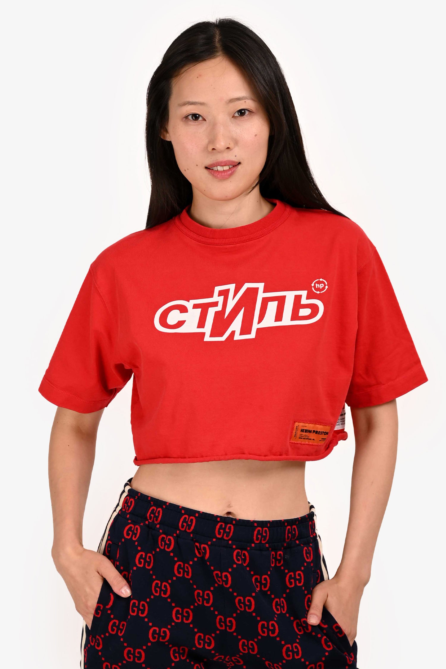 Refresh availabilityHeron Preston Red Printed Cropped T-shirt. Round neck. Pull-on.