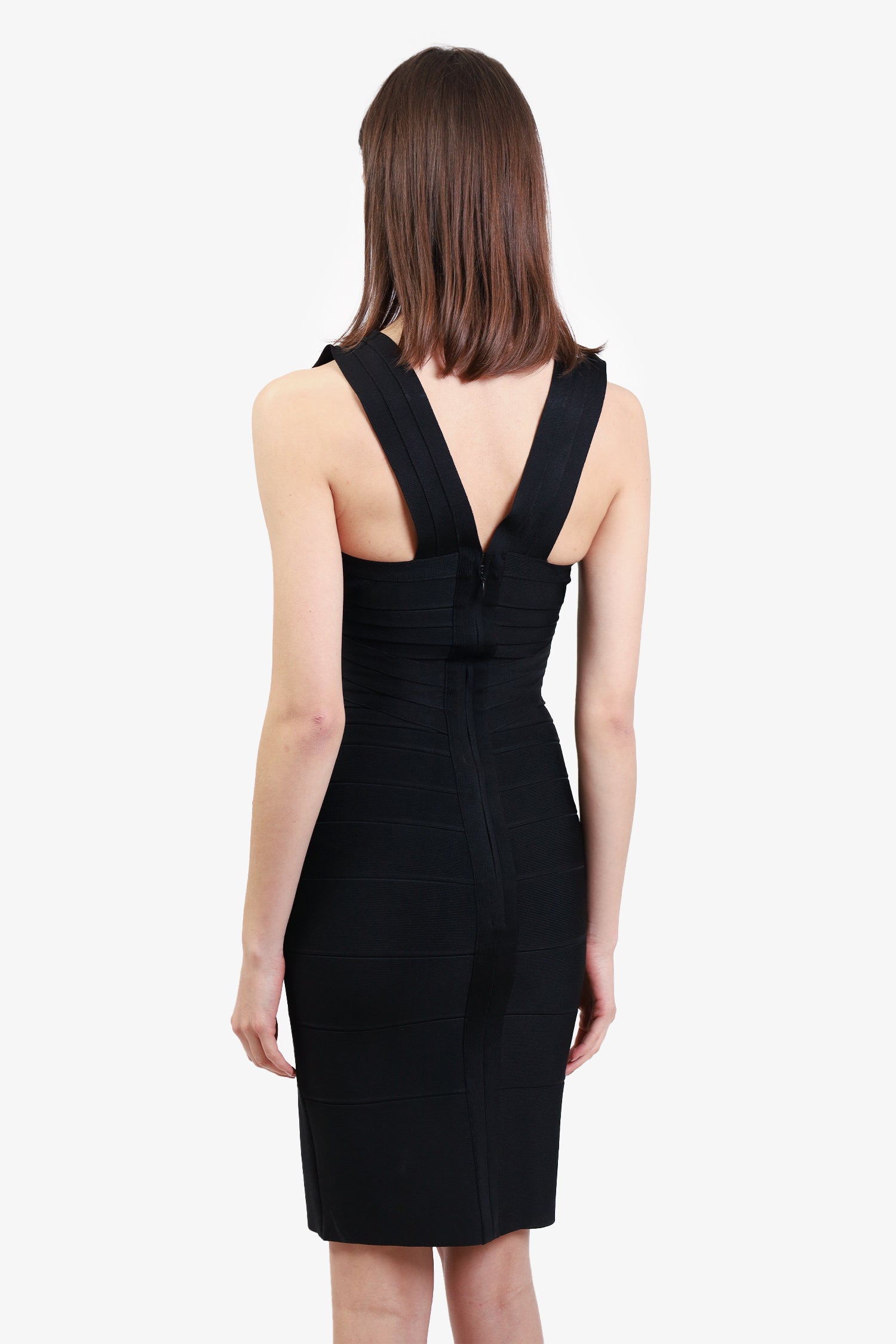 Refresh availabilityHerve Leger Black Strappy Bodycon Bandage Mini Dress. Sweet-heart neckline. Rear zip closure.