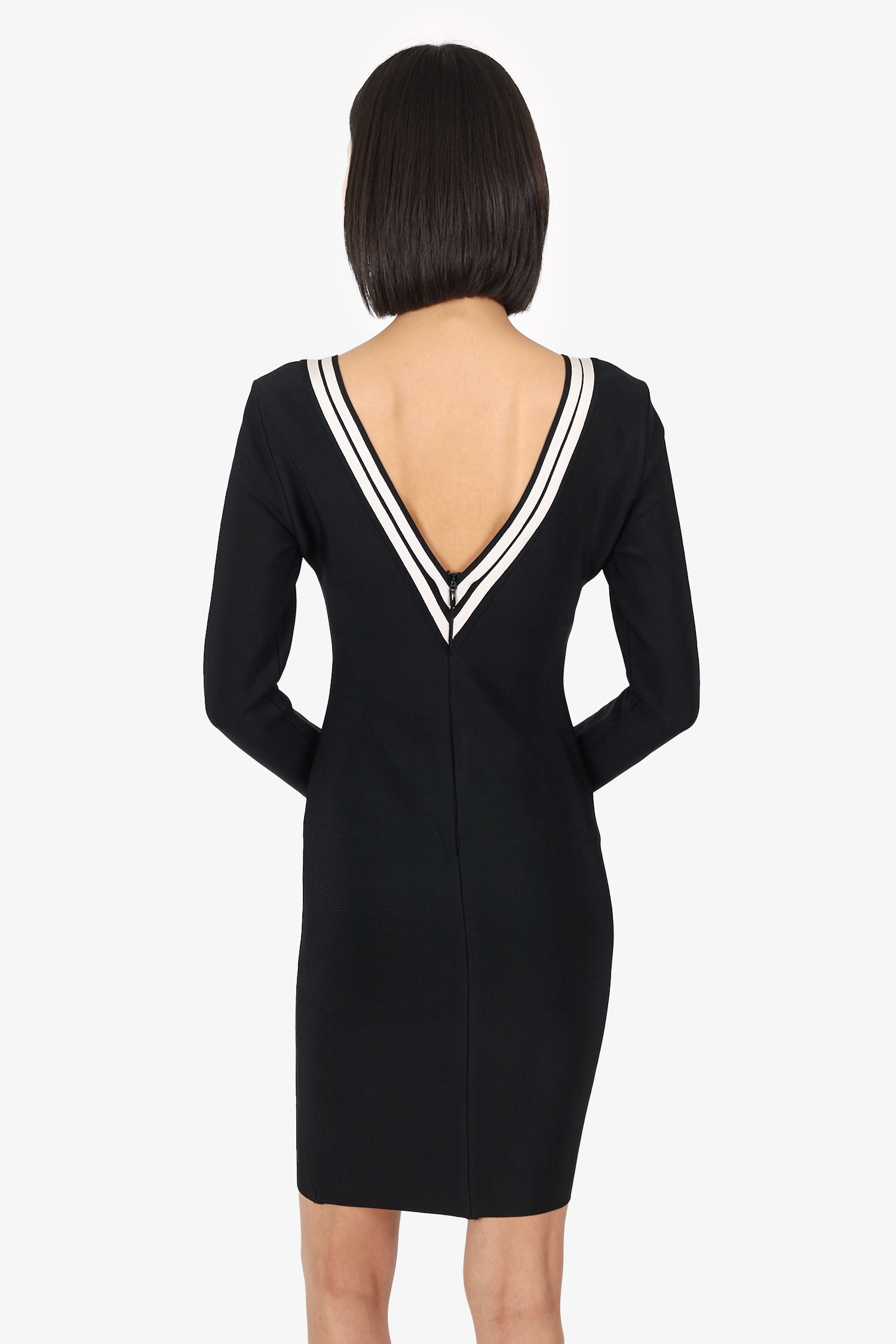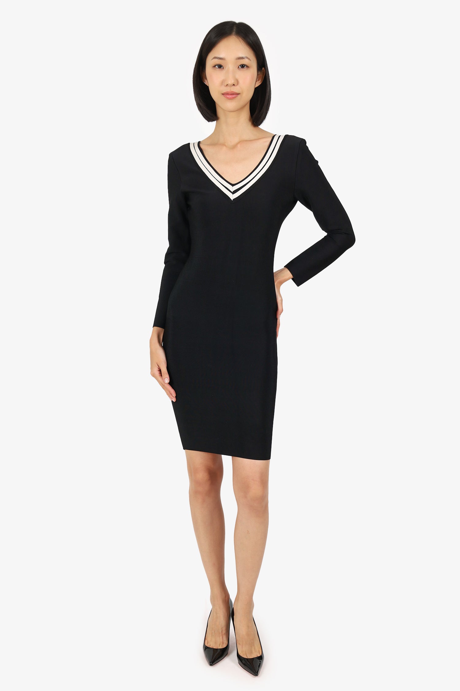 Refresh availabilityHerve Leger Black/White V-Neck Bodycon Midi Dress. Slip-on. Plunge V-neckline. Rear zip closure. Tonal stitching.