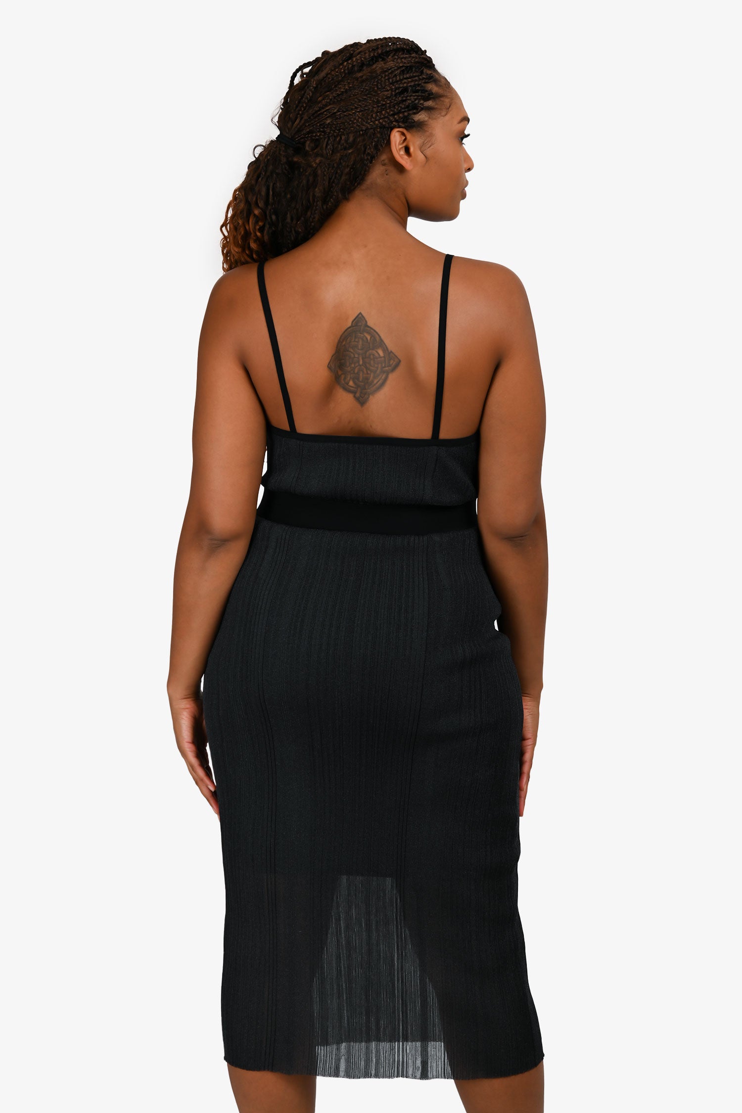 Refresh availabilityHervé Léger Grey/Black Metallic Fitted Midi Dress. Pull-on. Plunge neckline. Non-adjustable shoulder straps. Side zip closure with clasp. Tonal stitching.