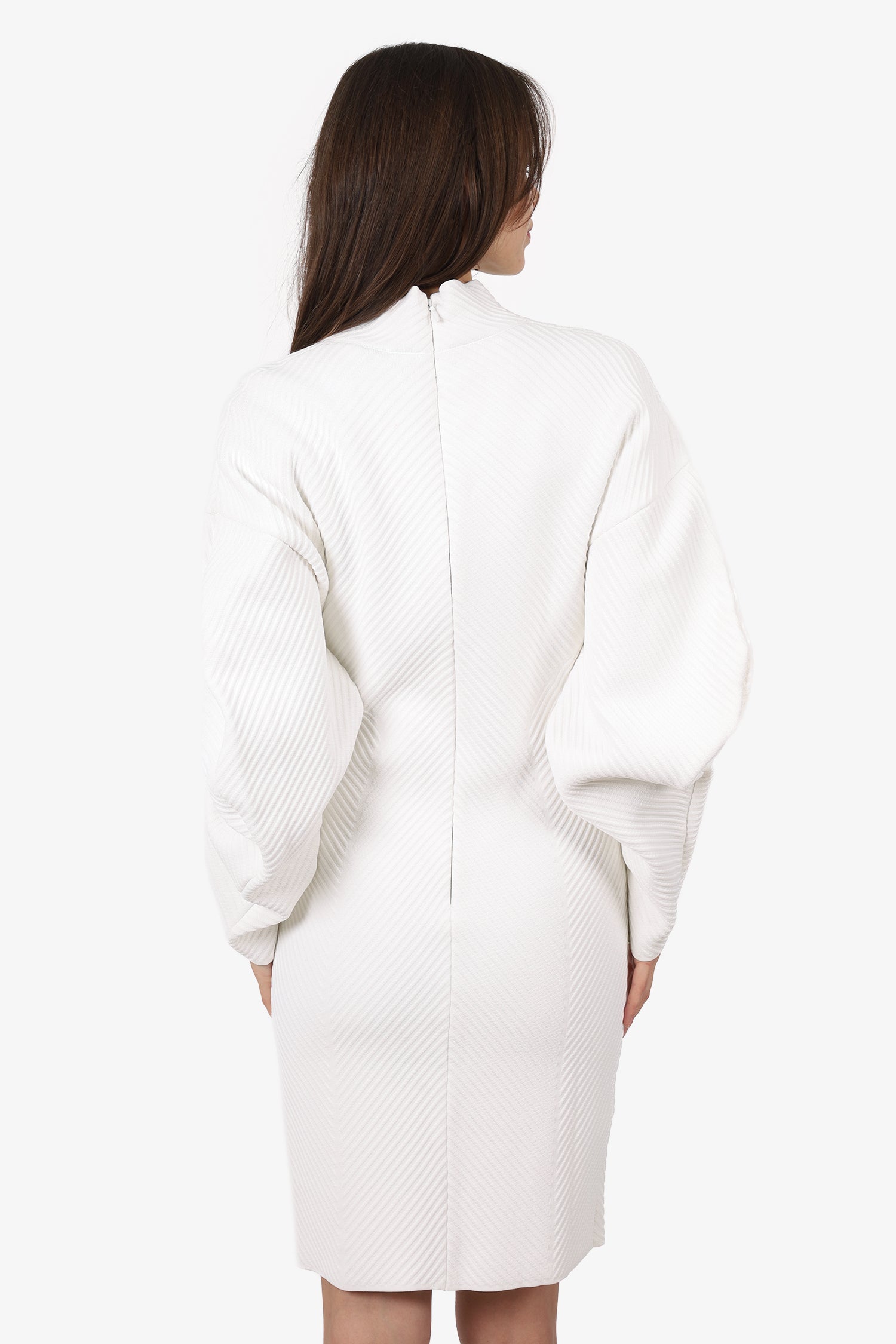 Refresh availabilityHerve Leger White Long Dress. Pull-on. High neckline. Rear zip with hook-up closure. Tonal stitching.