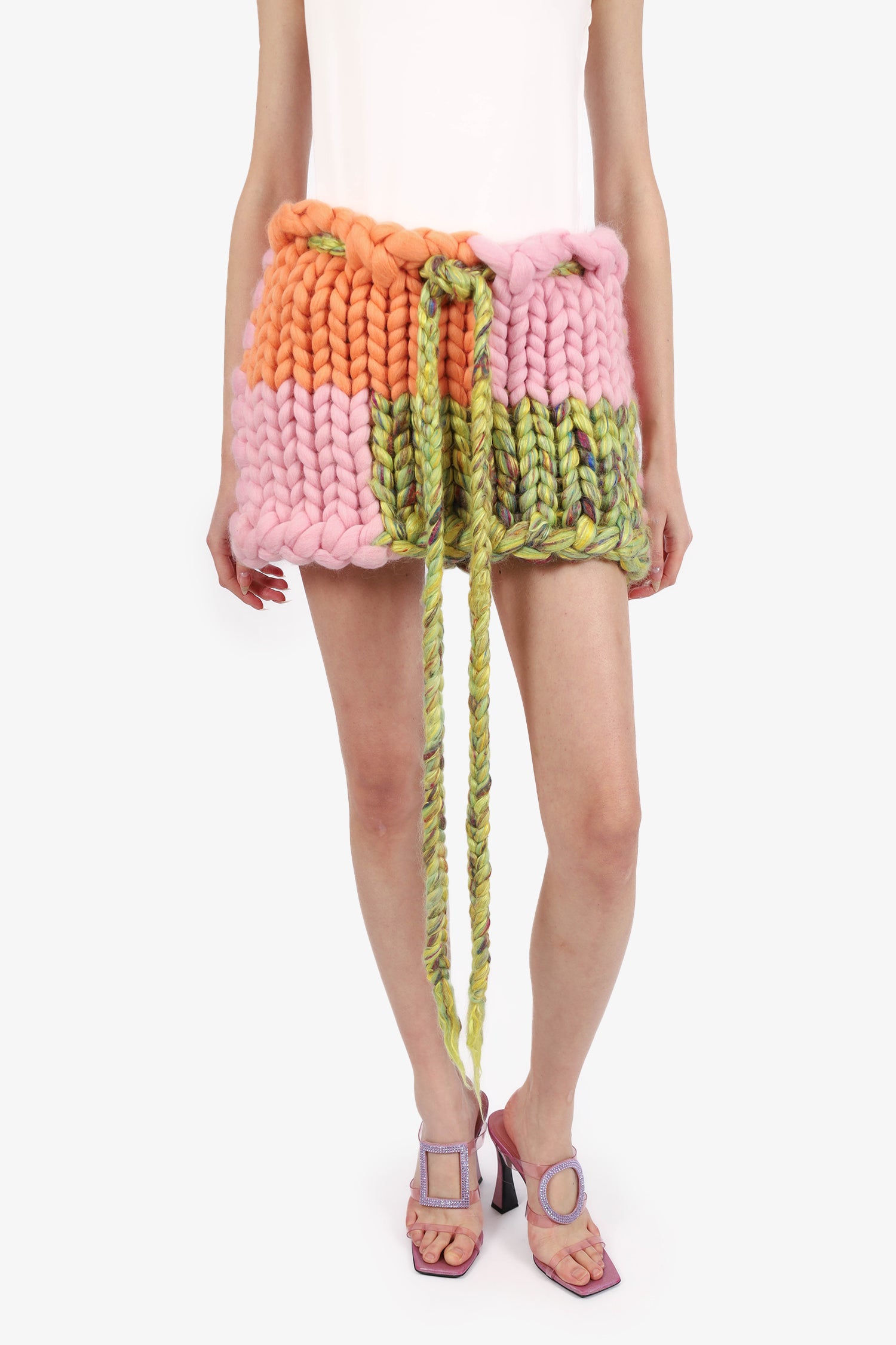 Refresh availabilityHope Macaulay Pink/Green Merino Wool Chunky Knit Skirt. Pull-on. Front tie closure. Tonal stitching.