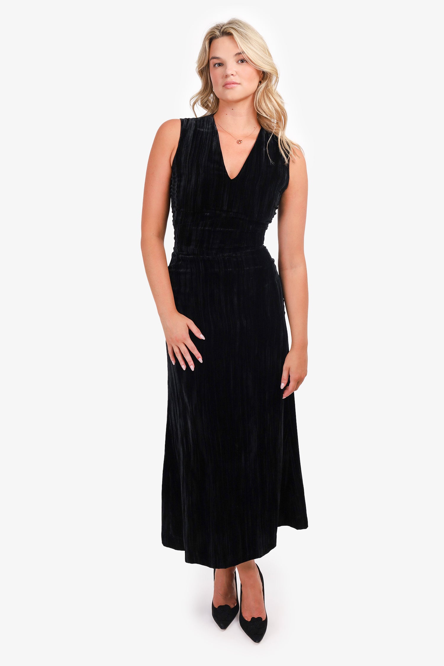 Refresh availabilityHorses Black Velvet Sleeveless Maxi Dress. V-neckline. Back zip closure. Lined. Tonal stitching.