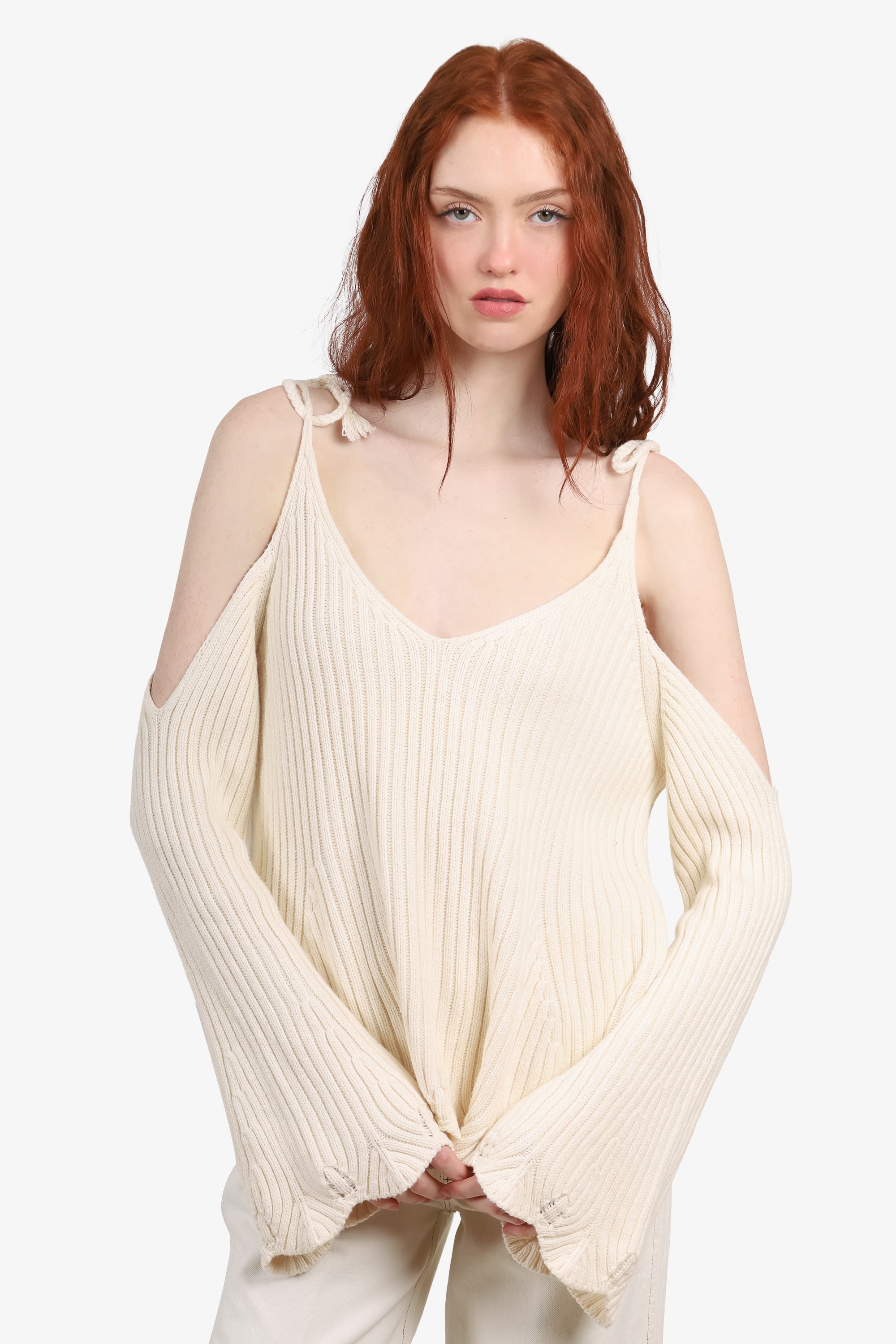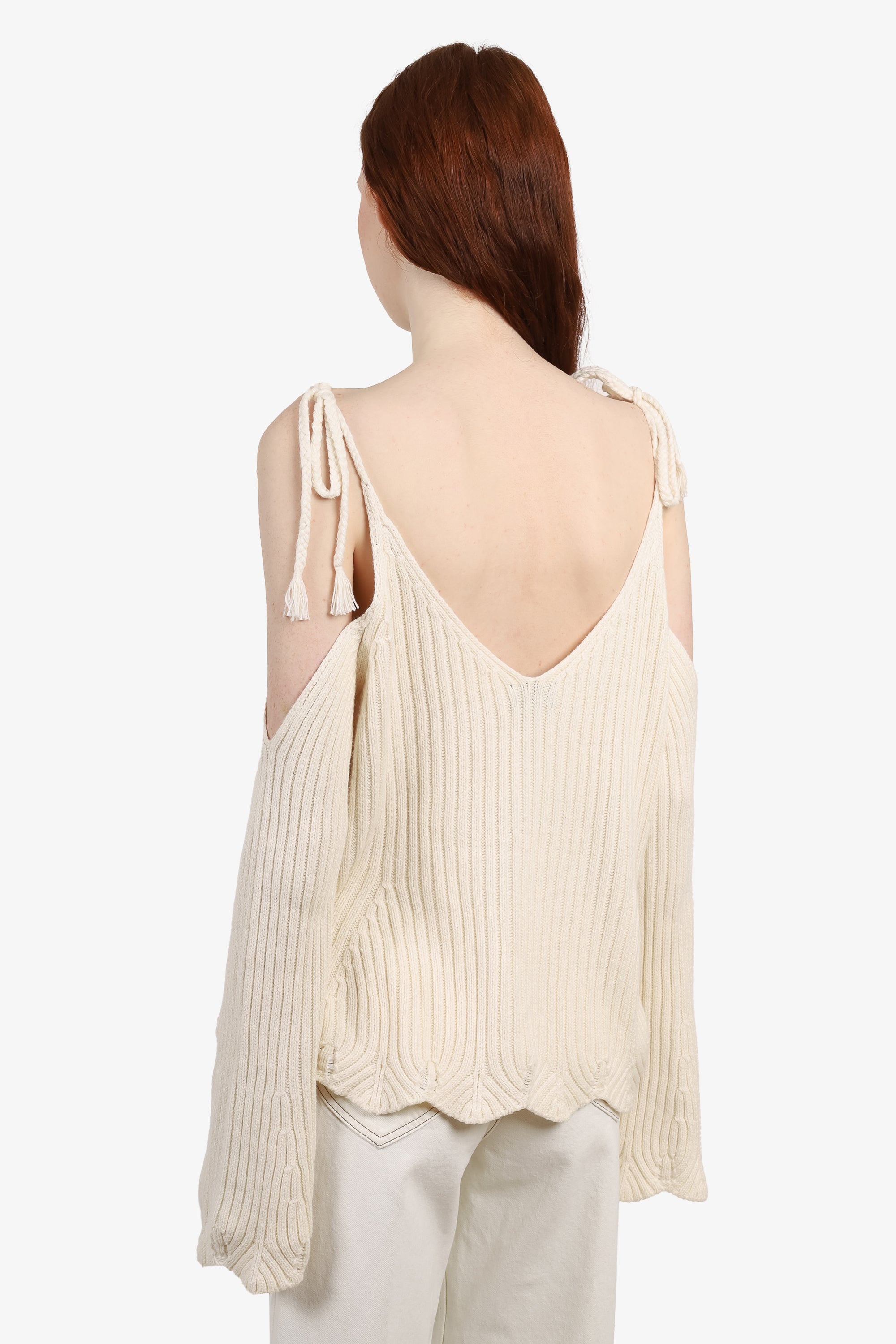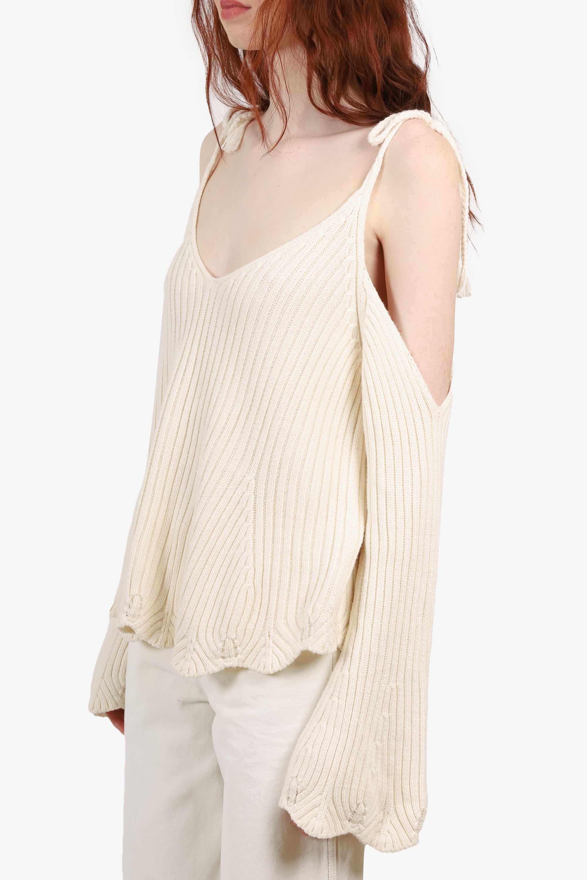 Refresh availabilityIntermix Cream Ribbed Knit Tied Top. Pull over. Unlined. Tonal stitching.