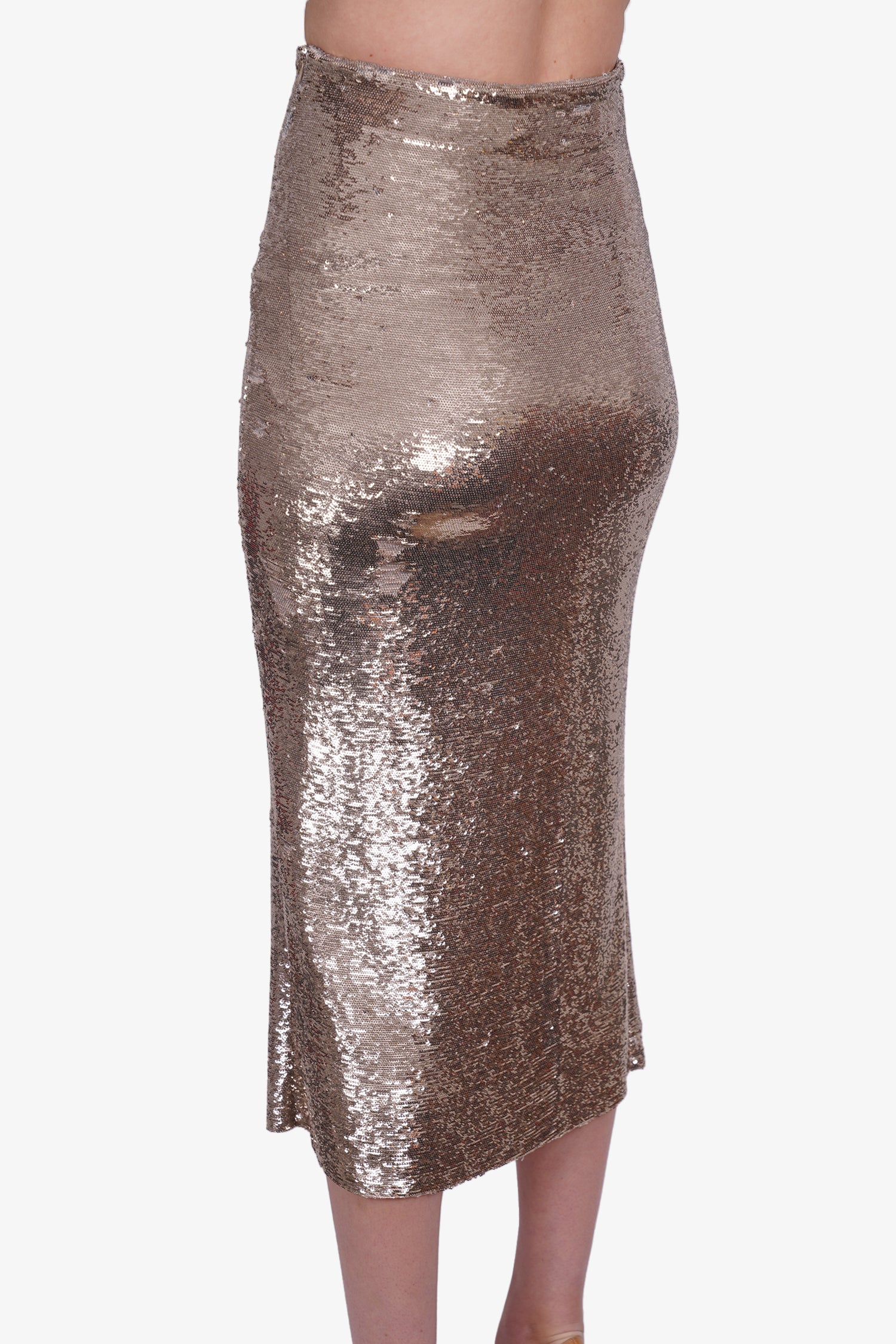 Refresh availabilityIRO Gold Metallic Sequin Skirt. Side zip closure. Lined. Tonal stitching.