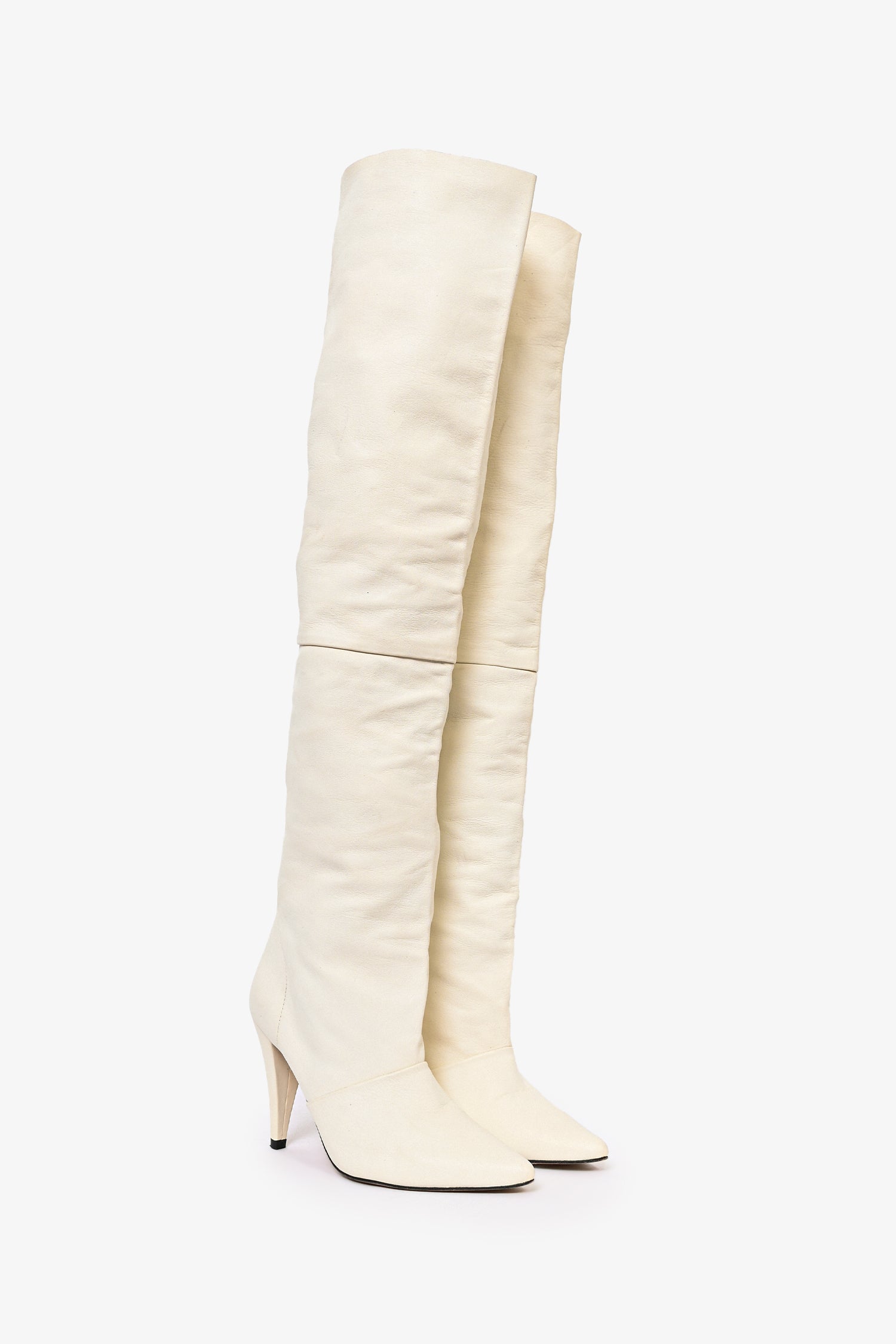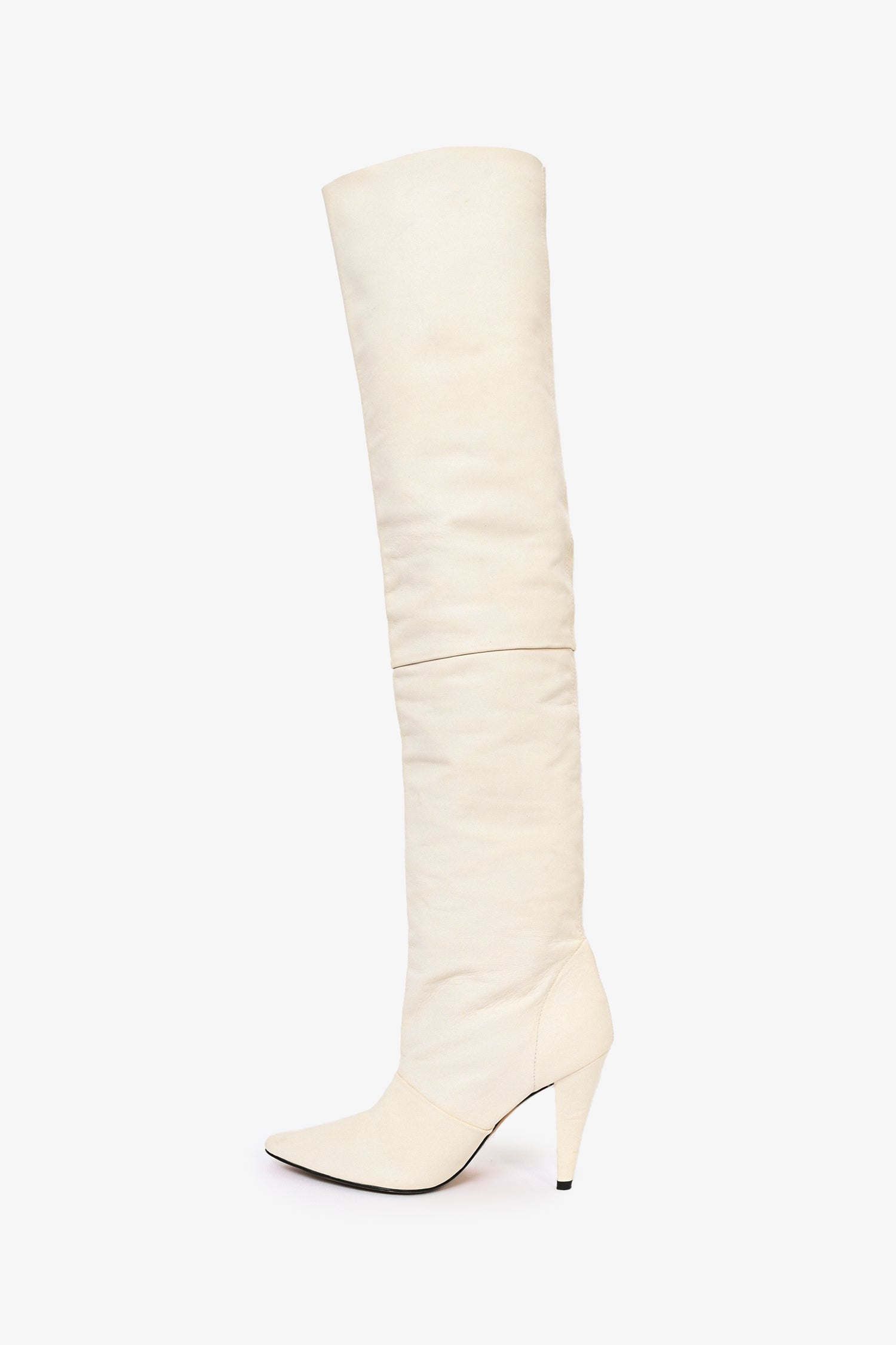 Refresh availabilityIRO White Leather/Silver Knee High Boots. Pointed toe front. Tonal stitching.