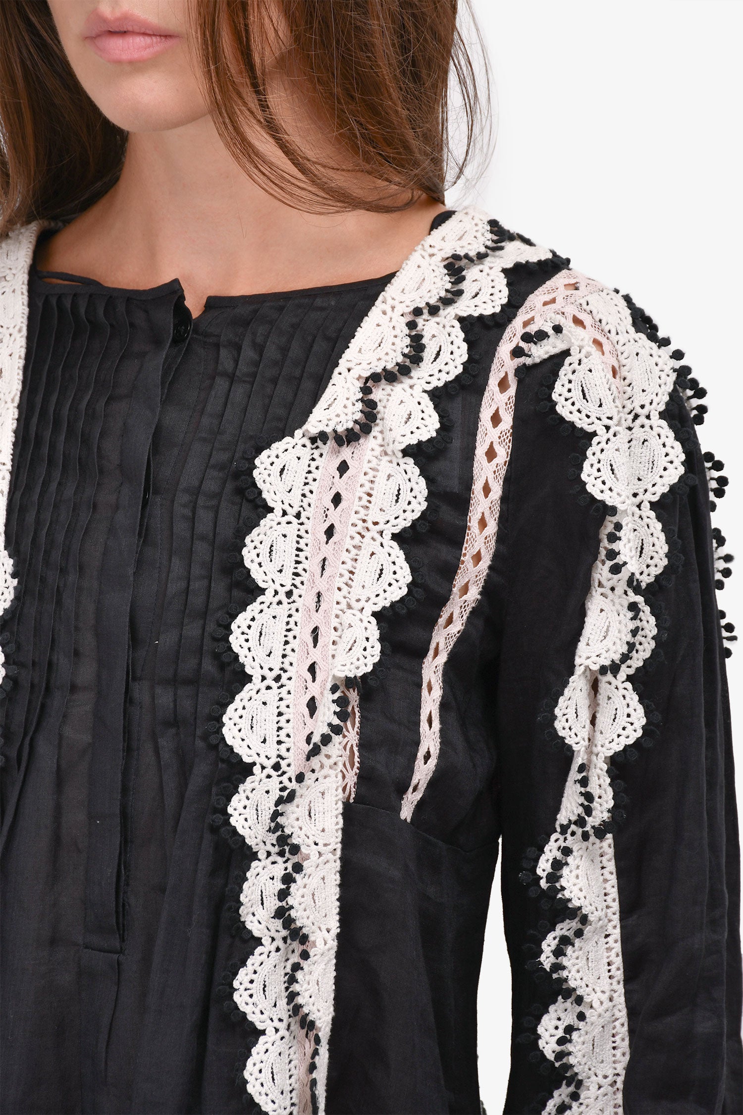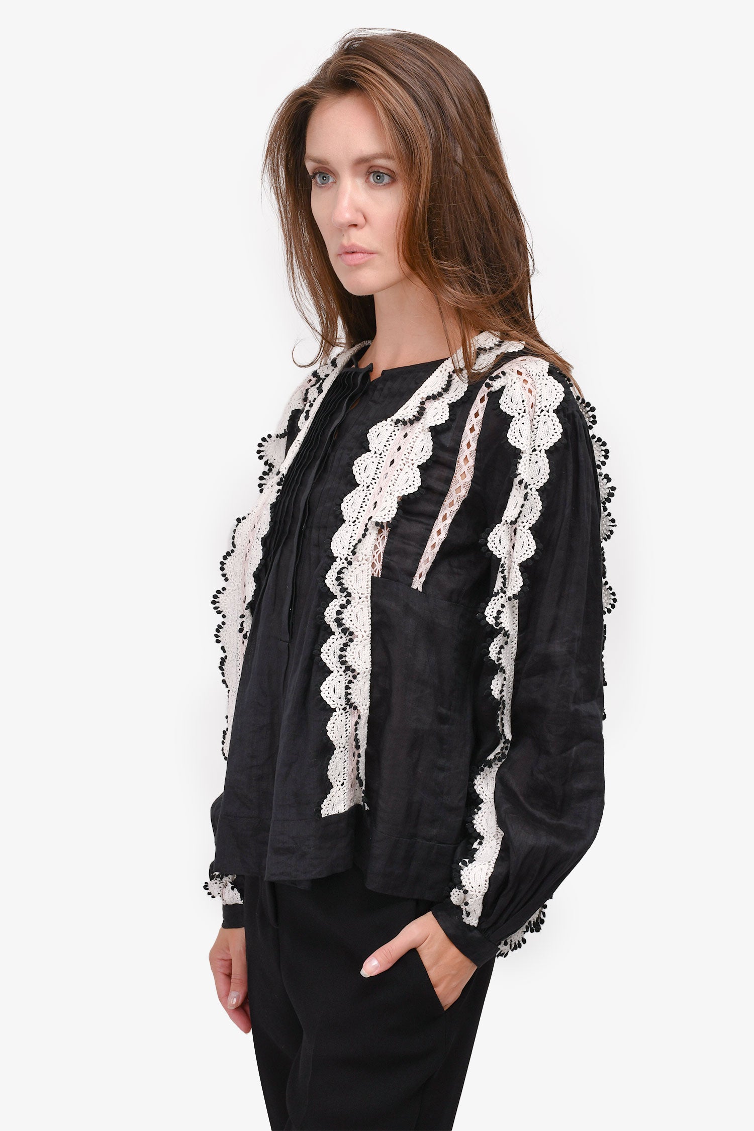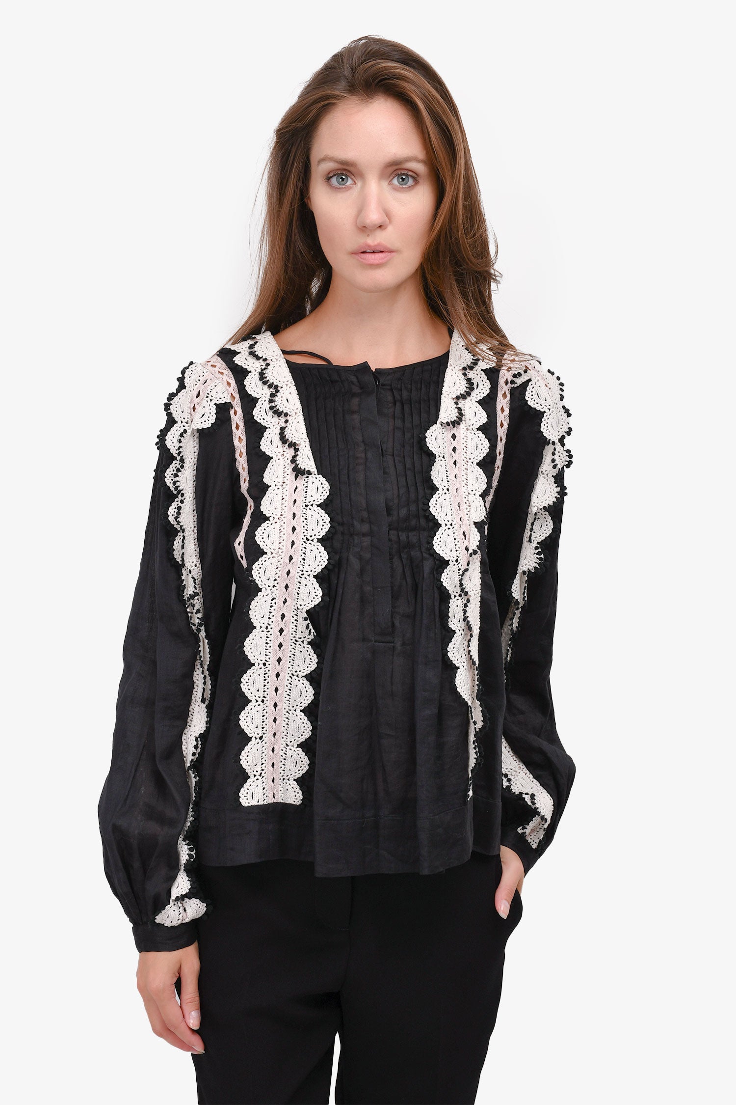 Isabel Marant Black Cotton/Lace Trim Blouse Size 38