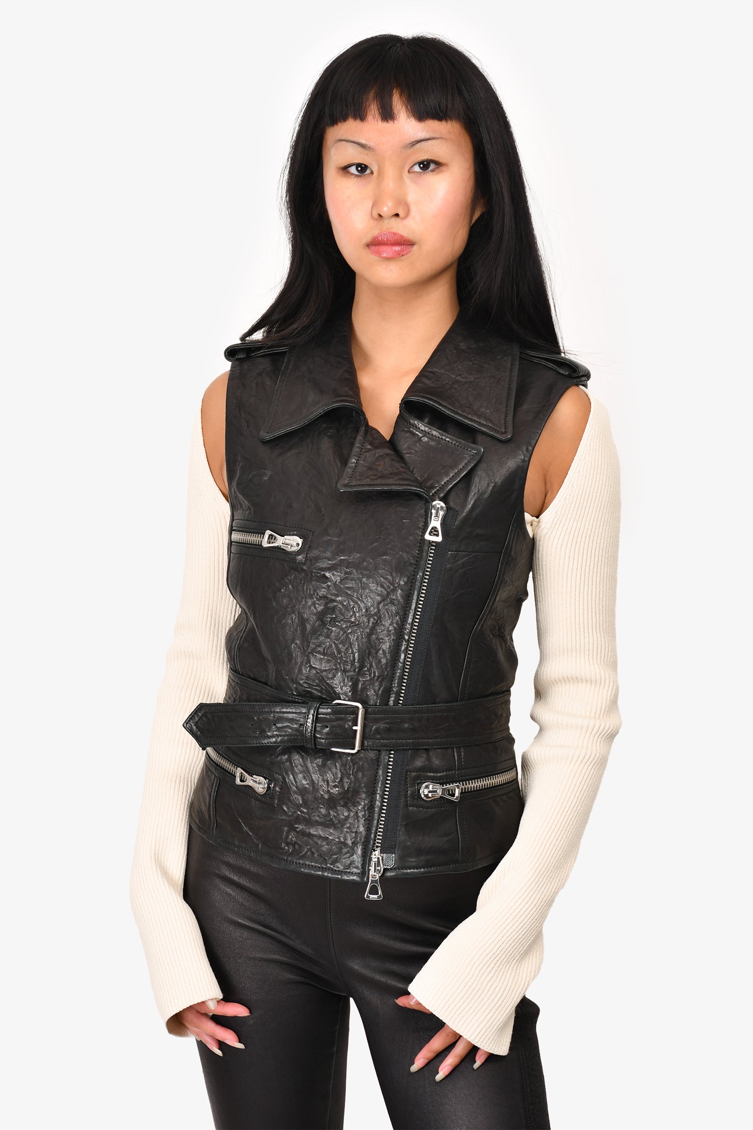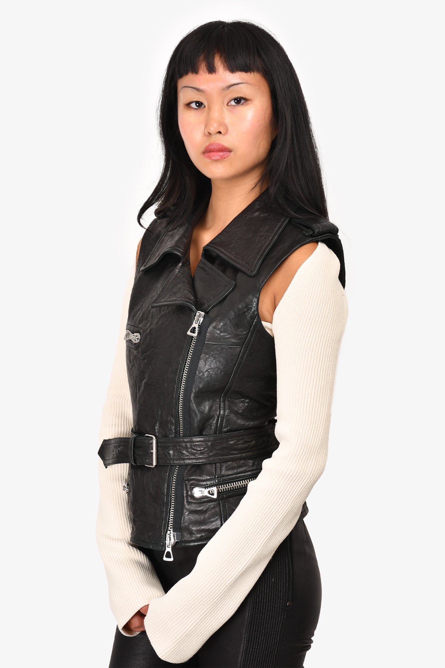 Refresh availabilityIsabel Marant Black Leather Biker Vest. Tonal stitching. Silver-tone hardware.