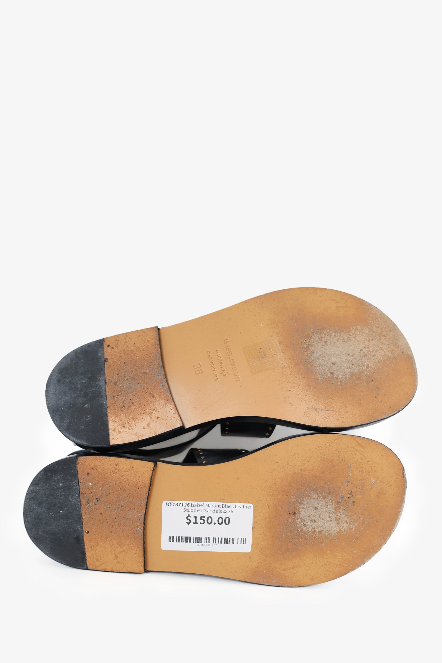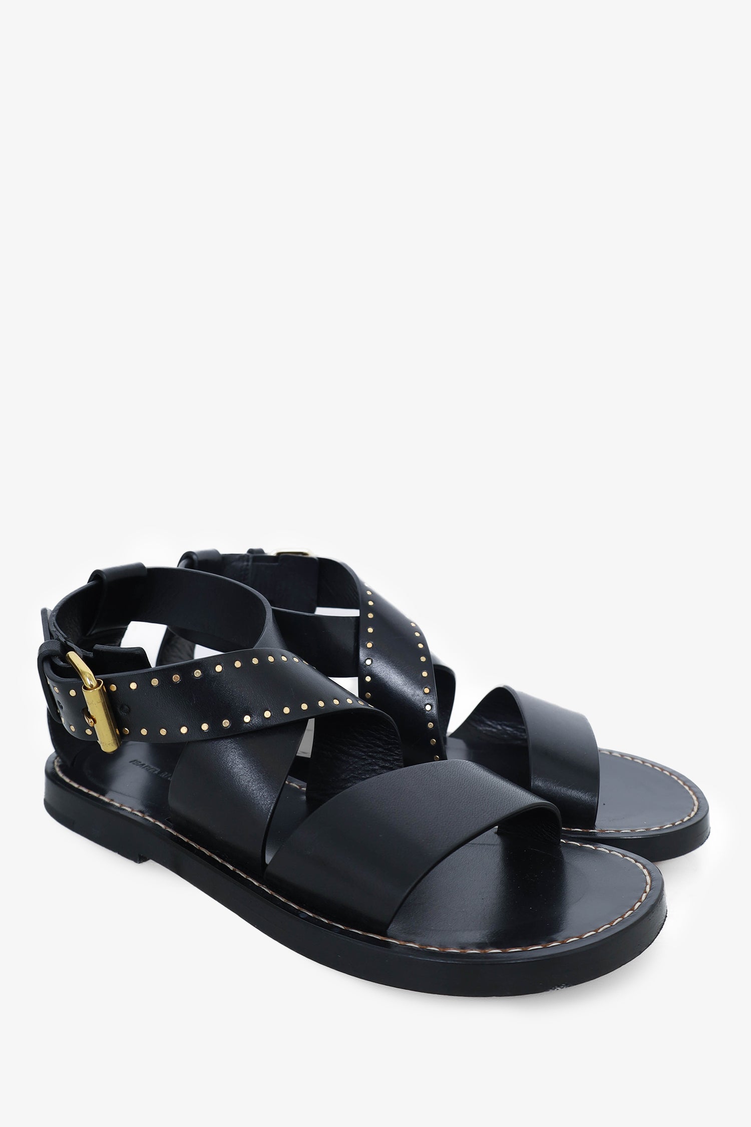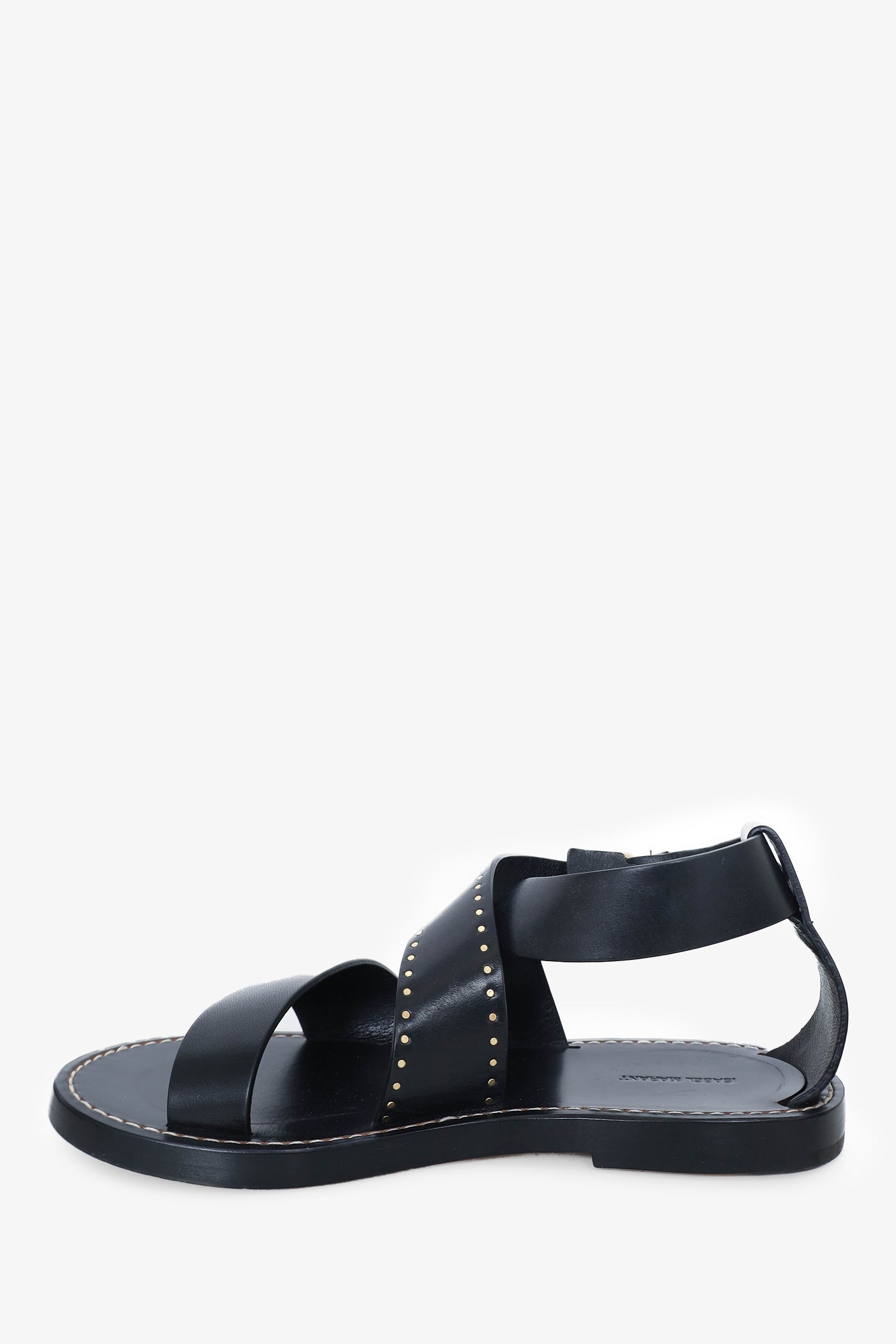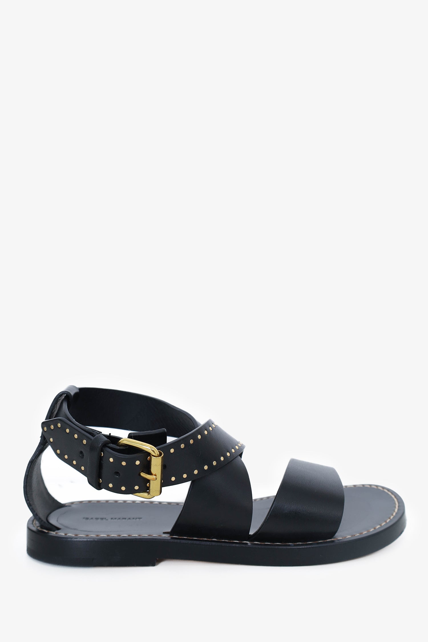 Refresh availabilityIsabel Marant Black Leather Studded Sandals. Ankle buckle closure. Open toe. Contrast stitching.