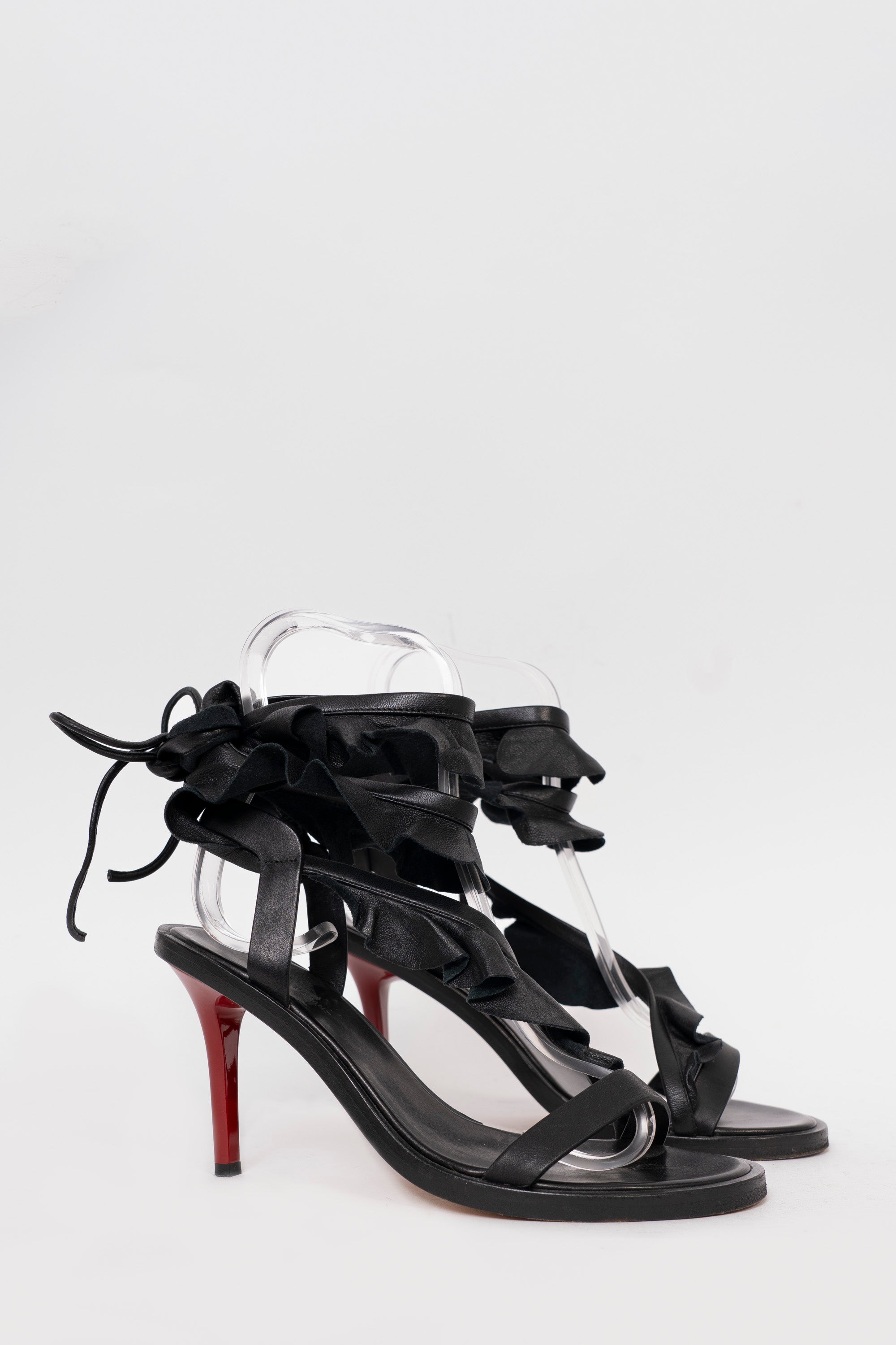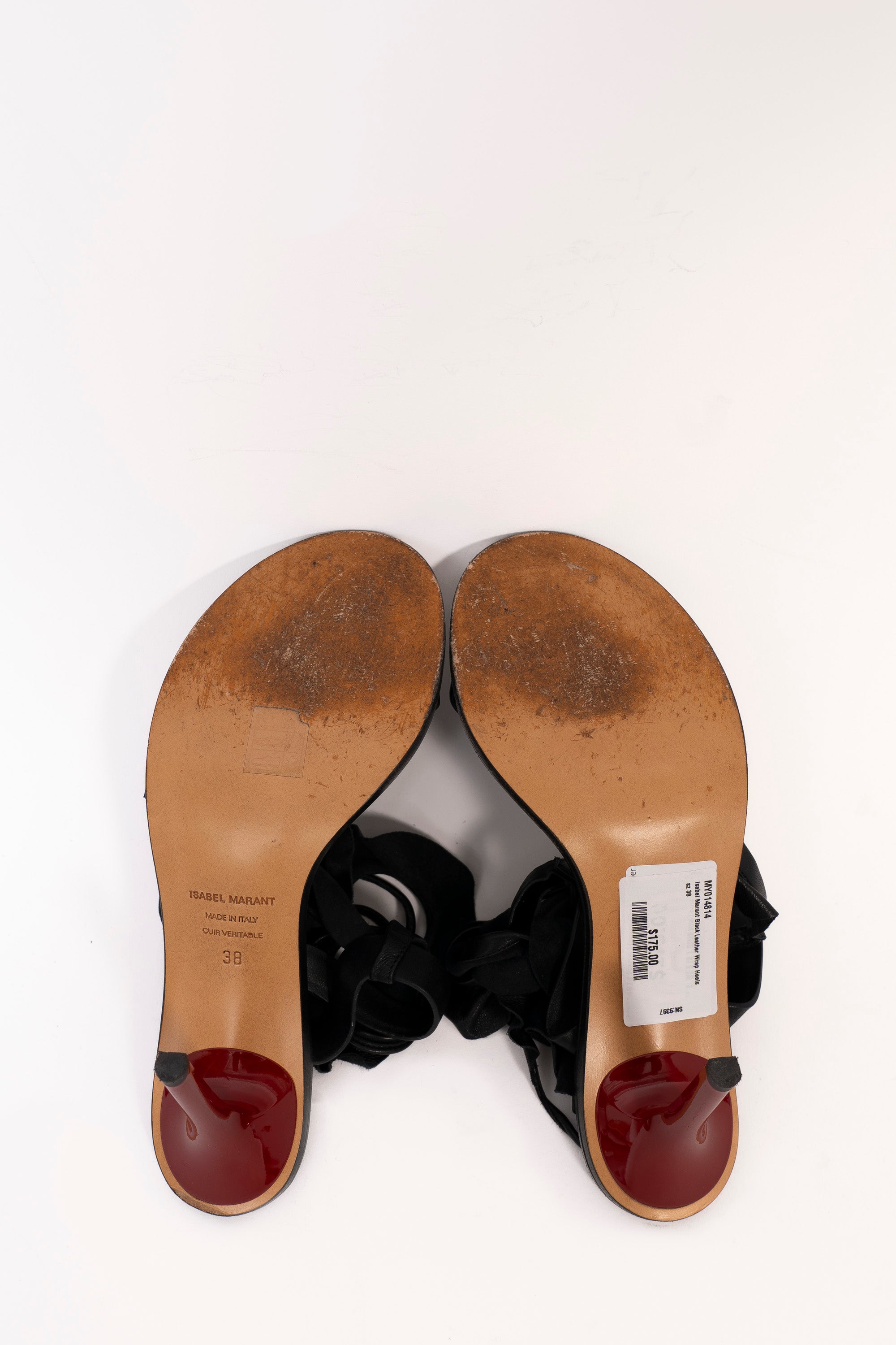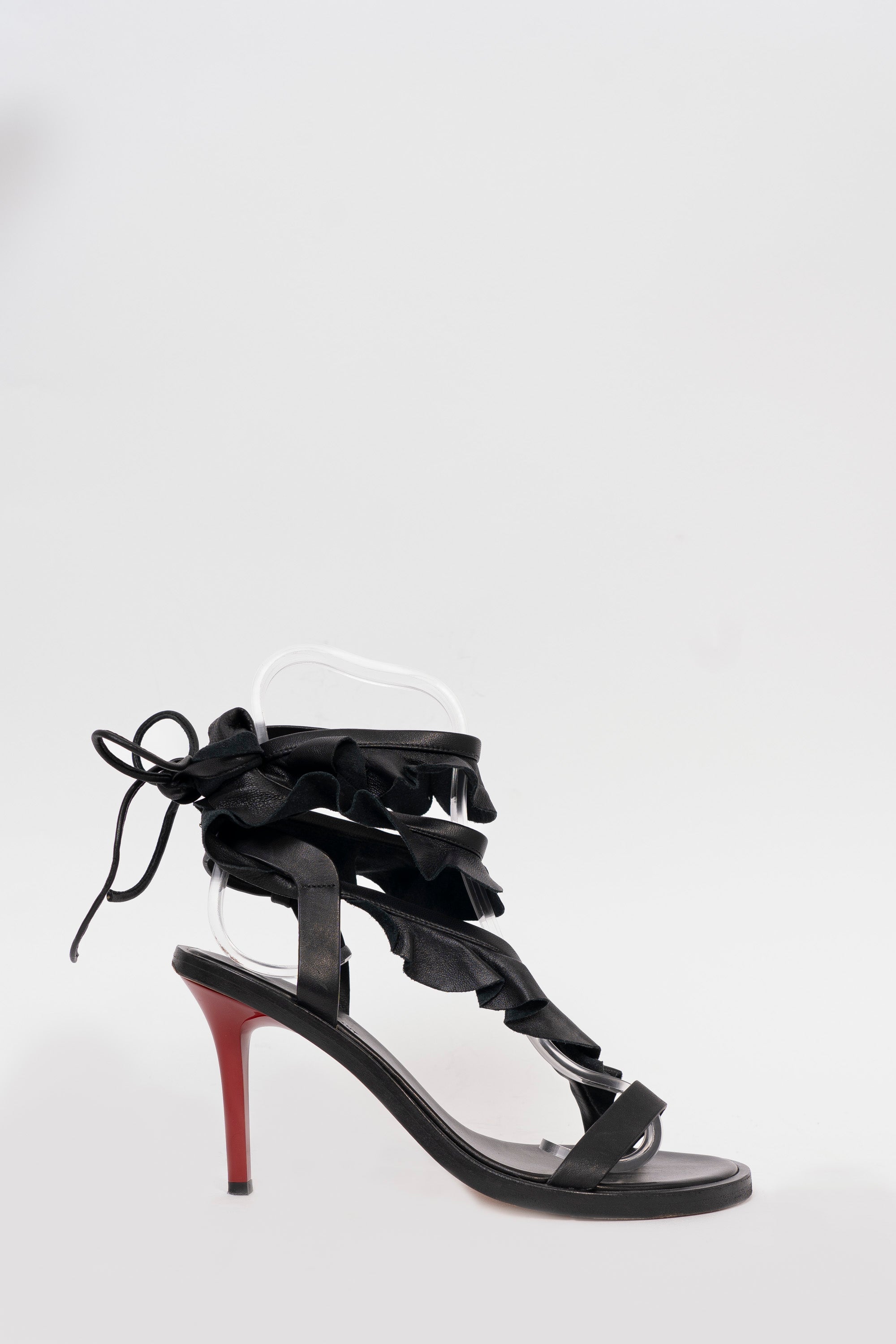 Refresh availabilityIsabel Marant Black Leather Wrap Heels. Open toe. Contrasting dark red heel. Tonal stitching.