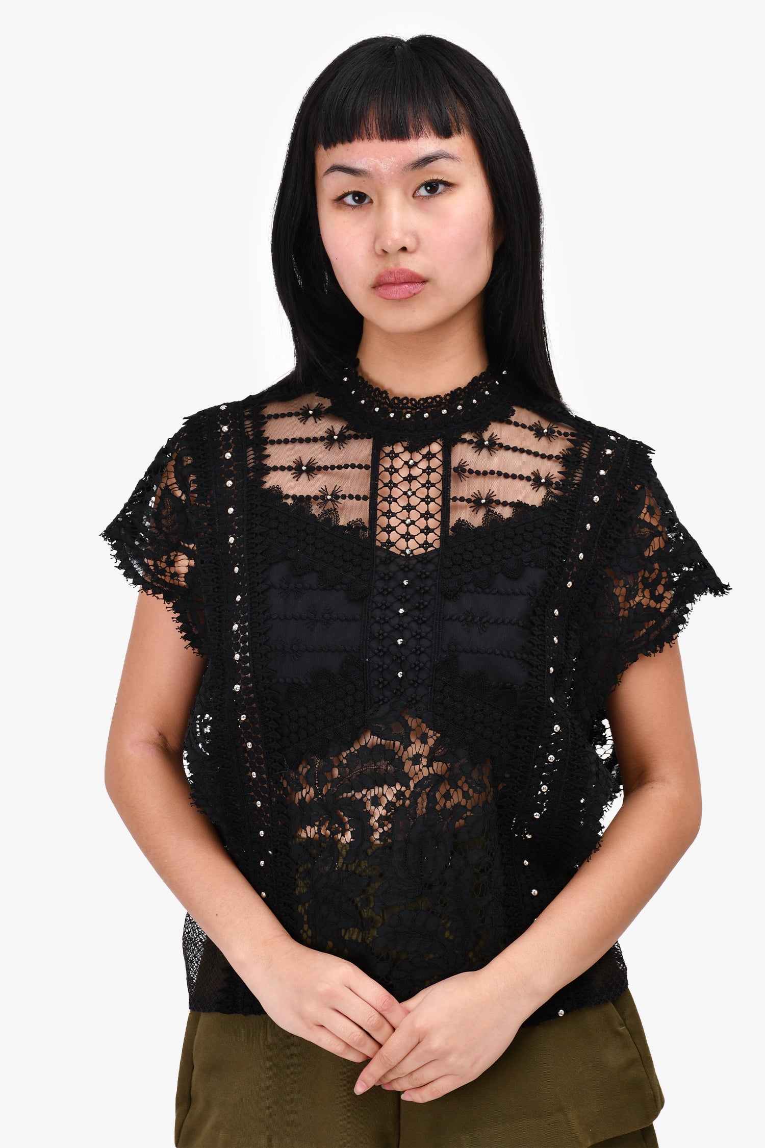 Refresh availabilityIsabel Marant Black Stud Detailed 'Tilly' Top. Round neck. Pull-on. Tonal stitching.