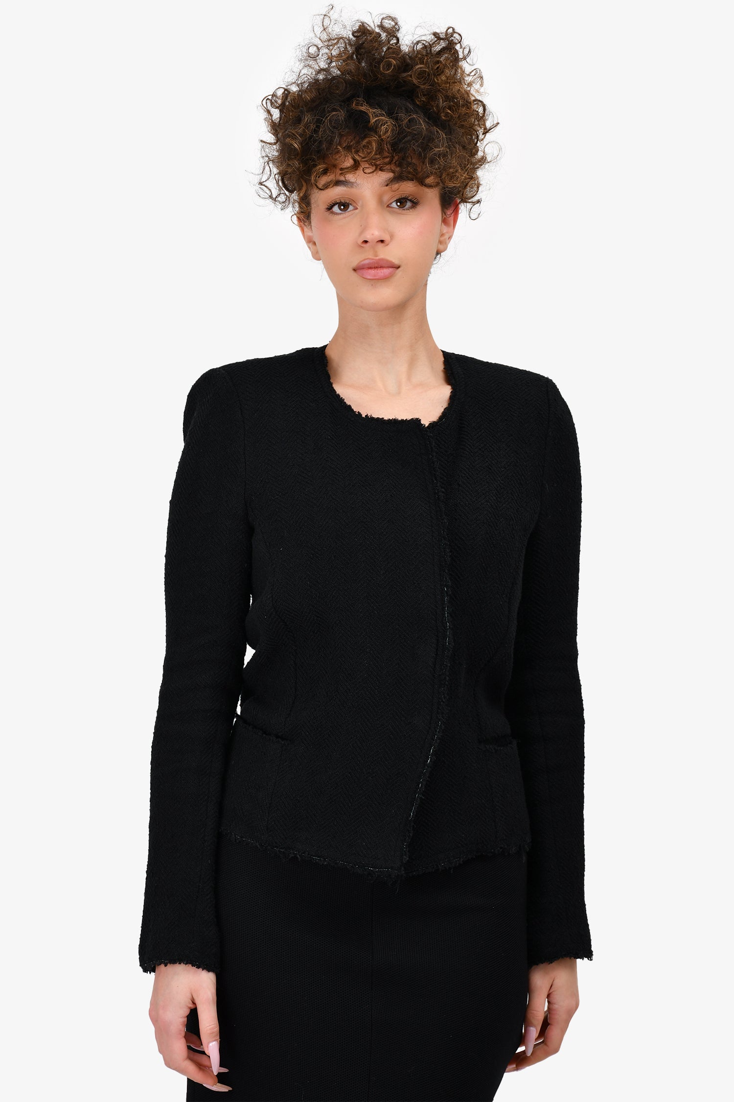 Refresh availabilityIsabel Marant Black Tweed Blazer. Front hook-up closure. Front pockets. Padded shoulders. Tonal stitching.